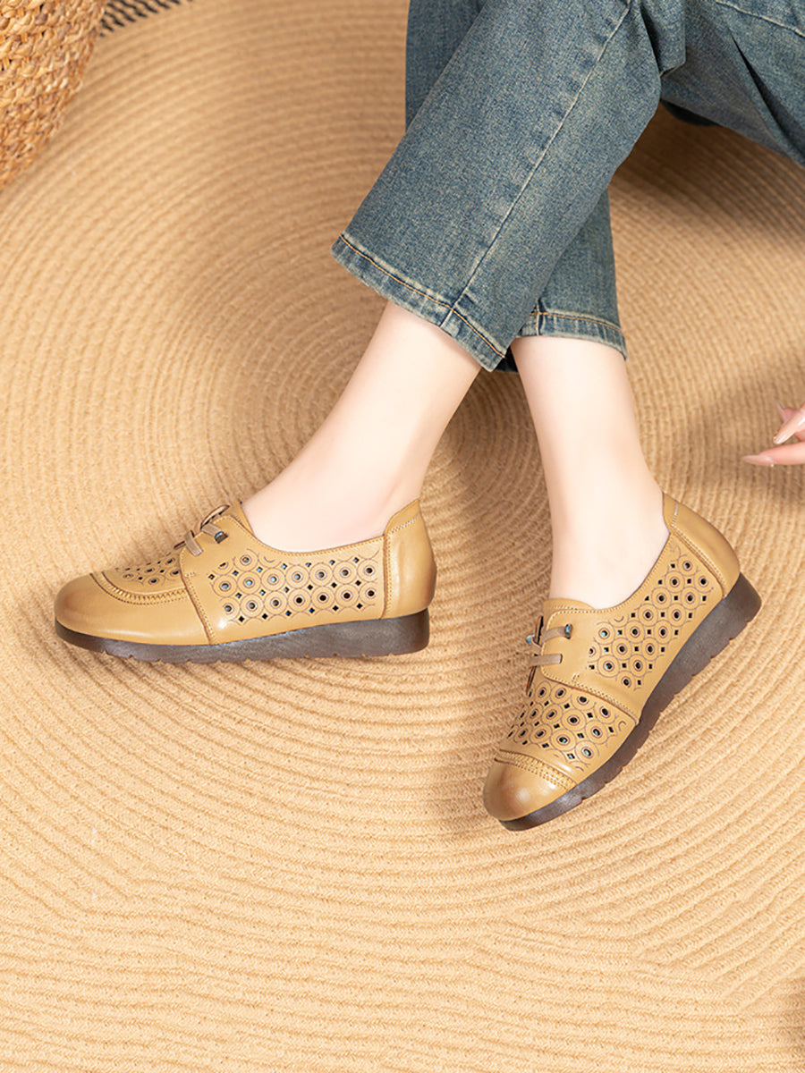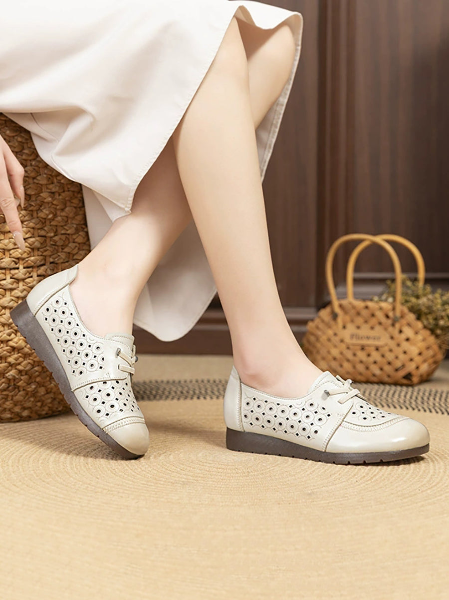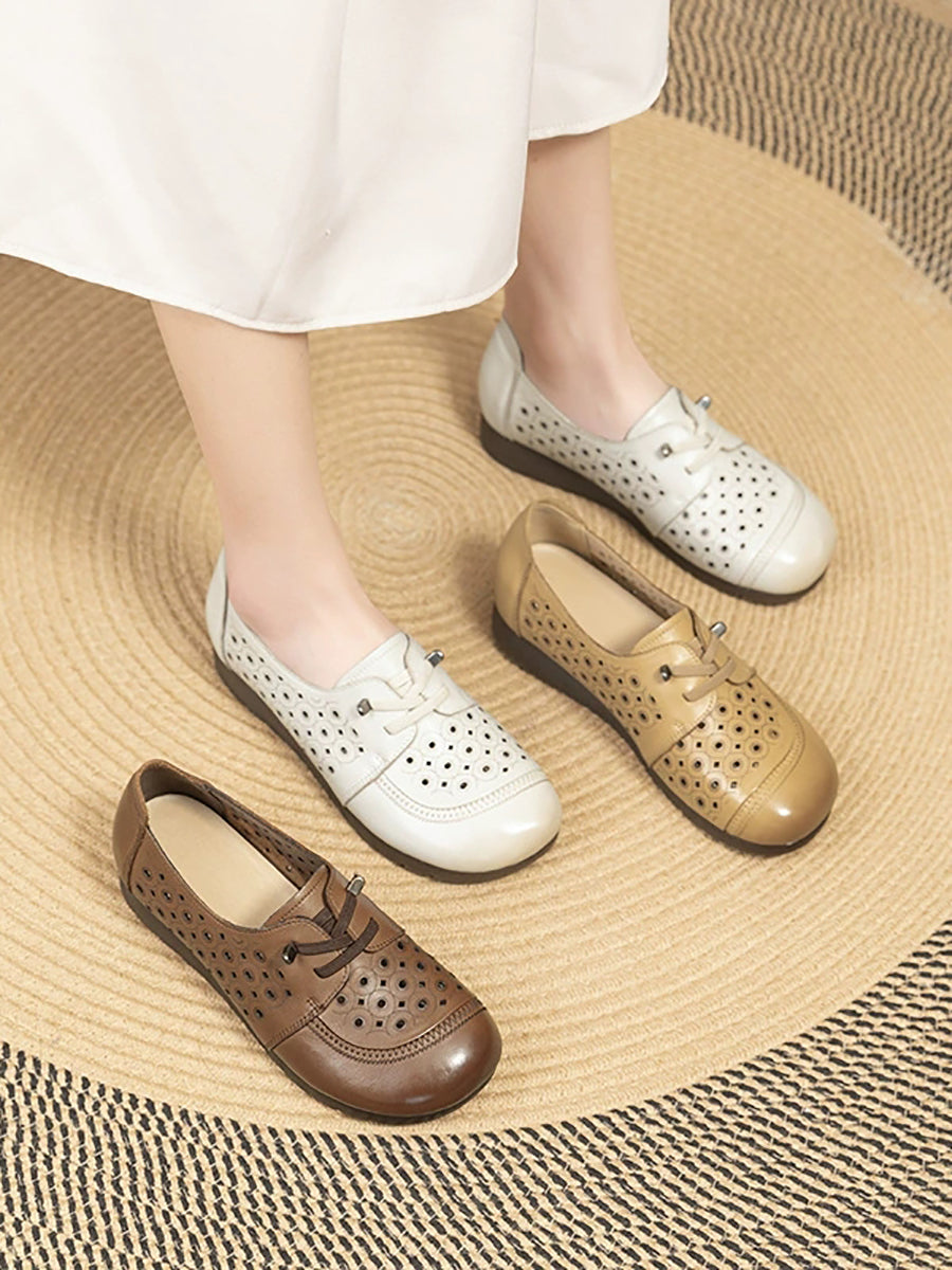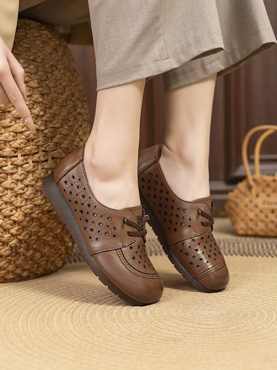 Chaussures d'été vintage pour femmes en cuir véritable ajouré