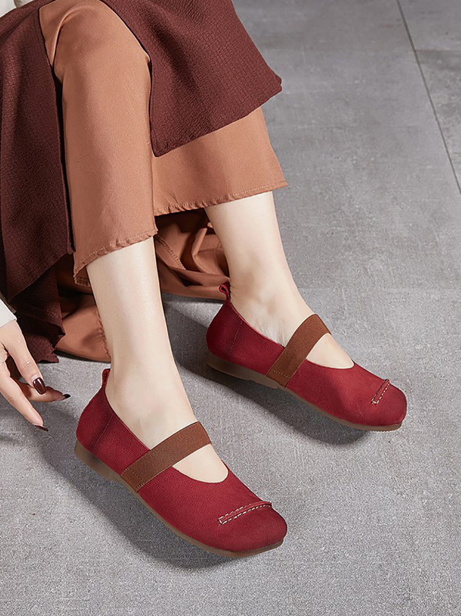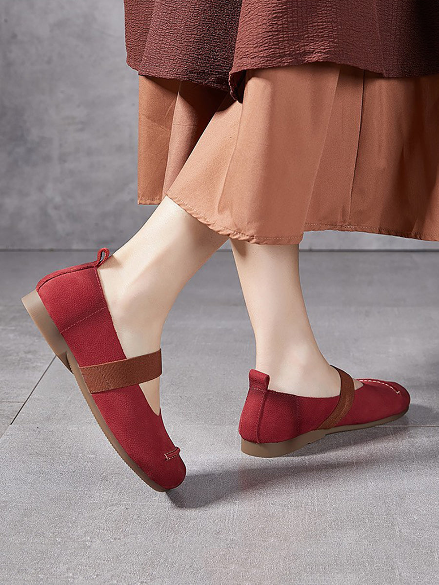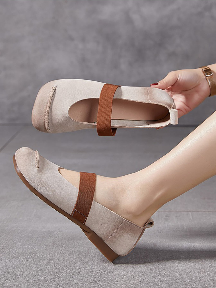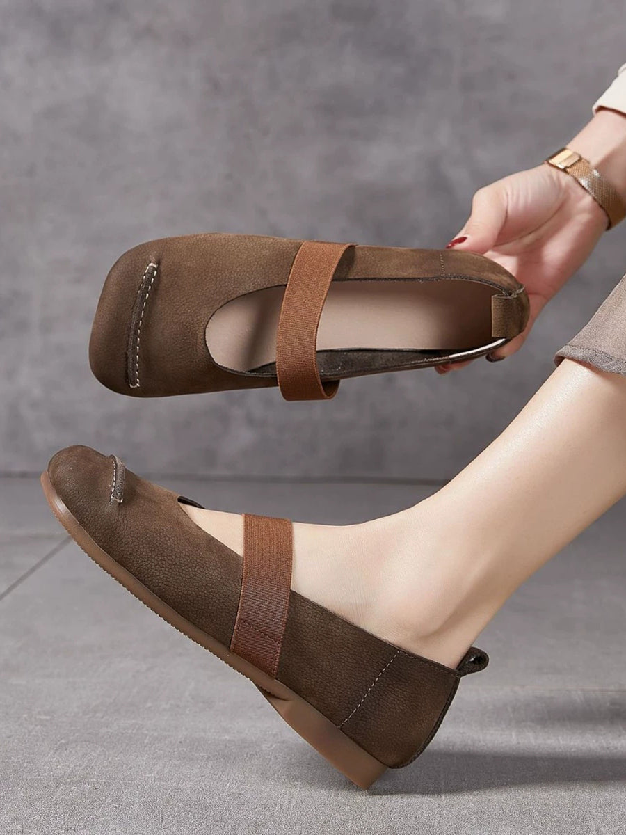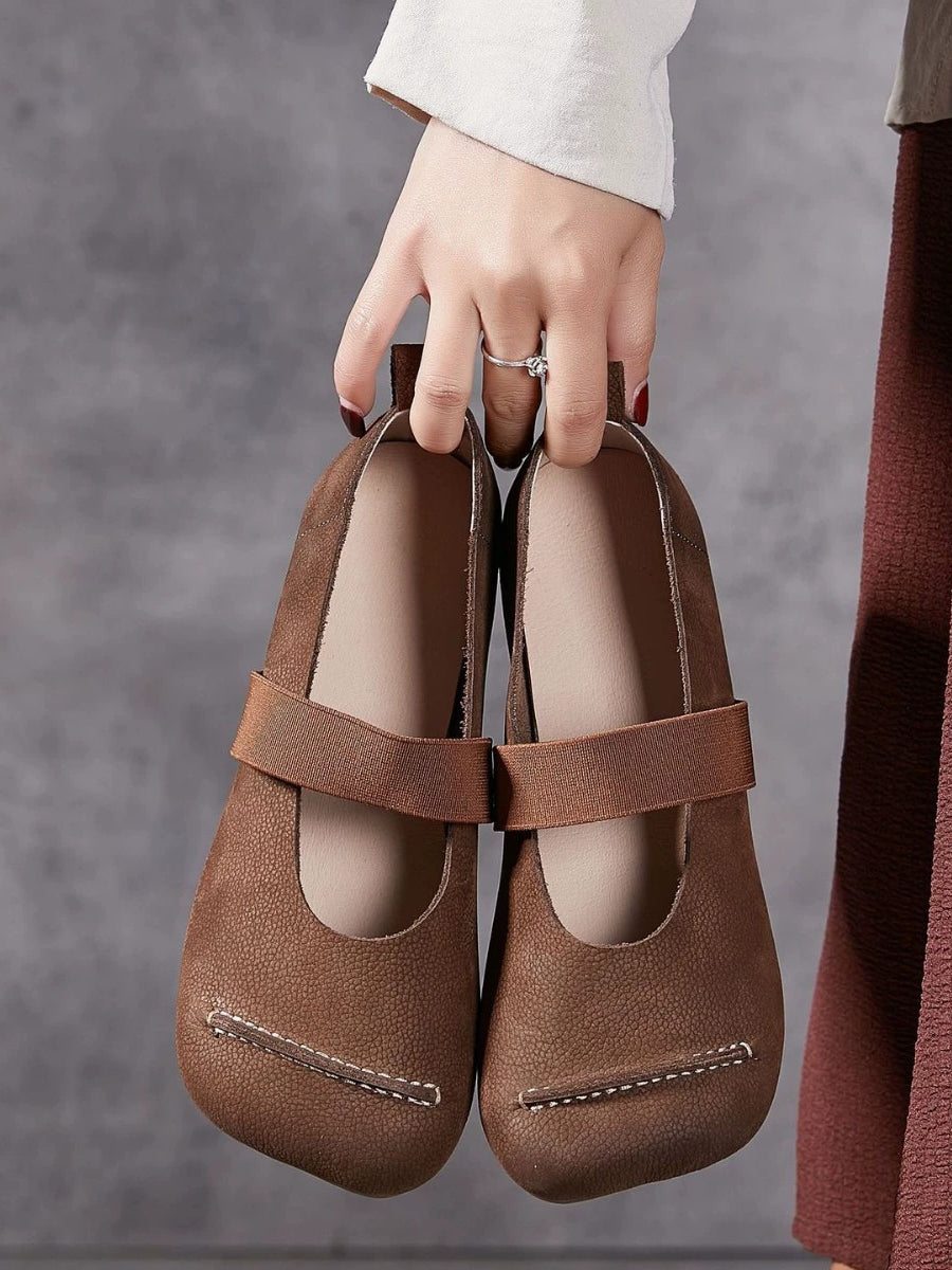 Chaussures d'été vintage en cuir à petits talons pour femmes
