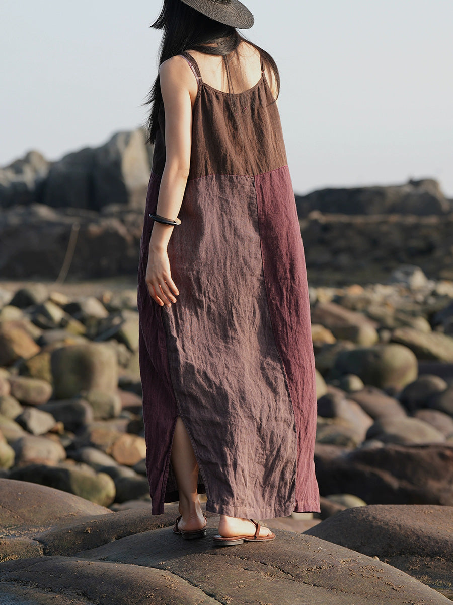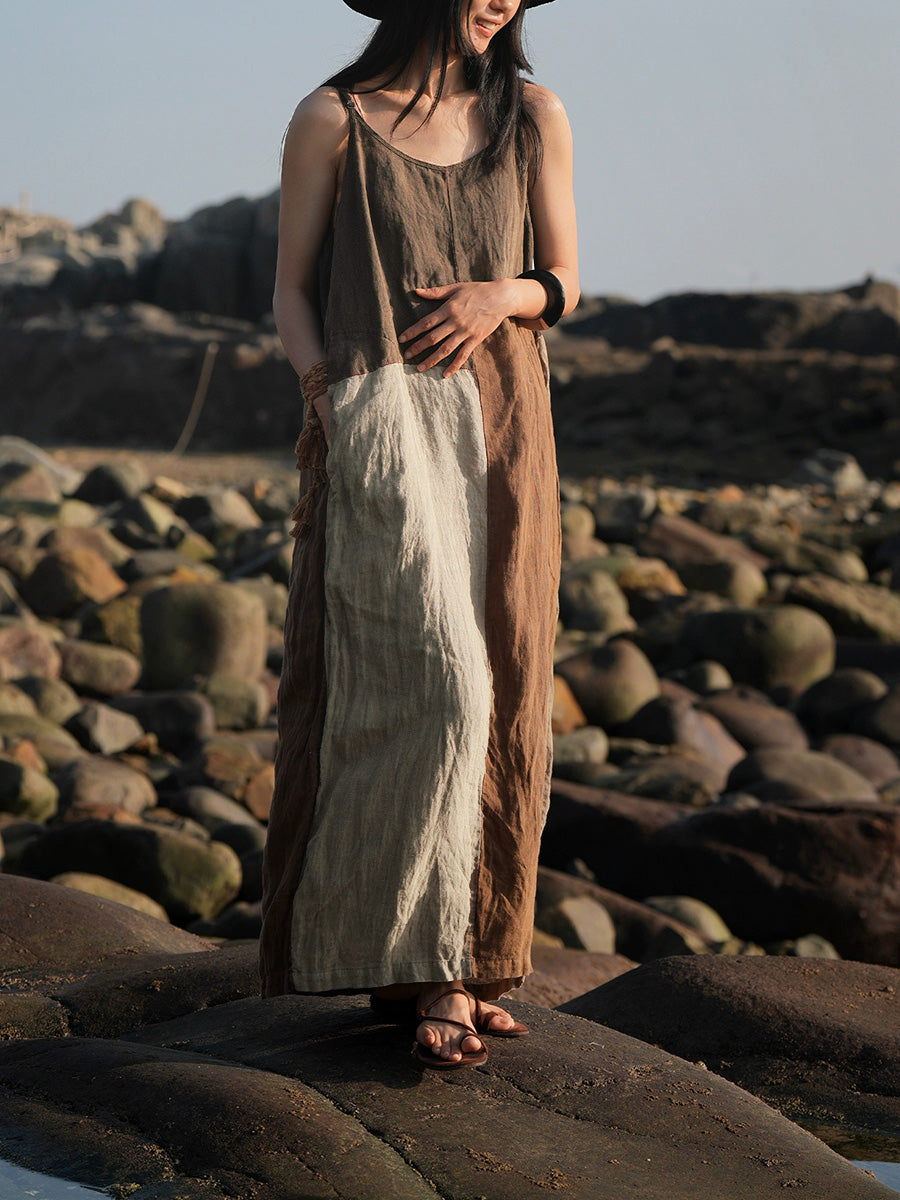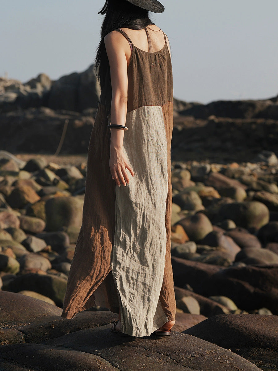 Robe gilet d'été vintage patchwork 100 % lin pour femme