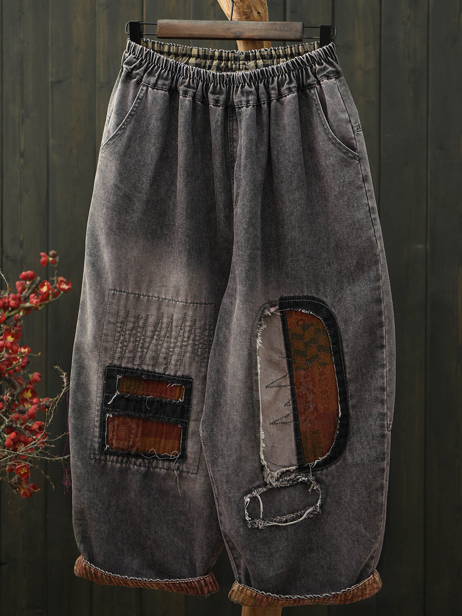 Jean harem vintage patchwork d'été pour femme