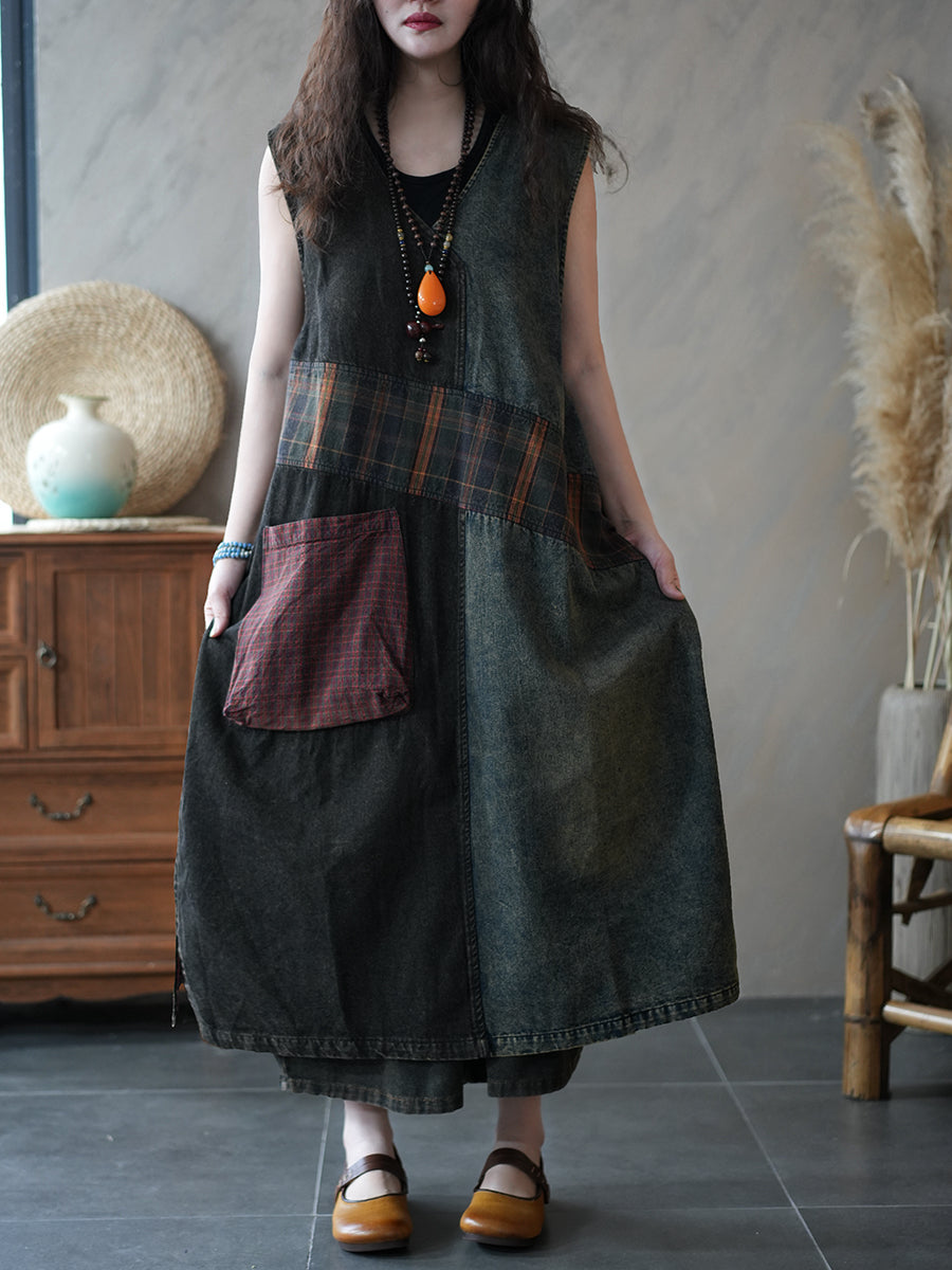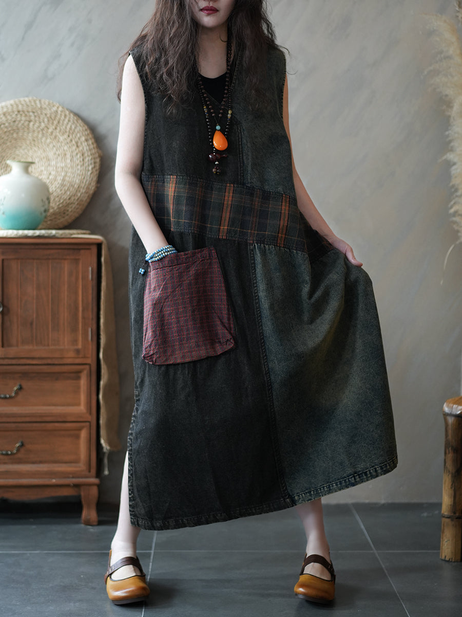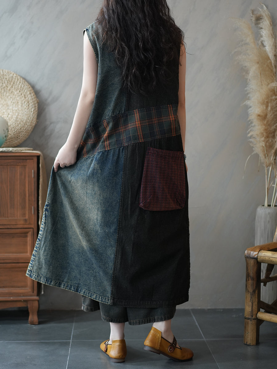 Robe sans manches en jean vintage à motifs pour femme, été