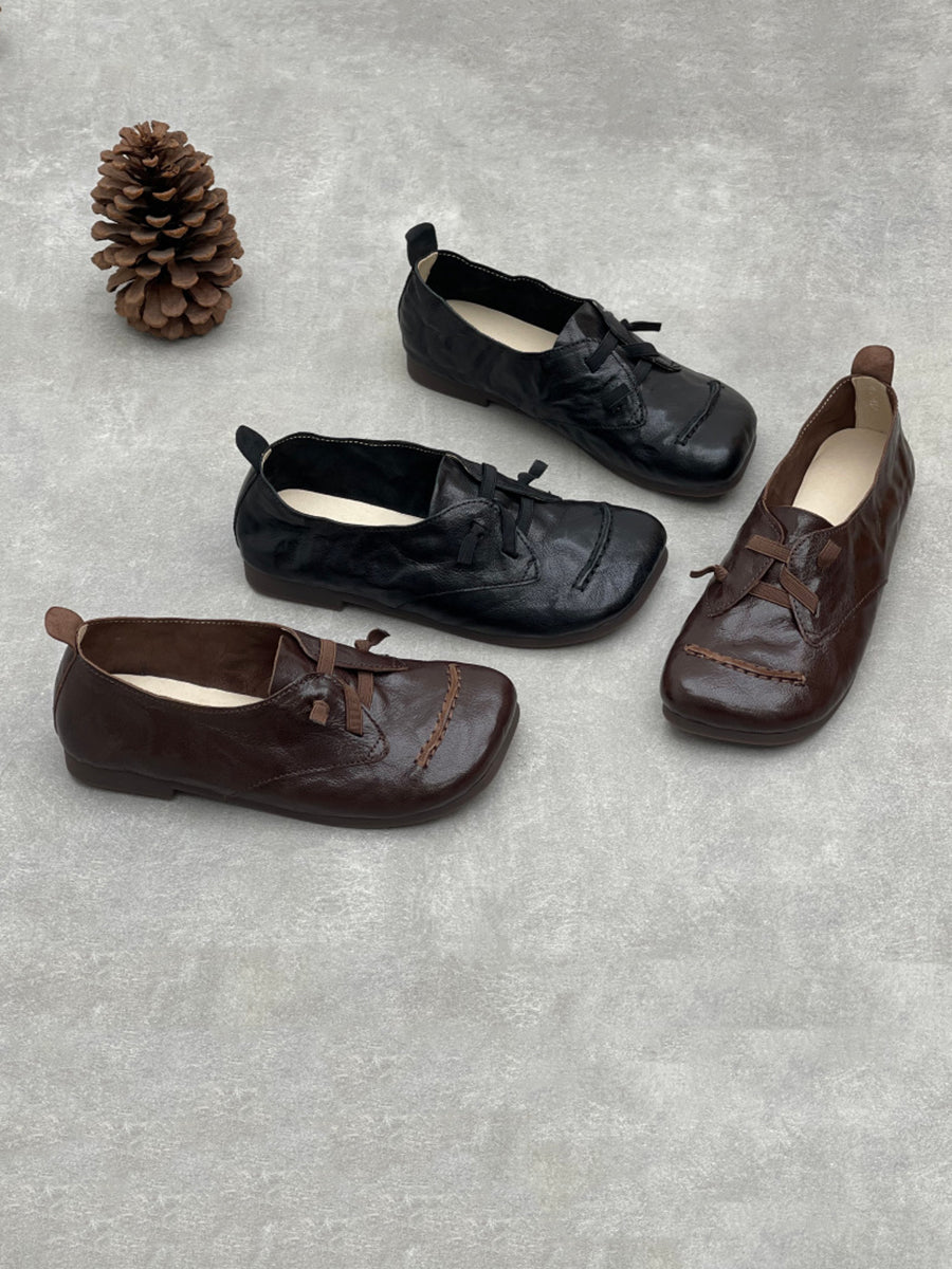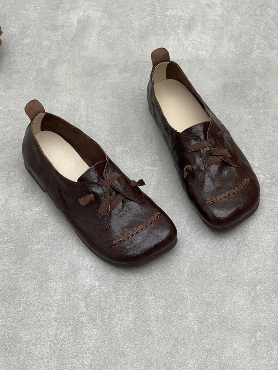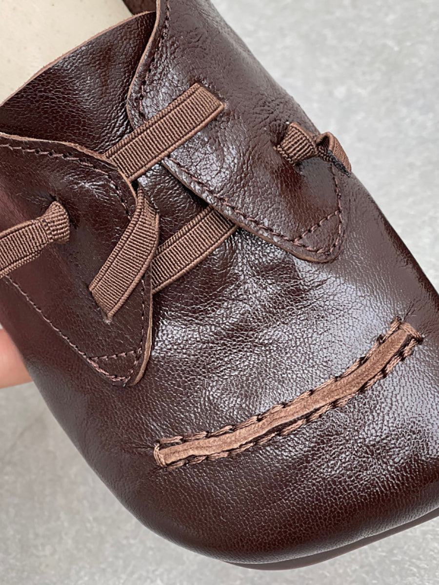 Chaussures plates d'été vintage pour femmes en cuir souple