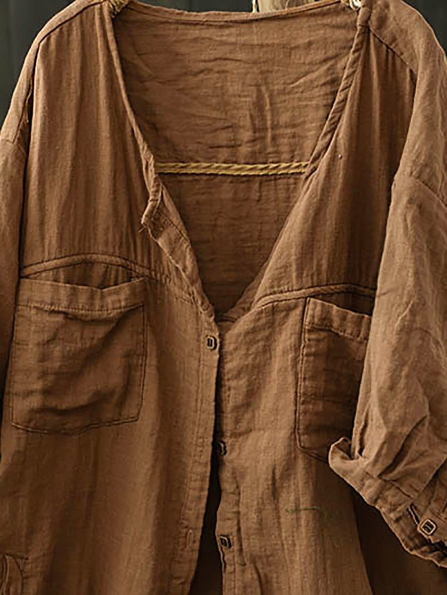 Chemise d'été en coton à col en V pour femme, grande taille, couleur unie