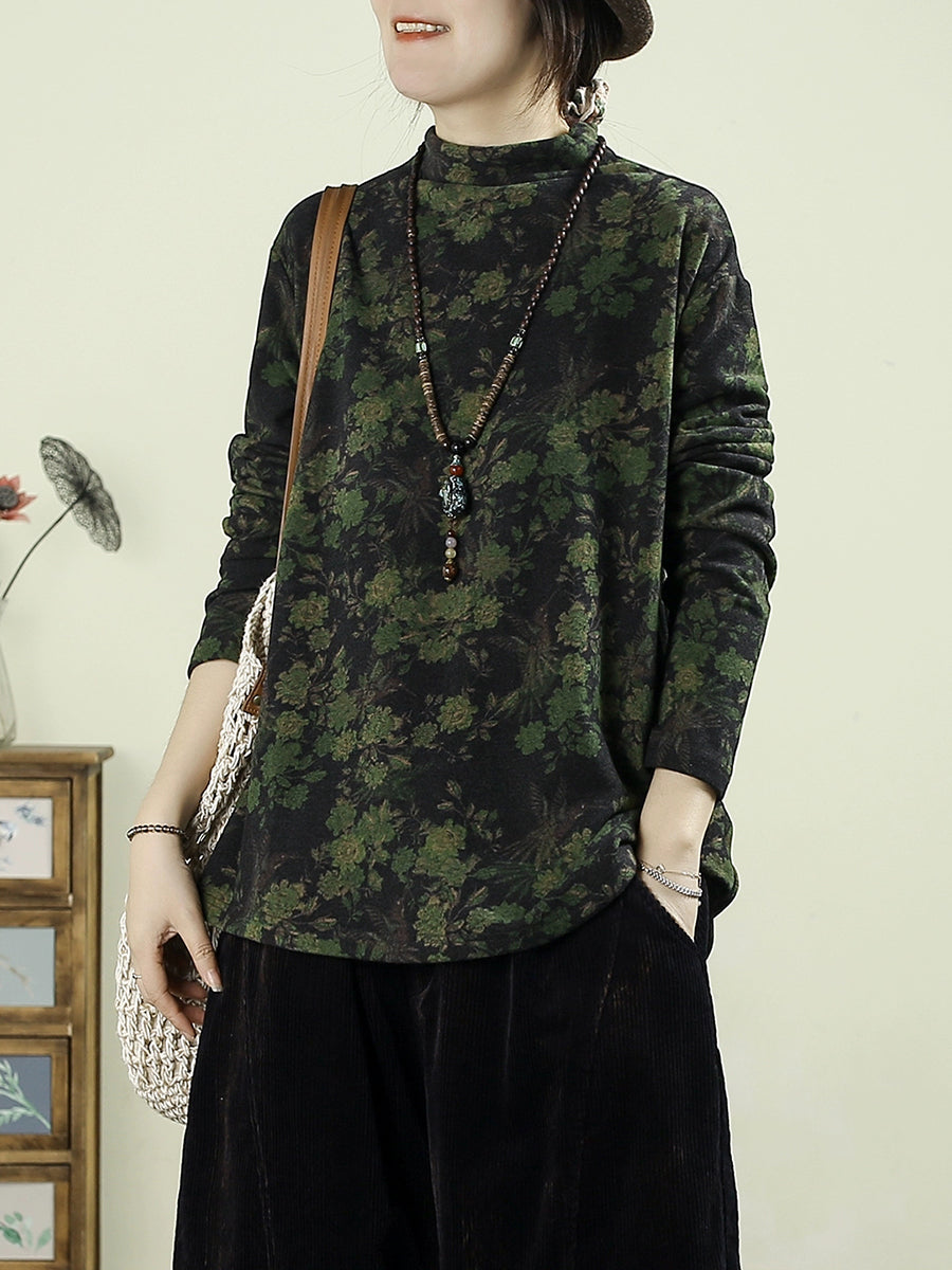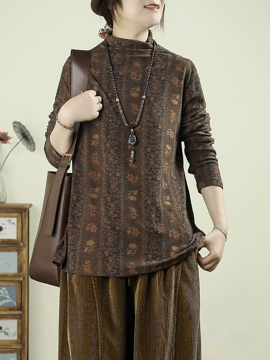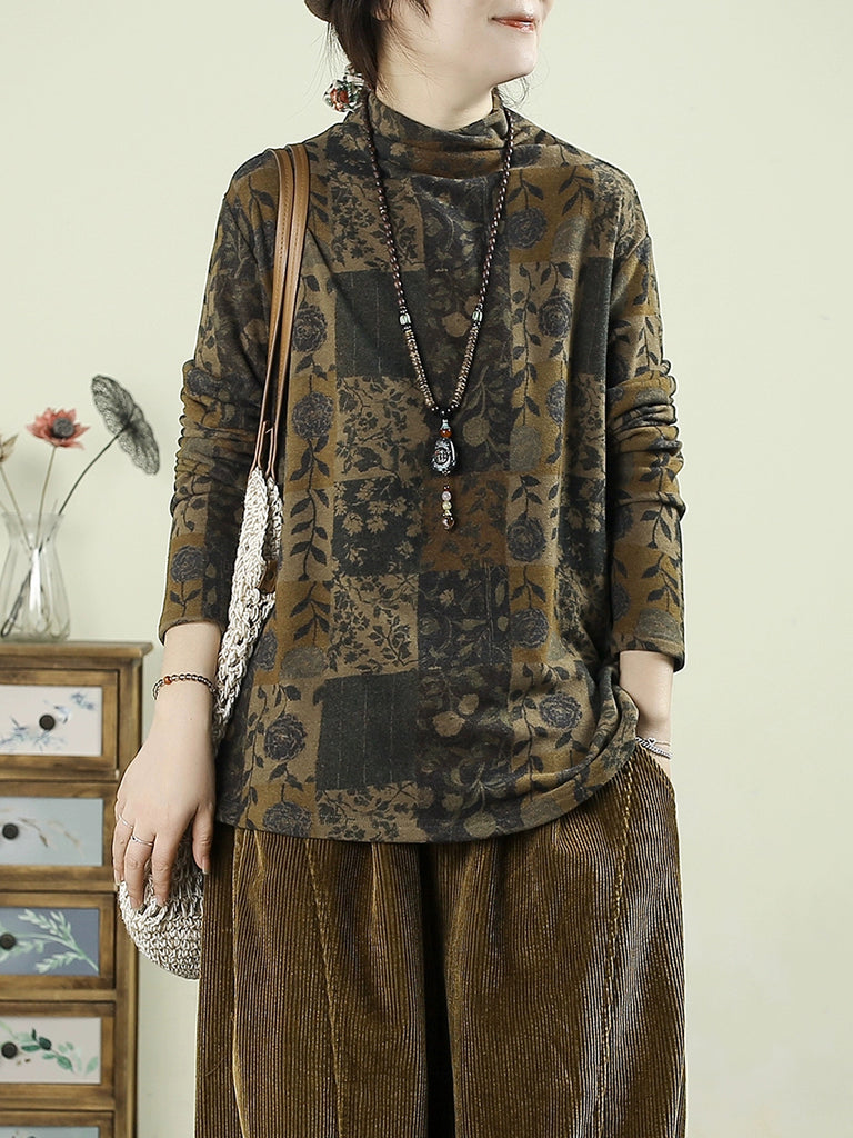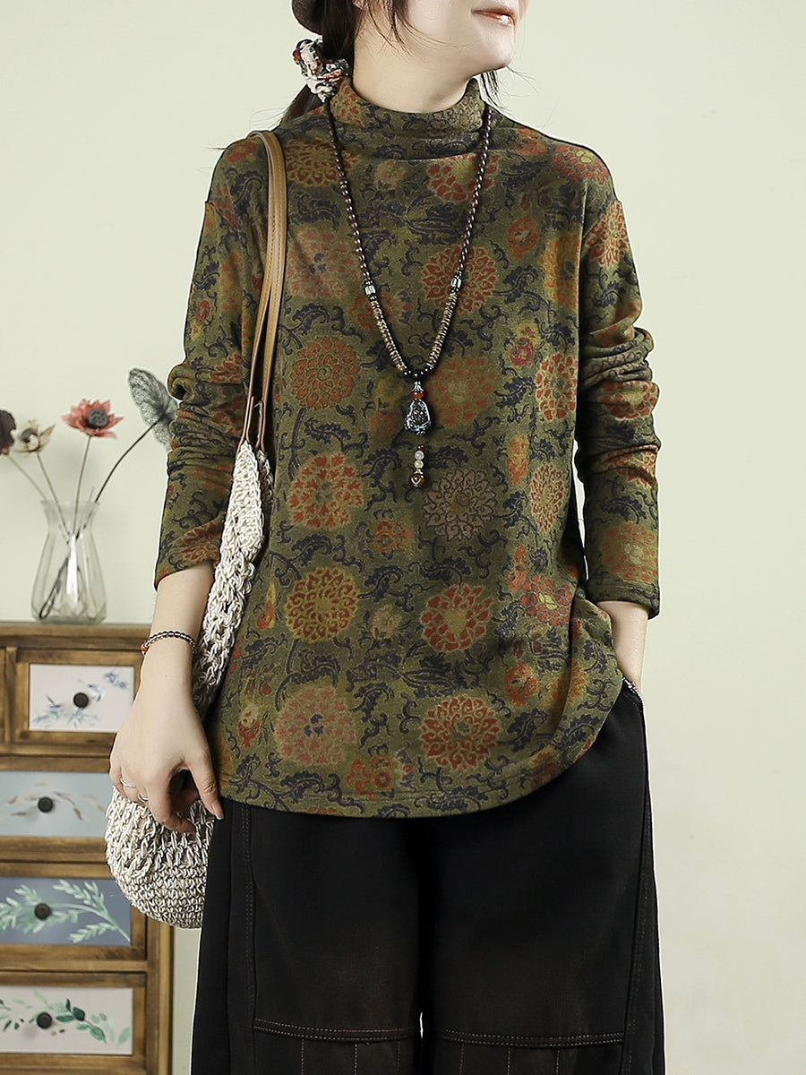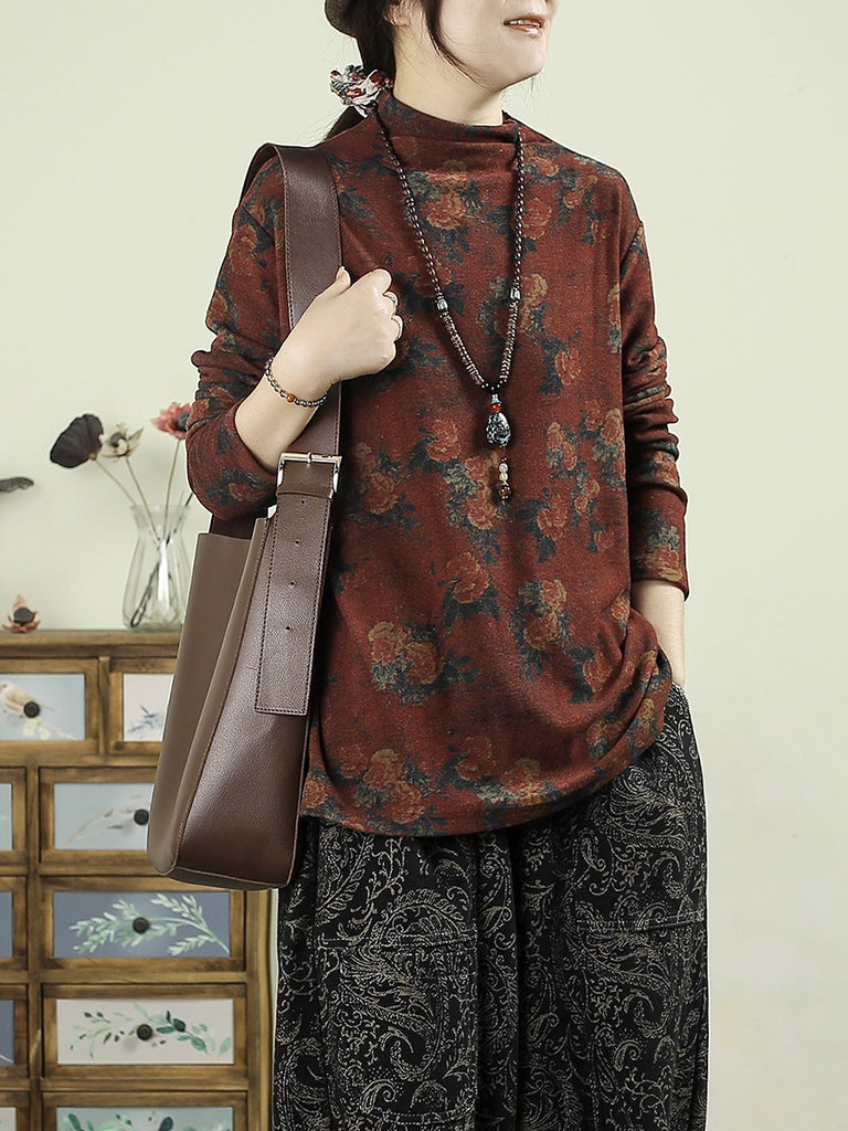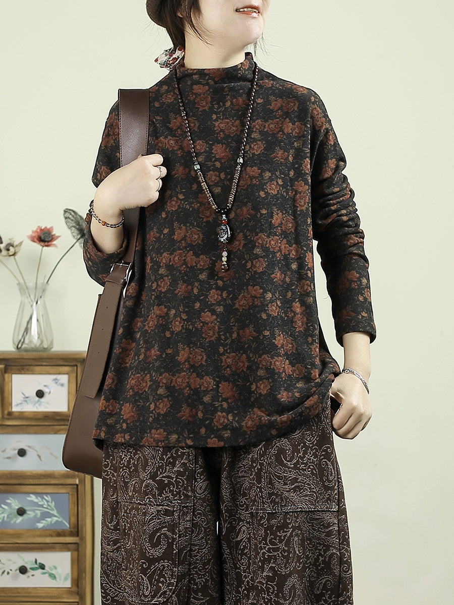 Chemisier demi-col roulé vintage à fleurs pour femme