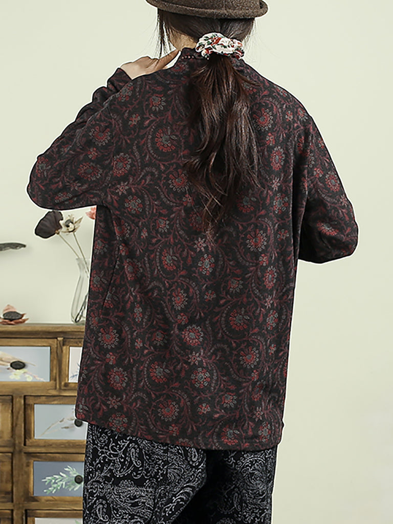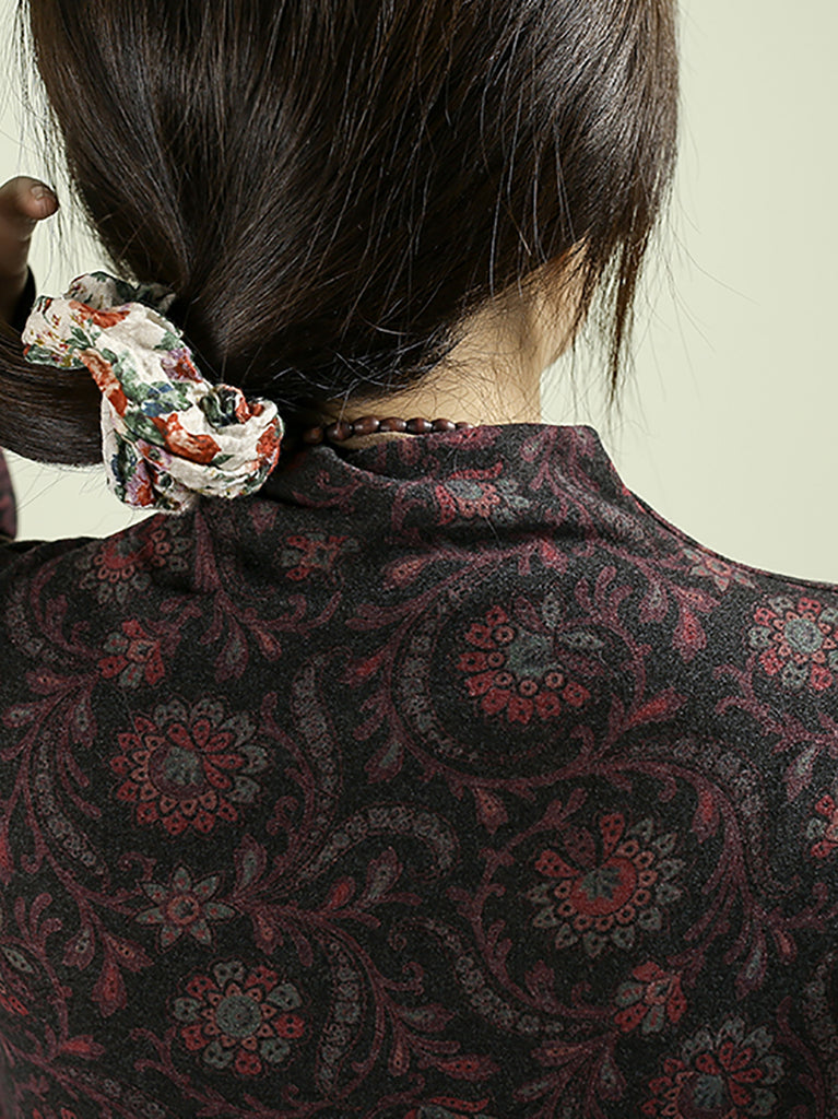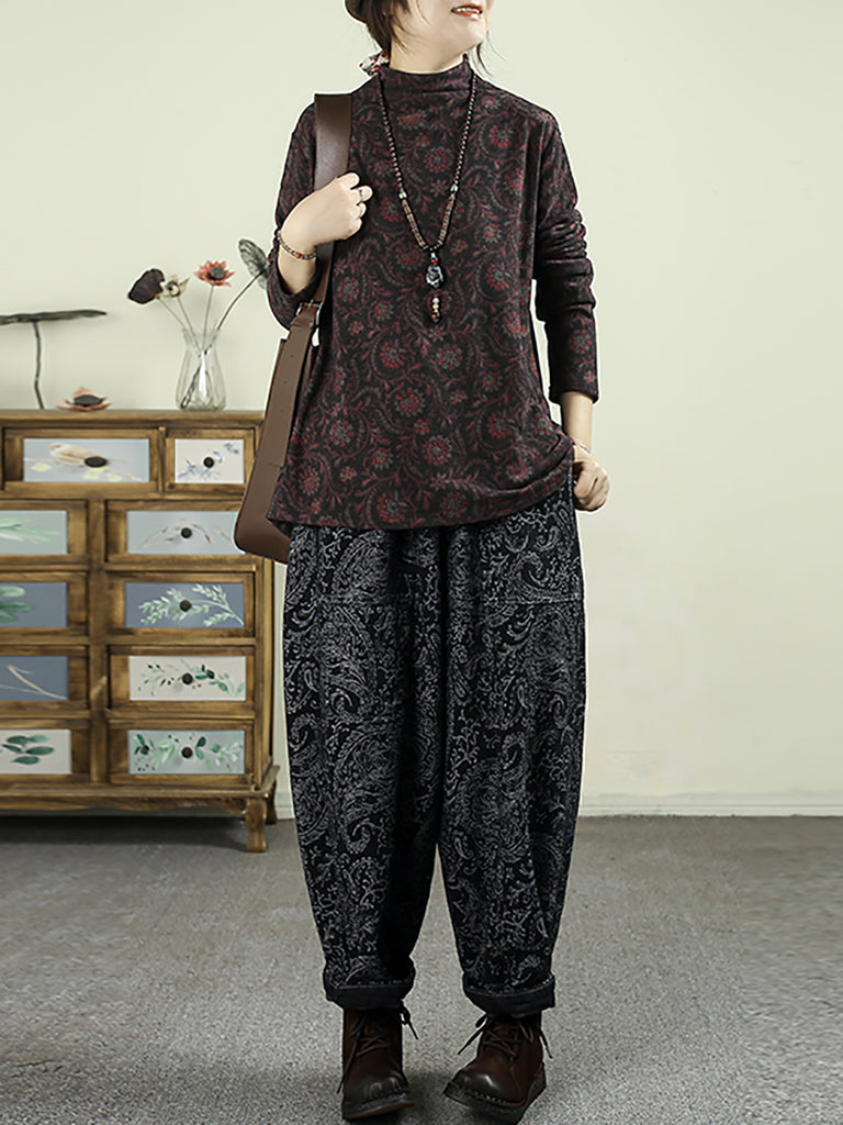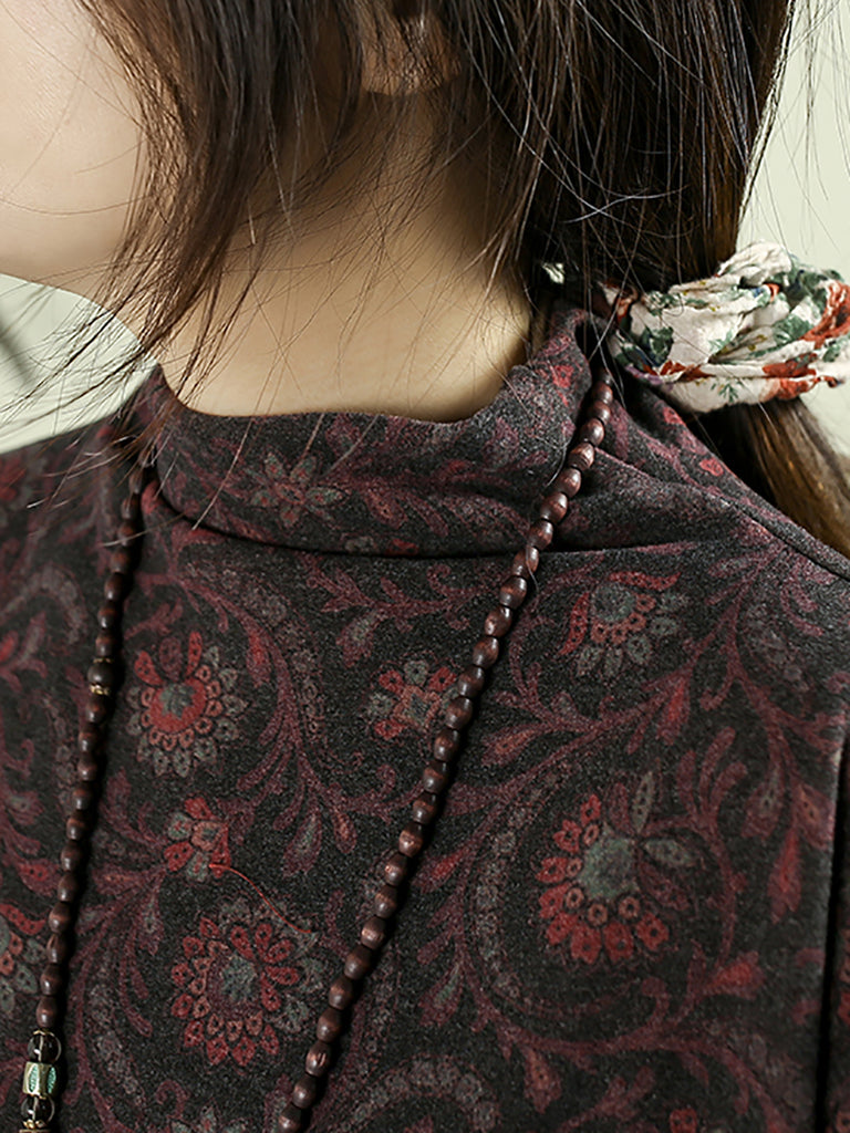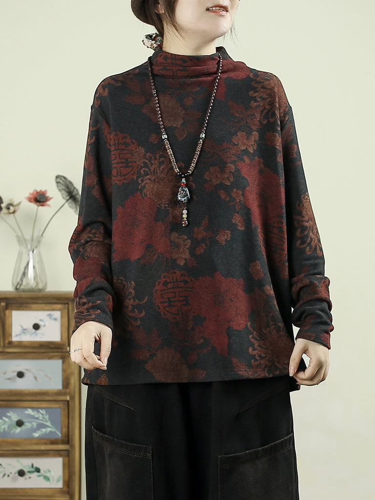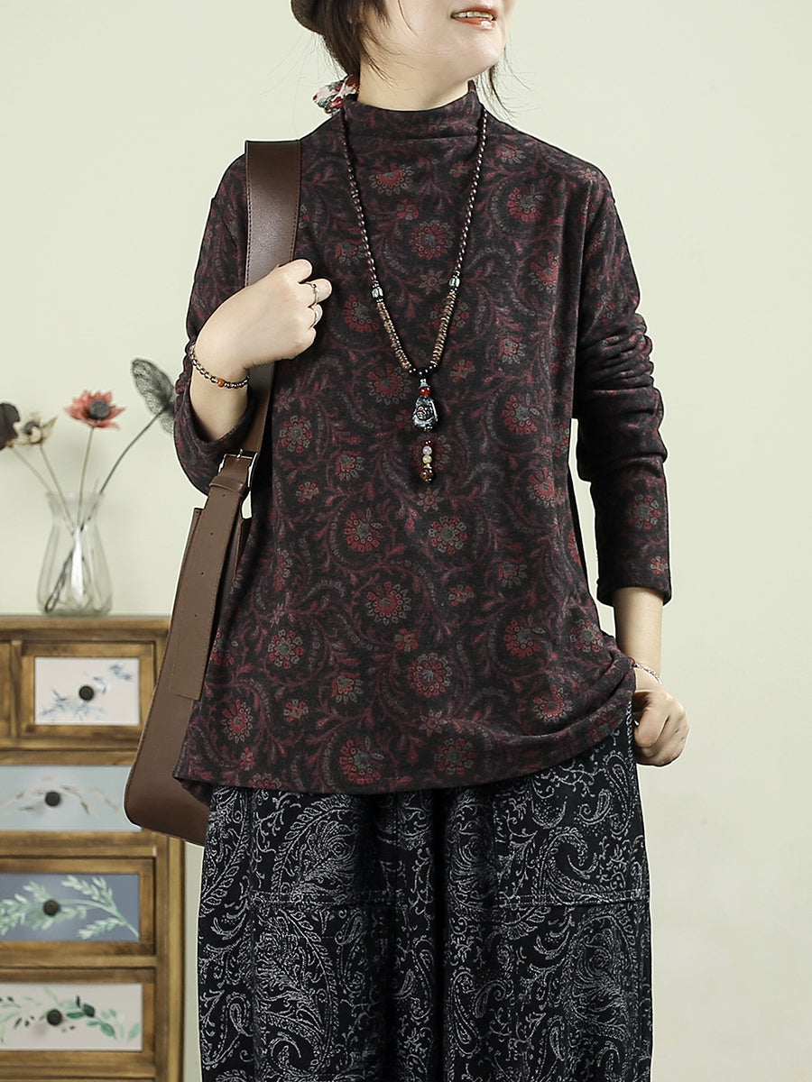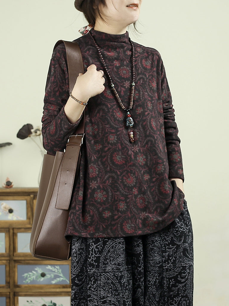 Chemisier demi-col roulé vintage à fleurs pour femme