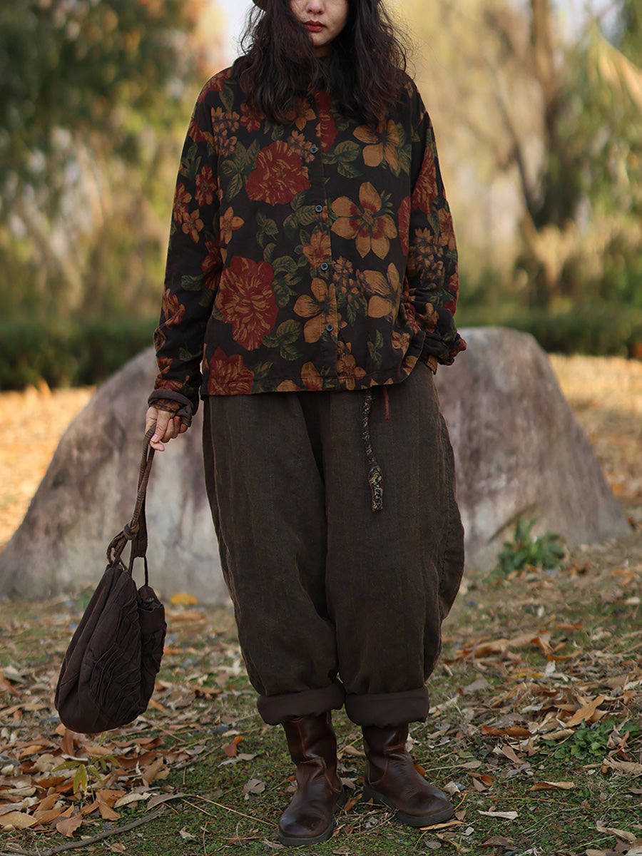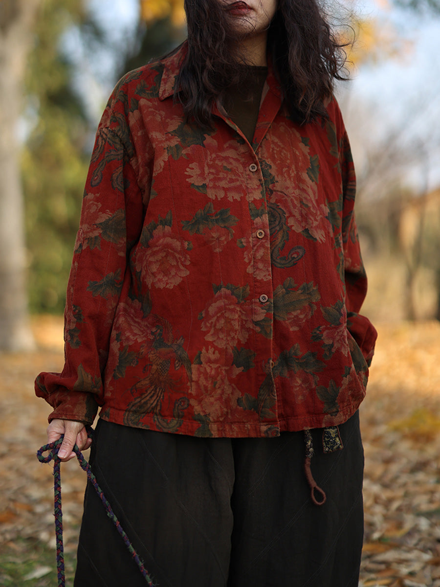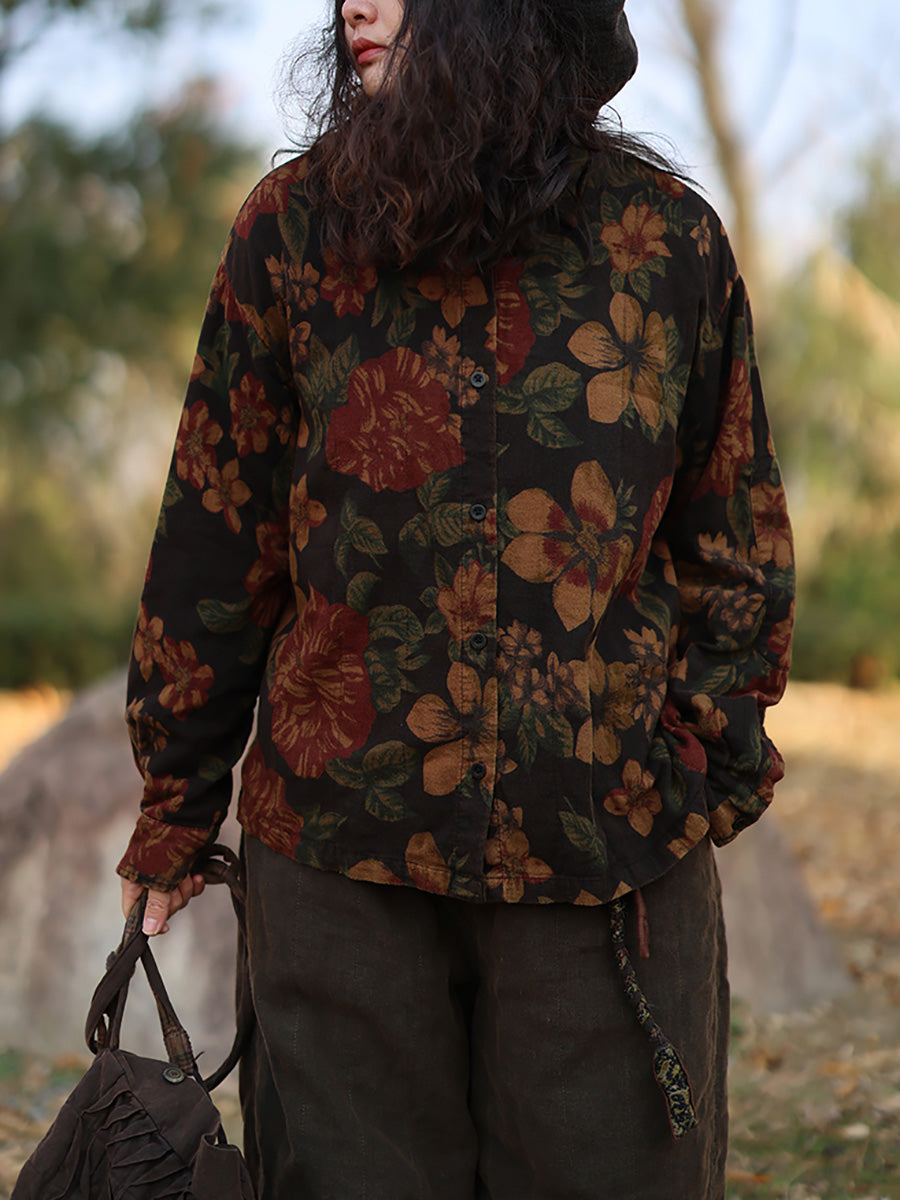 Chemise vintage automnale à fleurs pour femme, col rabattu, 100 % coton