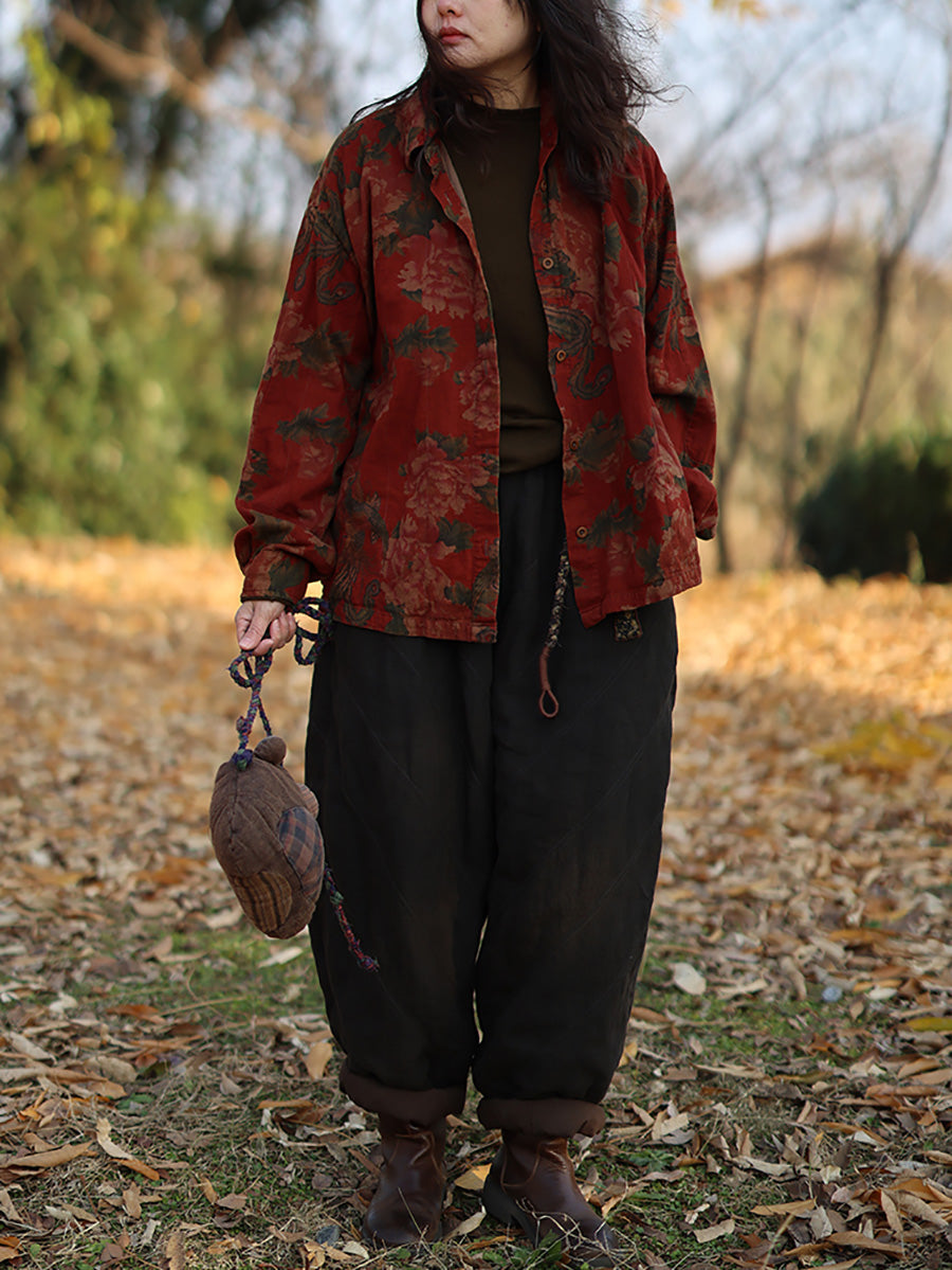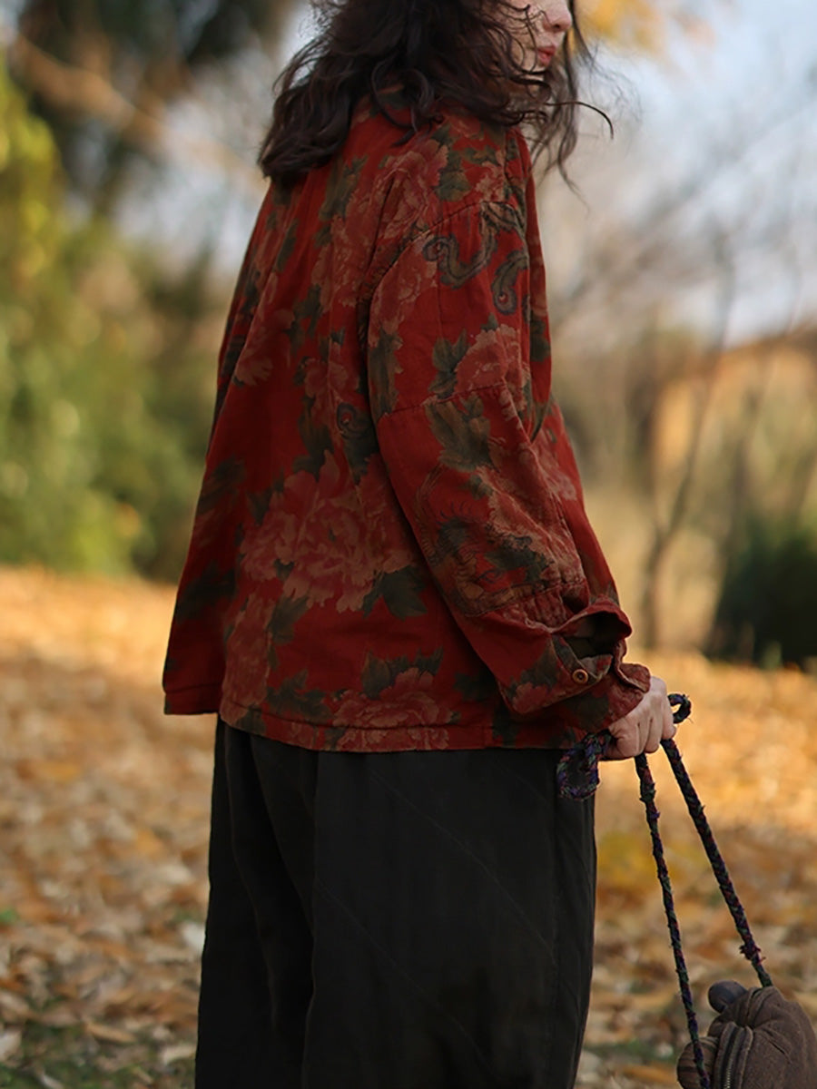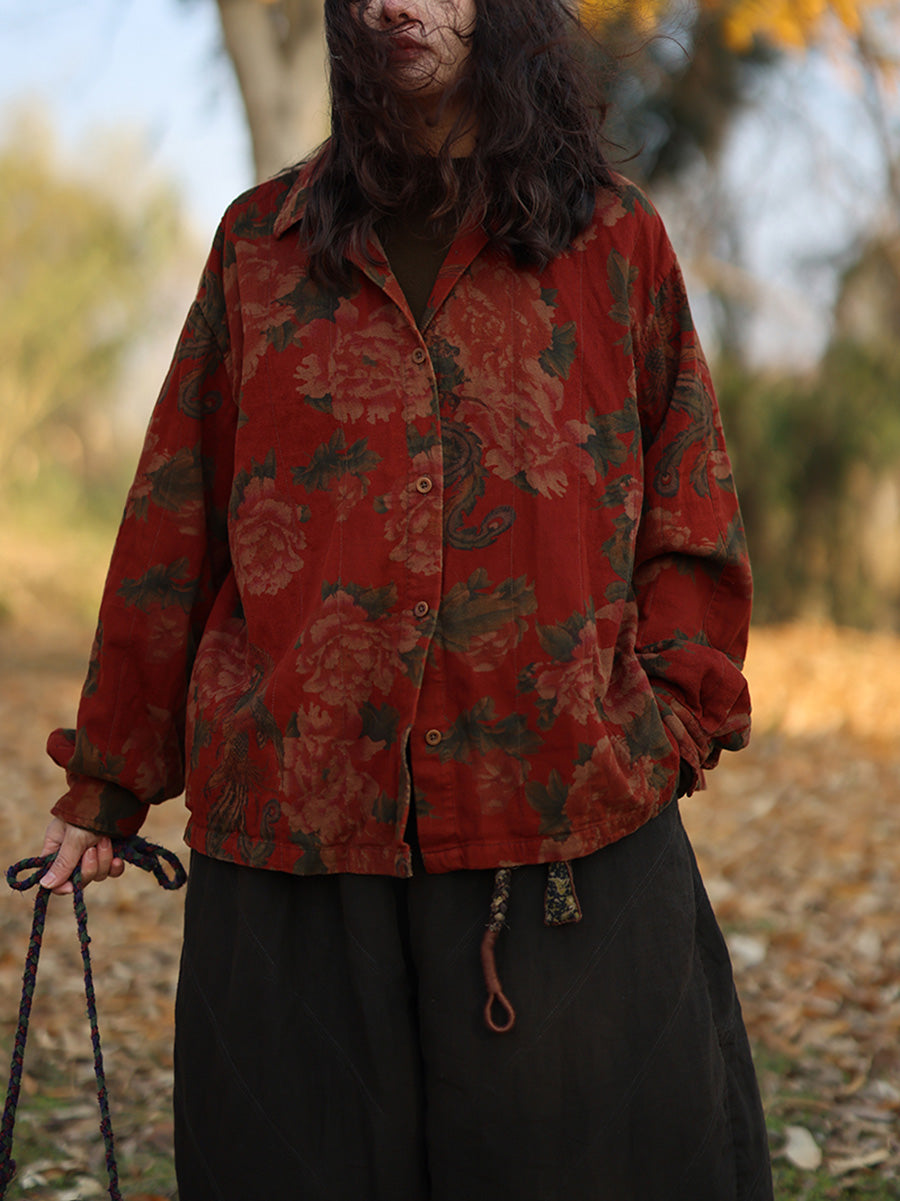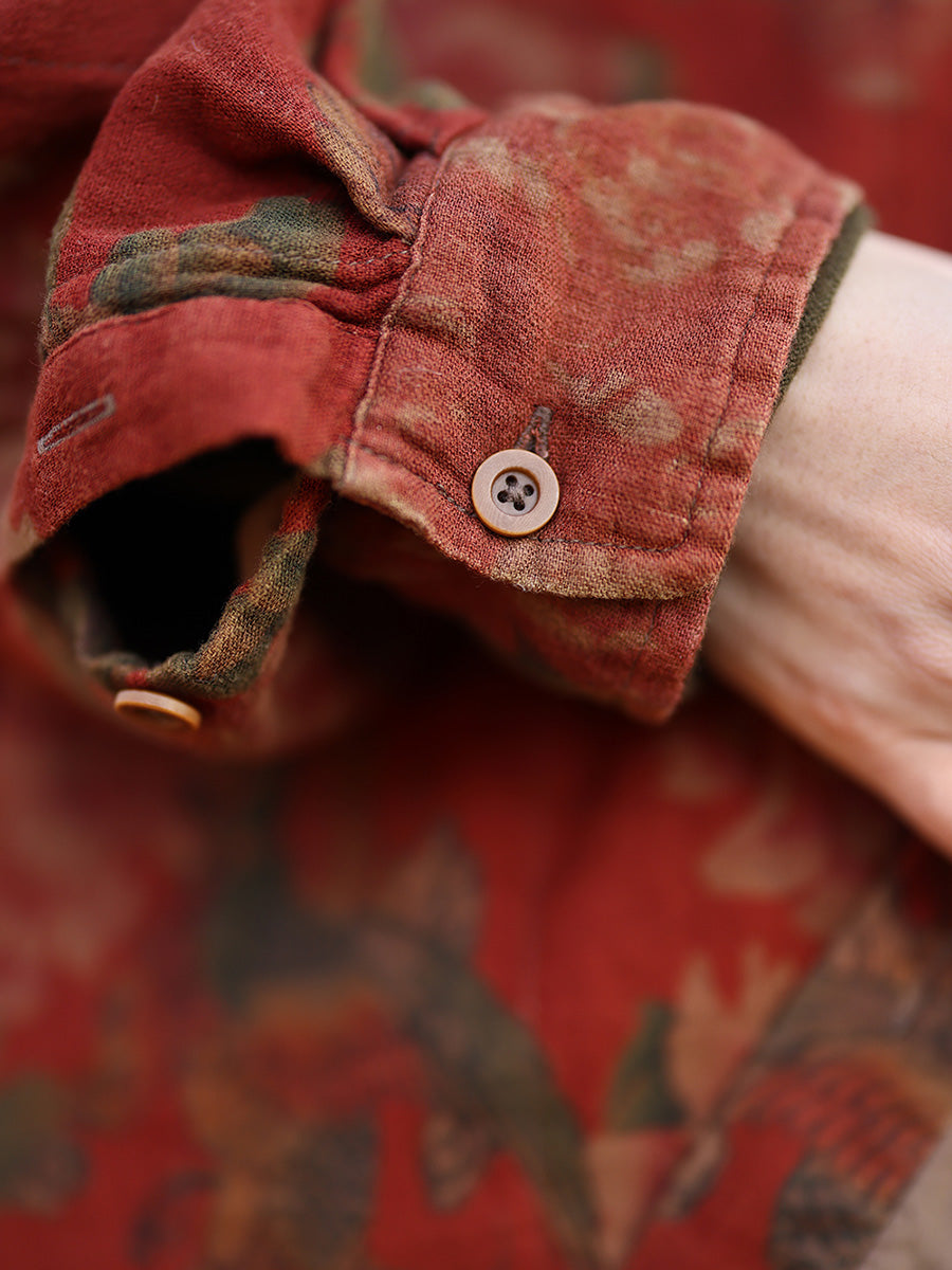 Chemise vintage automnale à fleurs pour femme, col rabattu, 100 % coton