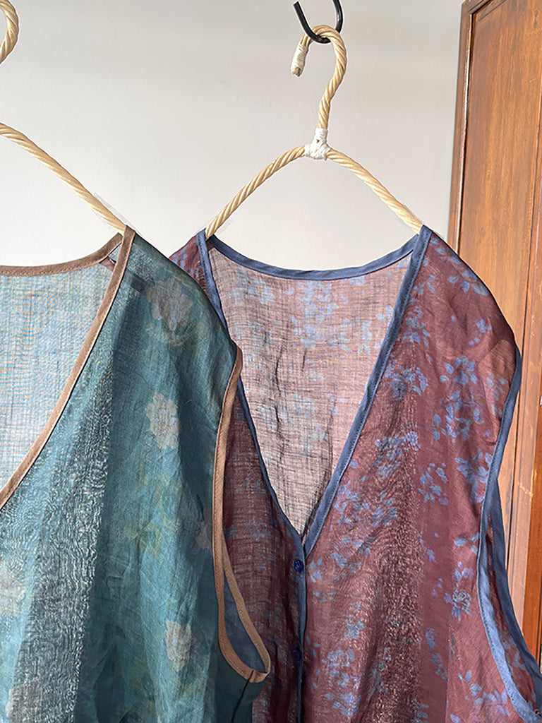 Gilet Ramie à imprimé floral vintage pour femme