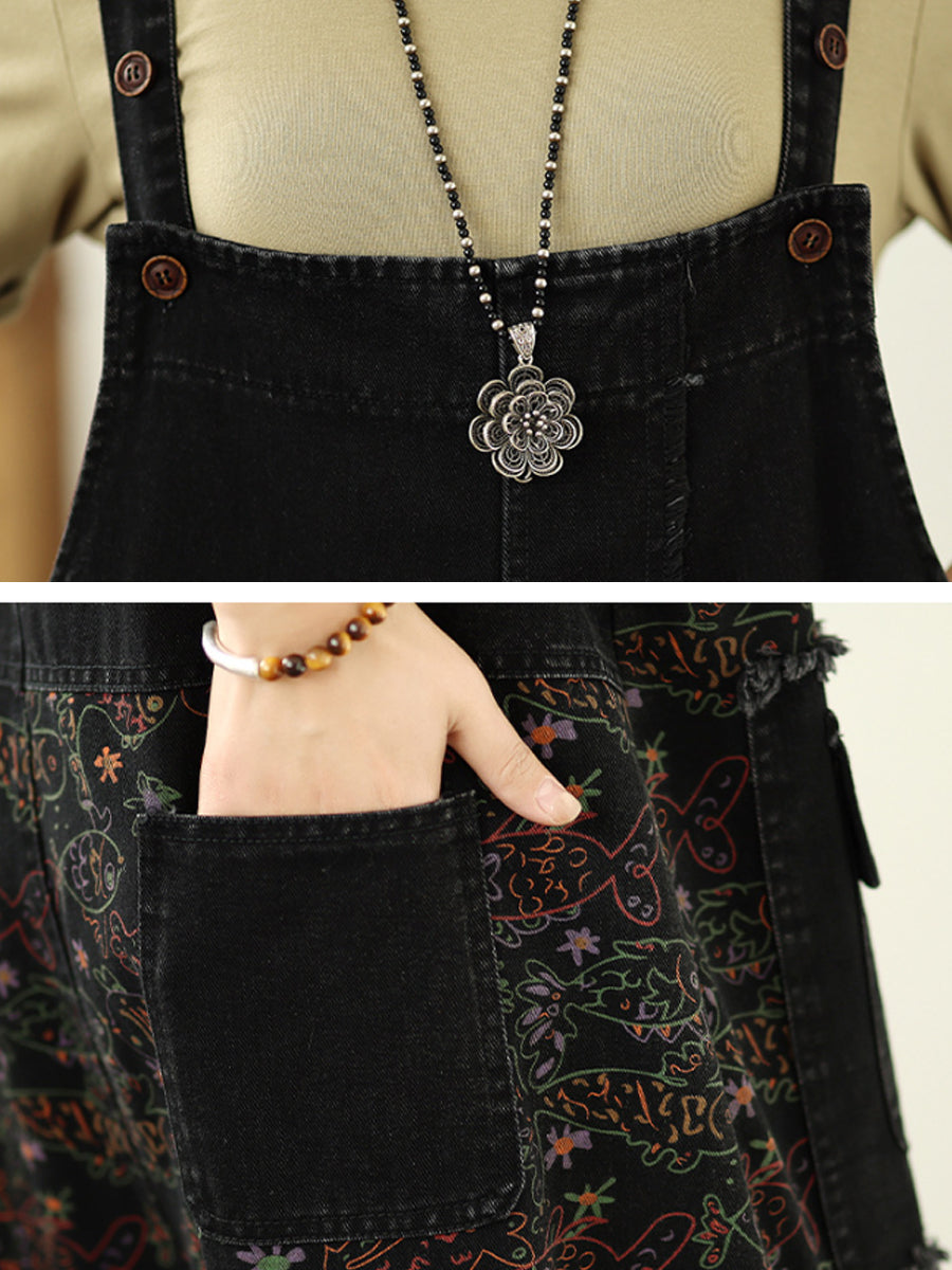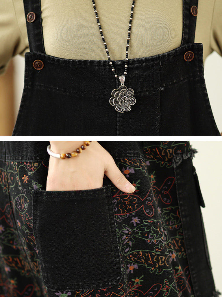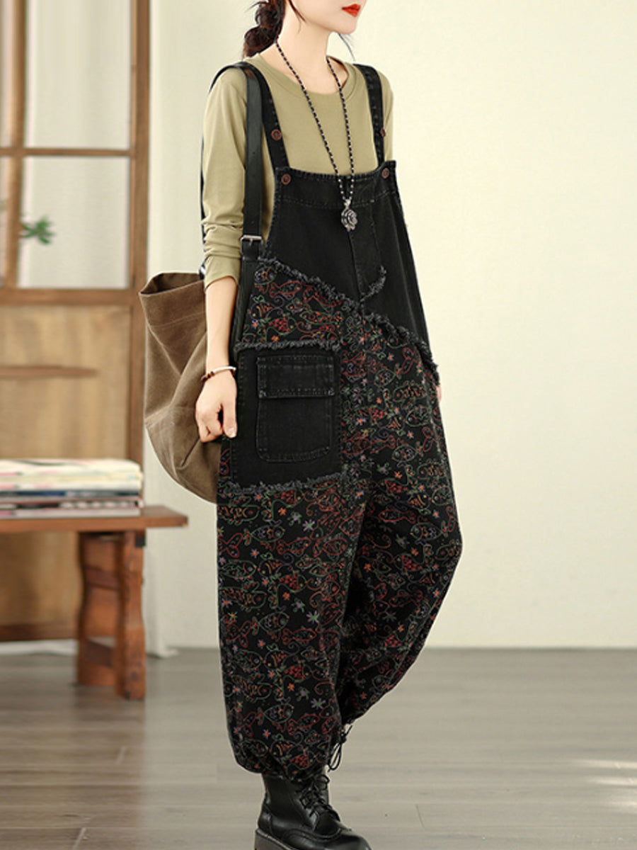 Combinaisons en jean amples à imprimé floral vintage pour femmes