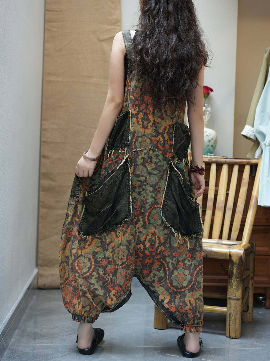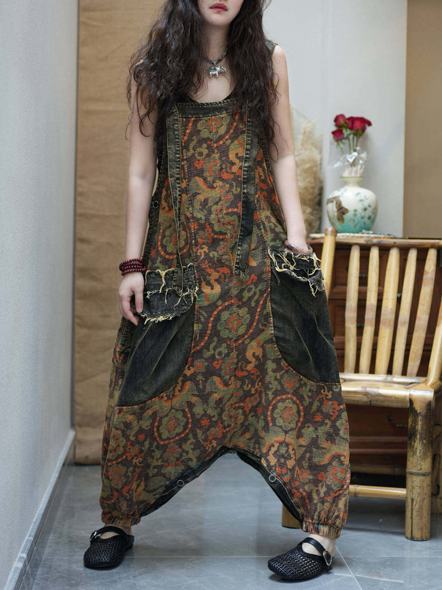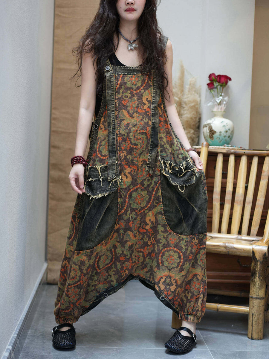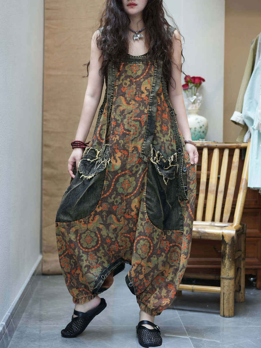 Combinaison en jean vintage à fleurs pour femme