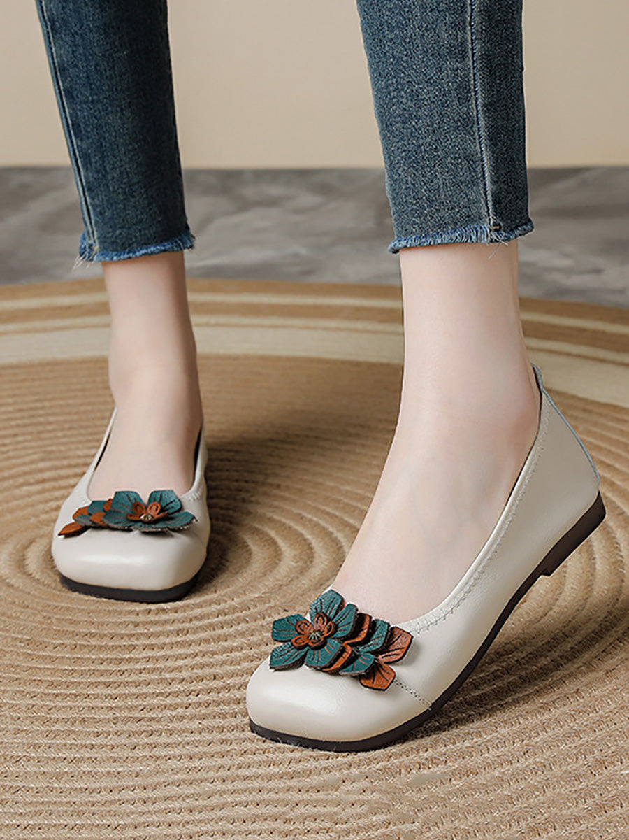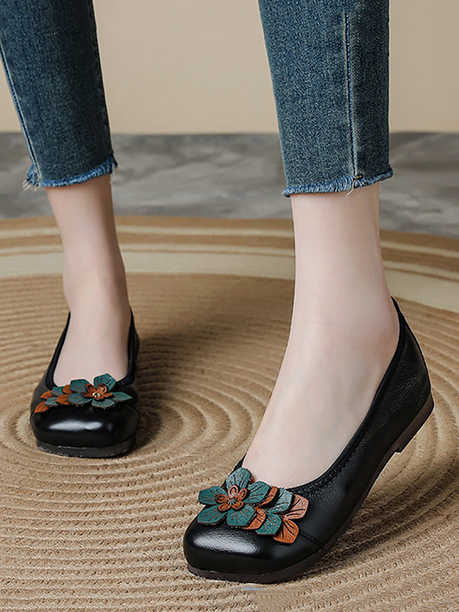Chaussures vintage pour femmes en cuir et cuir à fleurs.