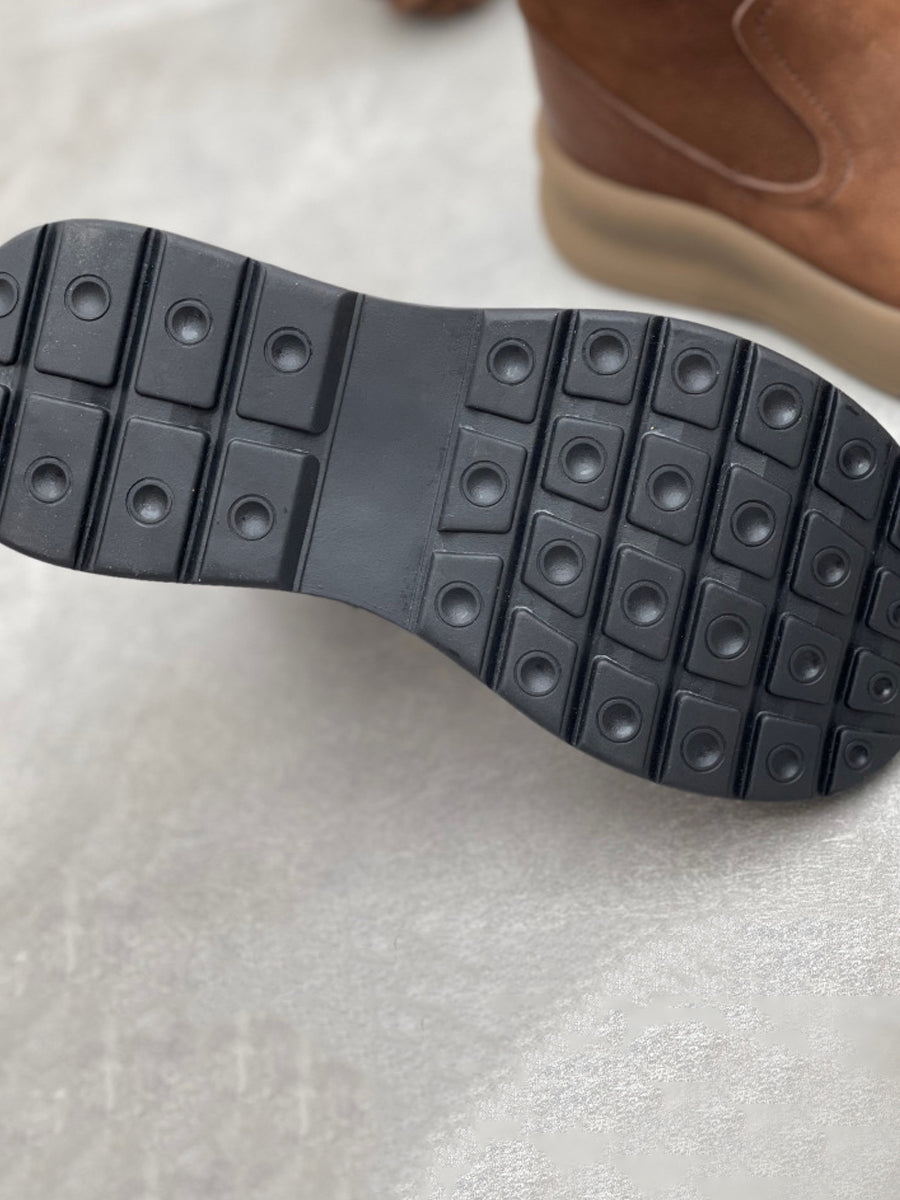 Bottes à plateforme vintage en cuir véritable doublées de polaire pour femmes