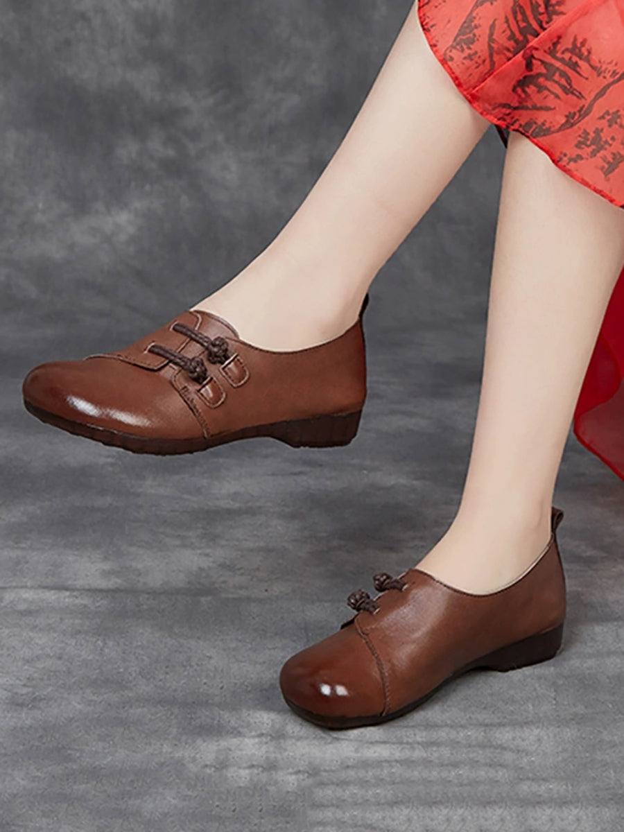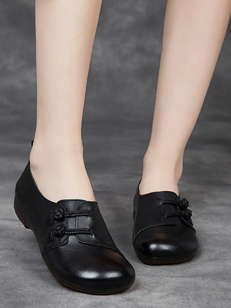 Chaussures vintage pour femmes en cuir véritable à petits talons