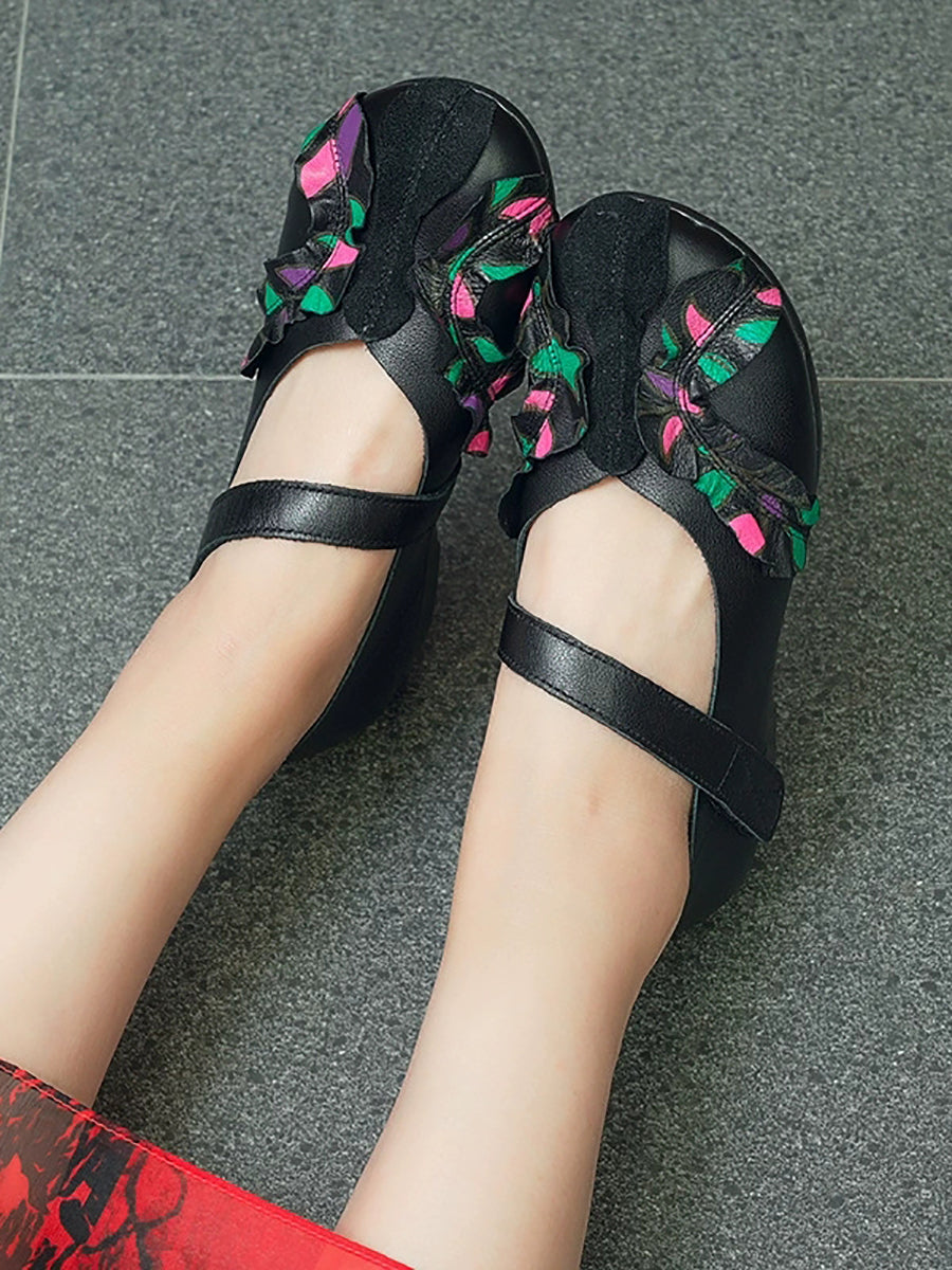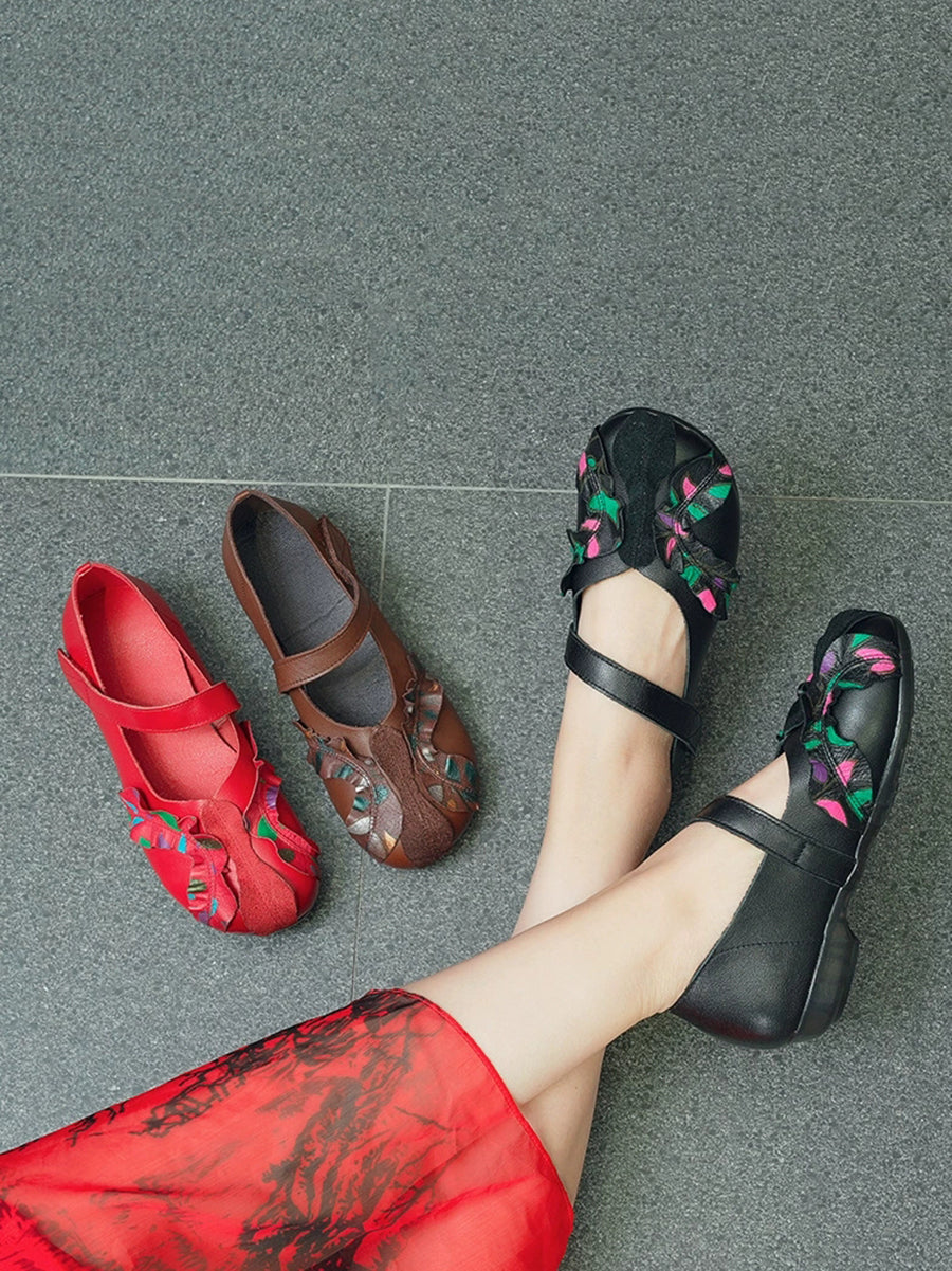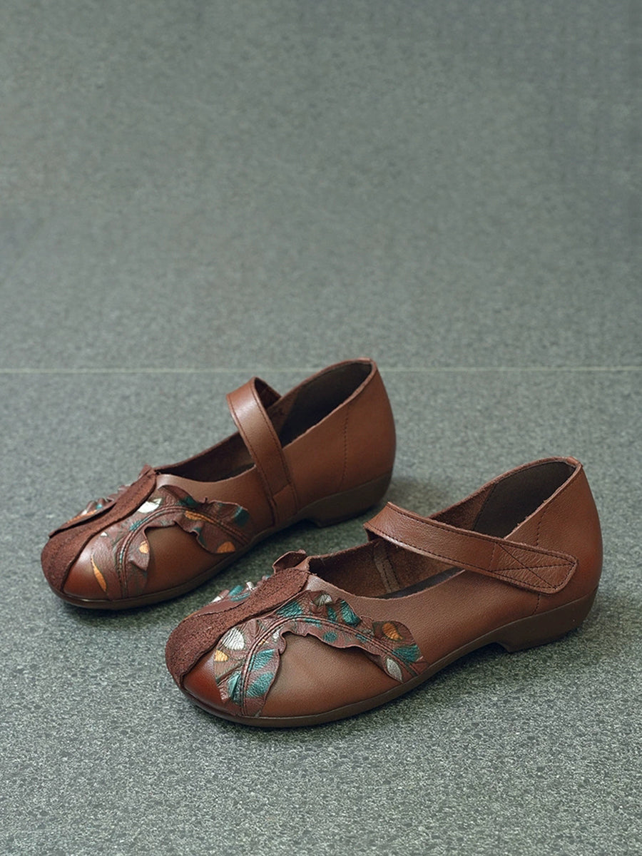 Chaussures vintage pour femmes en cuir véritable à petits talons, style vintage