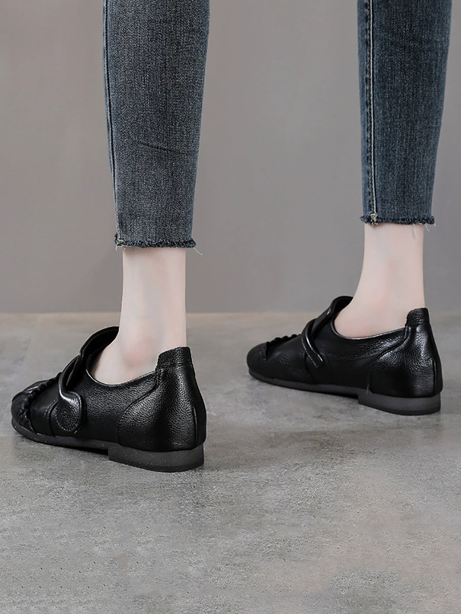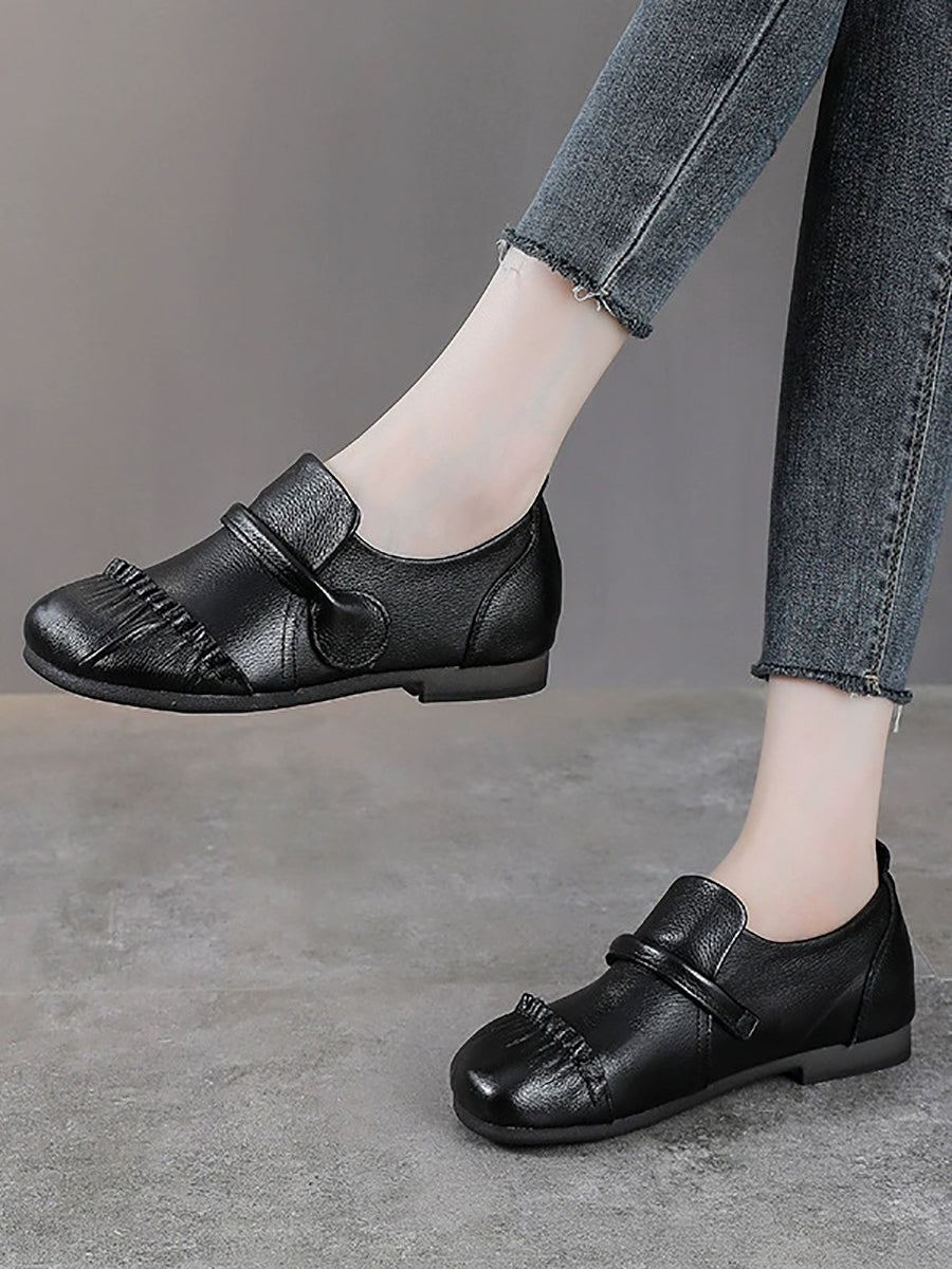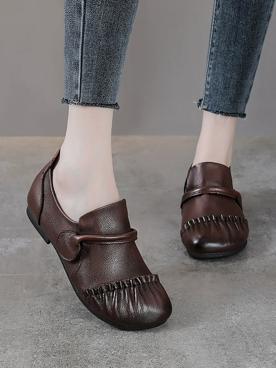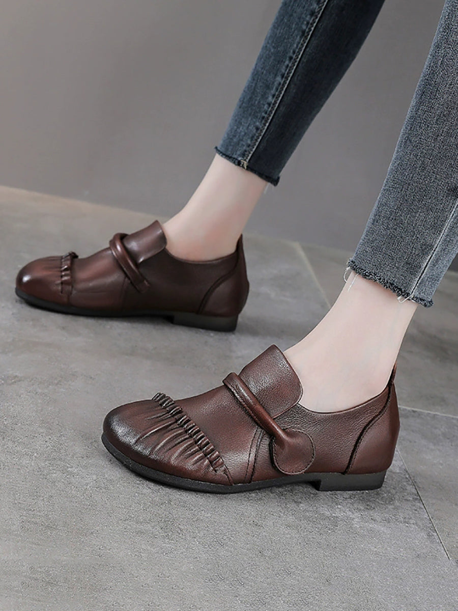Chaussures vintage pour femmes en cuir véritable à petits talons, style vintage