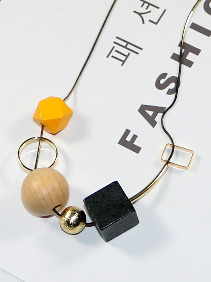 Collier vintage en alliage de perles de bois géométriques pour femme