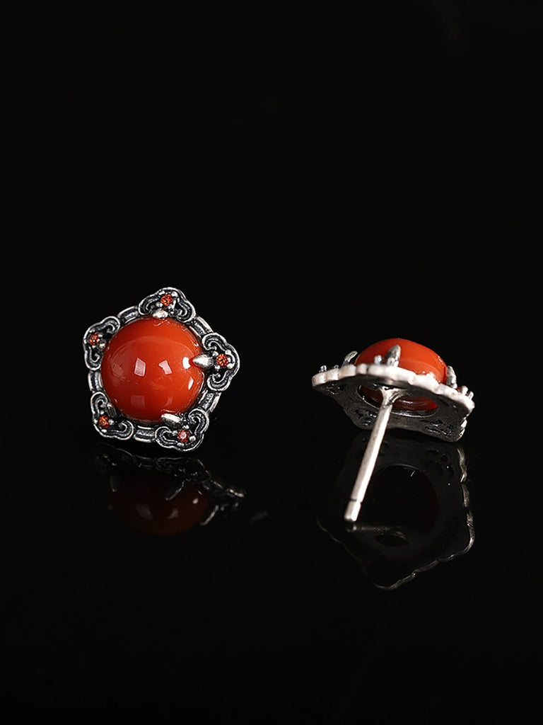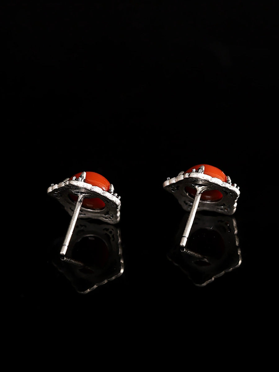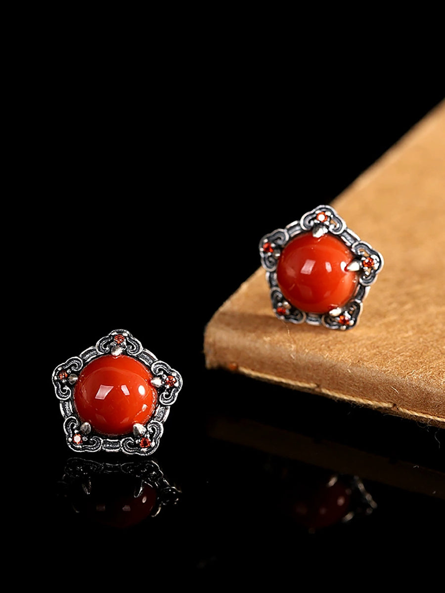 Boucles d'oreilles vintage pour femmes en argent S925 et agate rouge