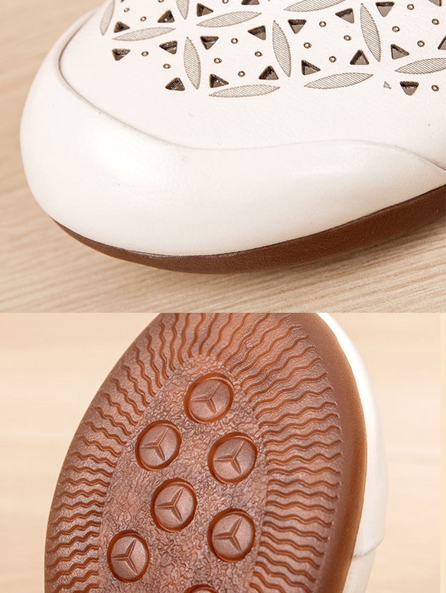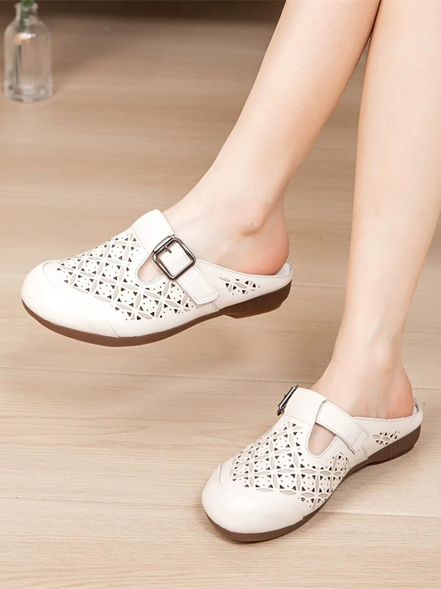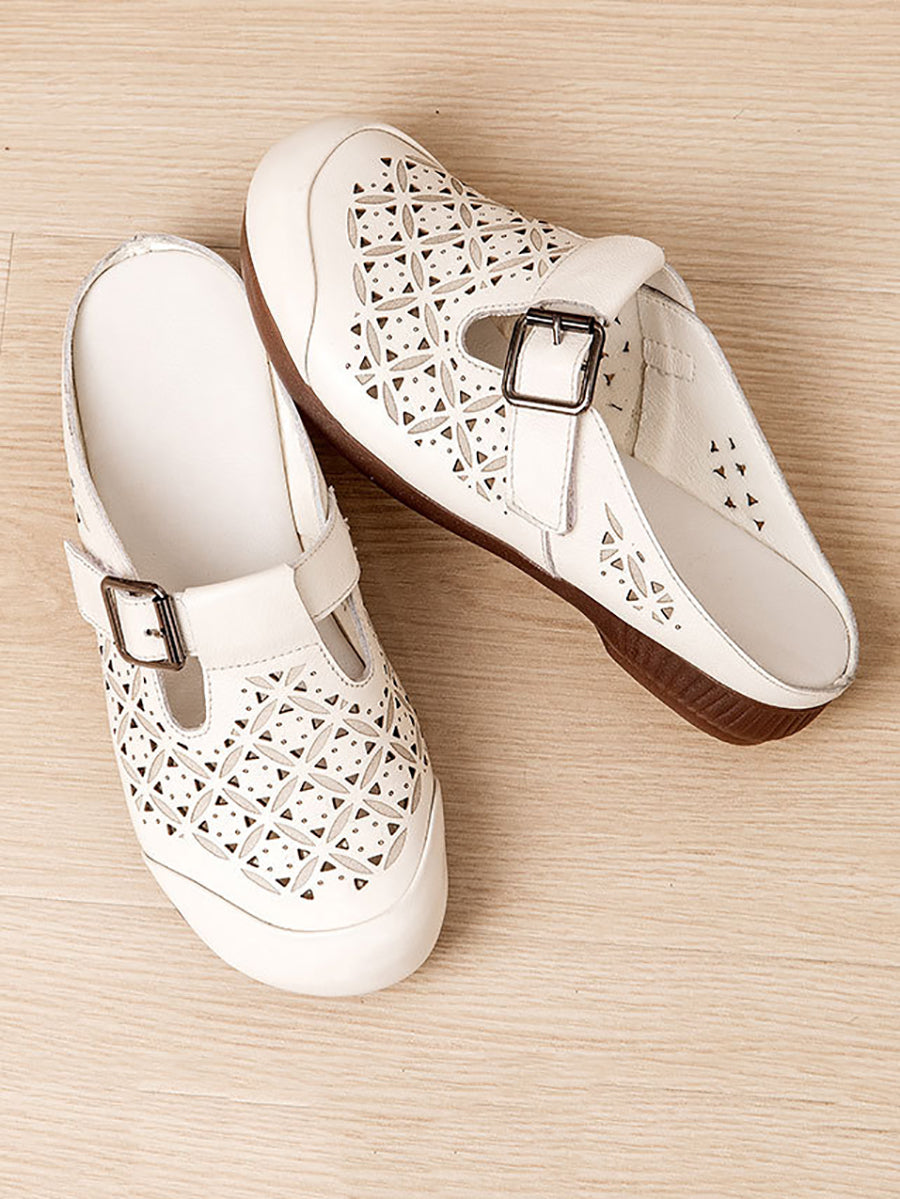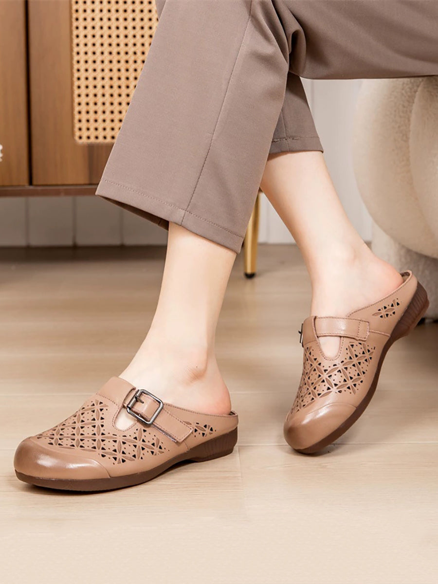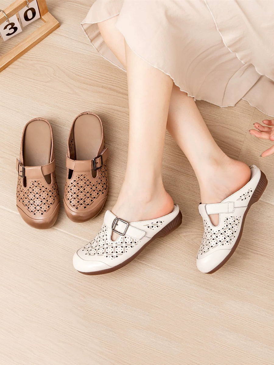 Pantoufles d'été vintage pour femmes en cuir ajouré