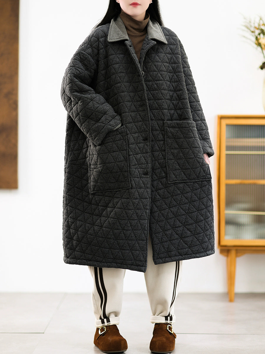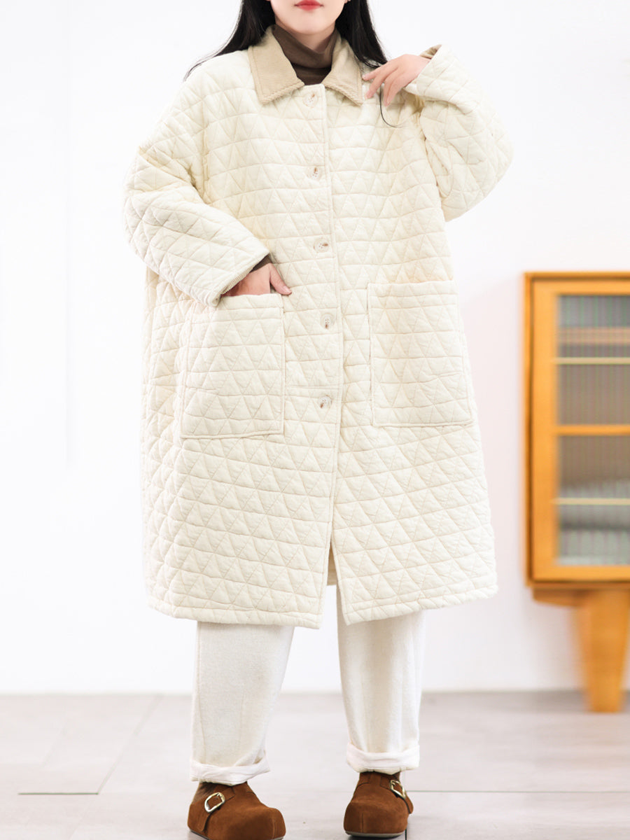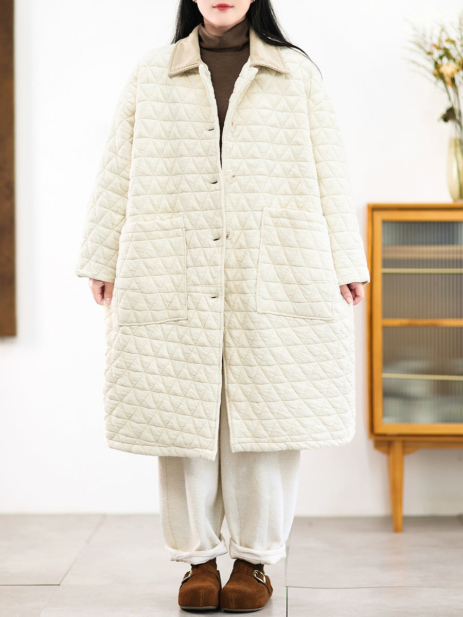 Manteau d'hiver pour femme, style artistique, couleur unie, matelassé, col rabattu