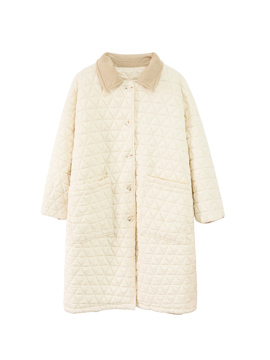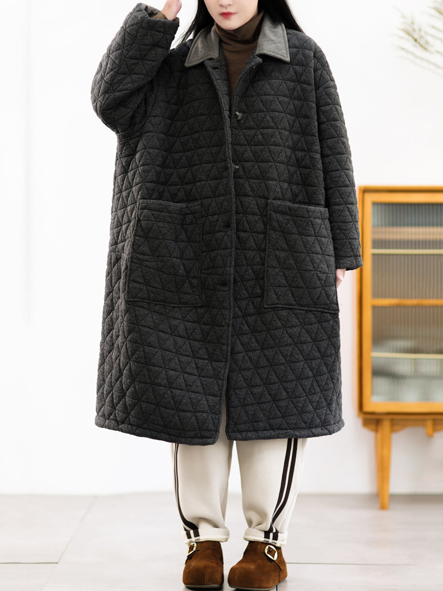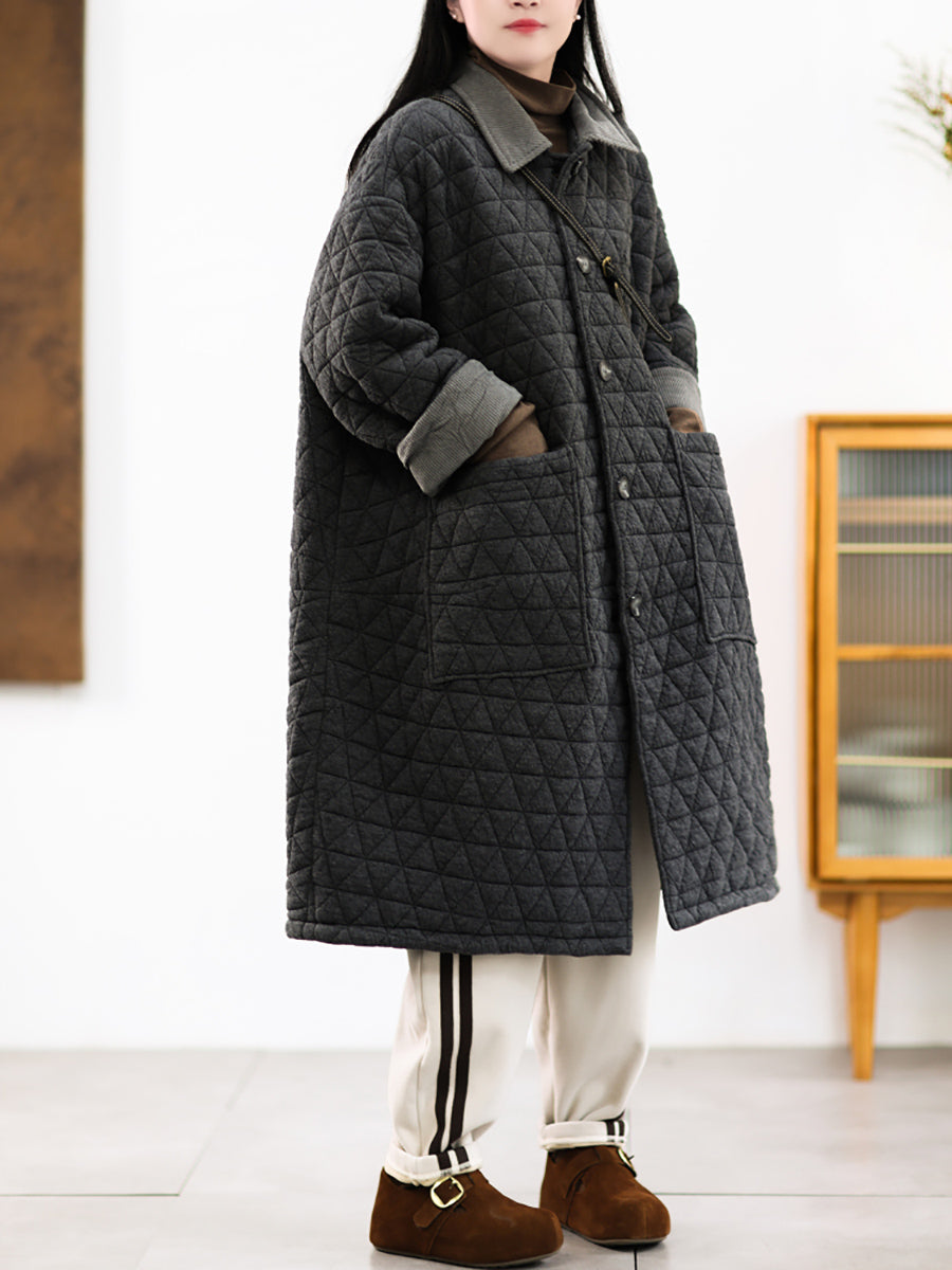 Manteau d'hiver pour femme, style artistique, couleur unie, matelassé, col rabattu