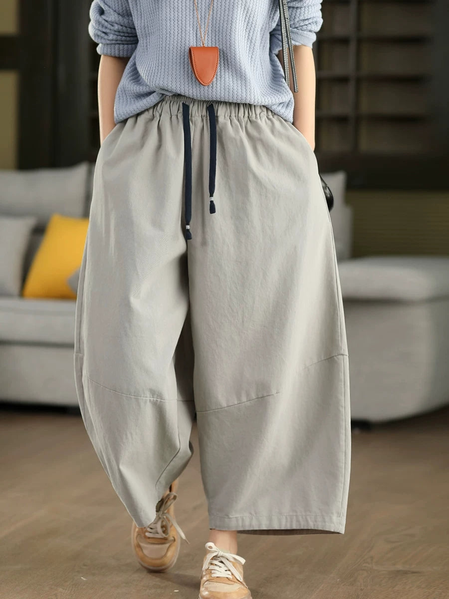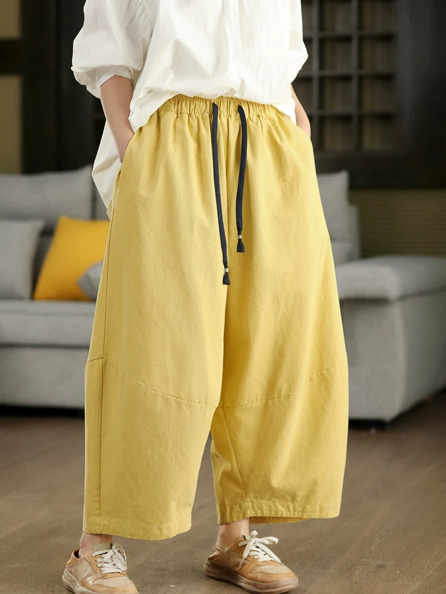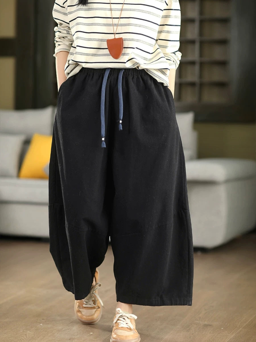 Pantalon large décontracté d'hiver pour femme, couleur unie, 100 % coton