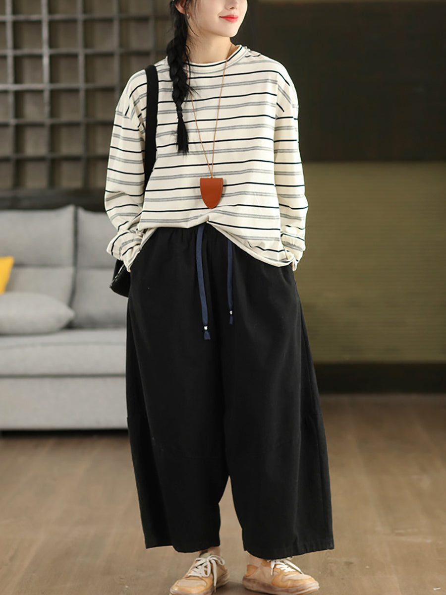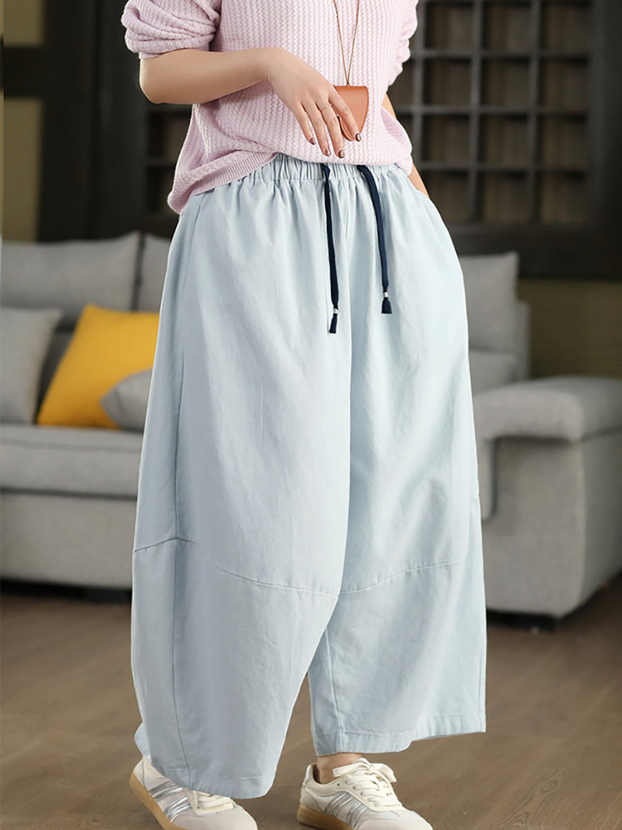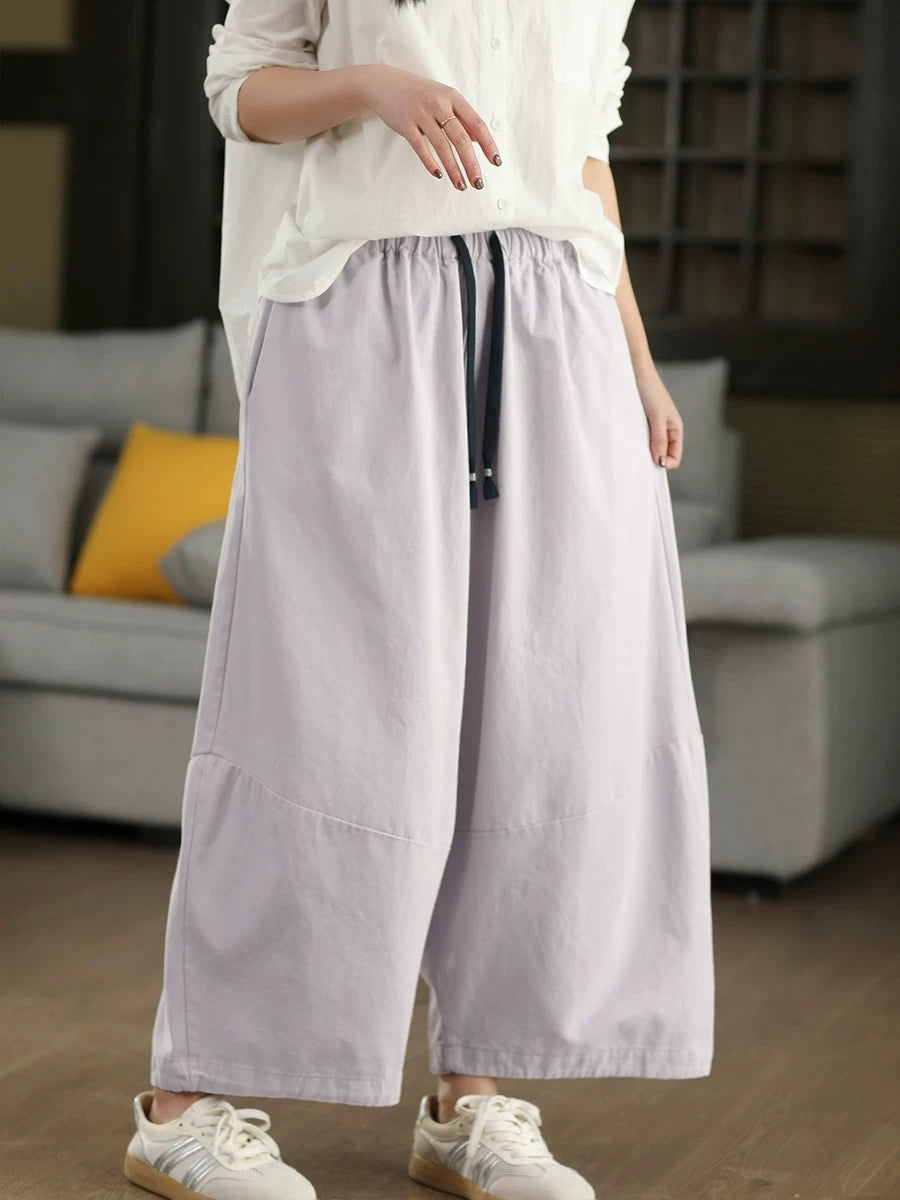 Pantalon large décontracté d'hiver pour femme, couleur unie, 100 % coton