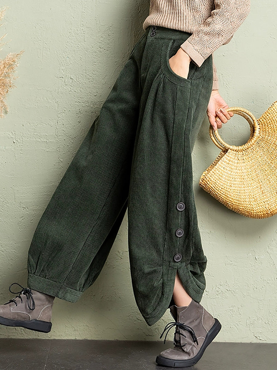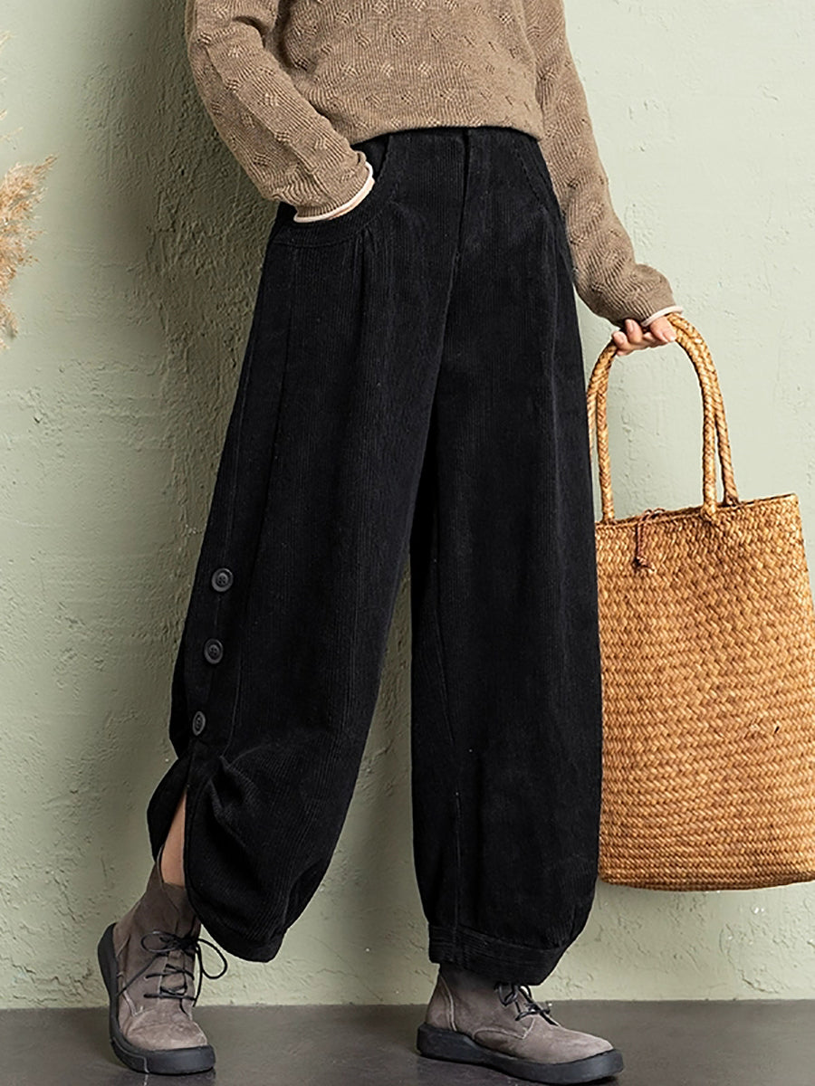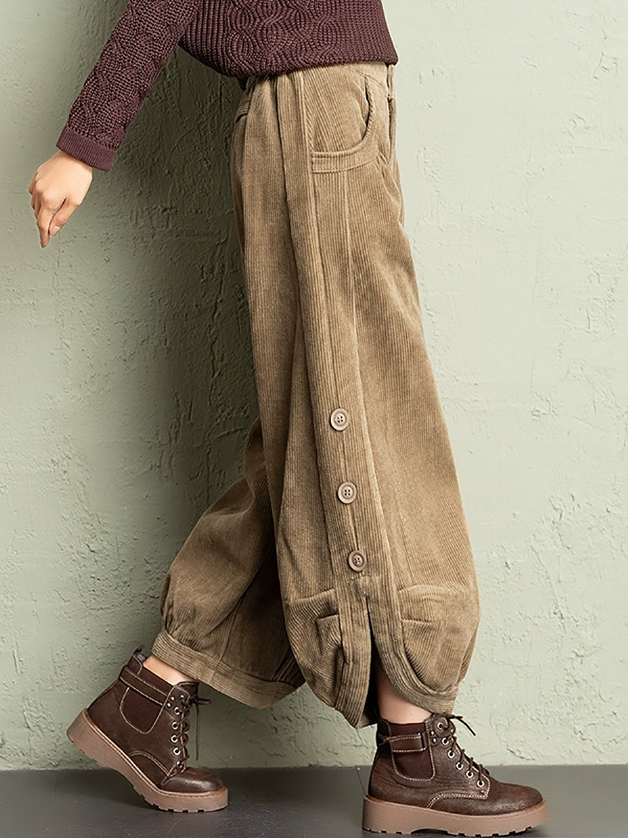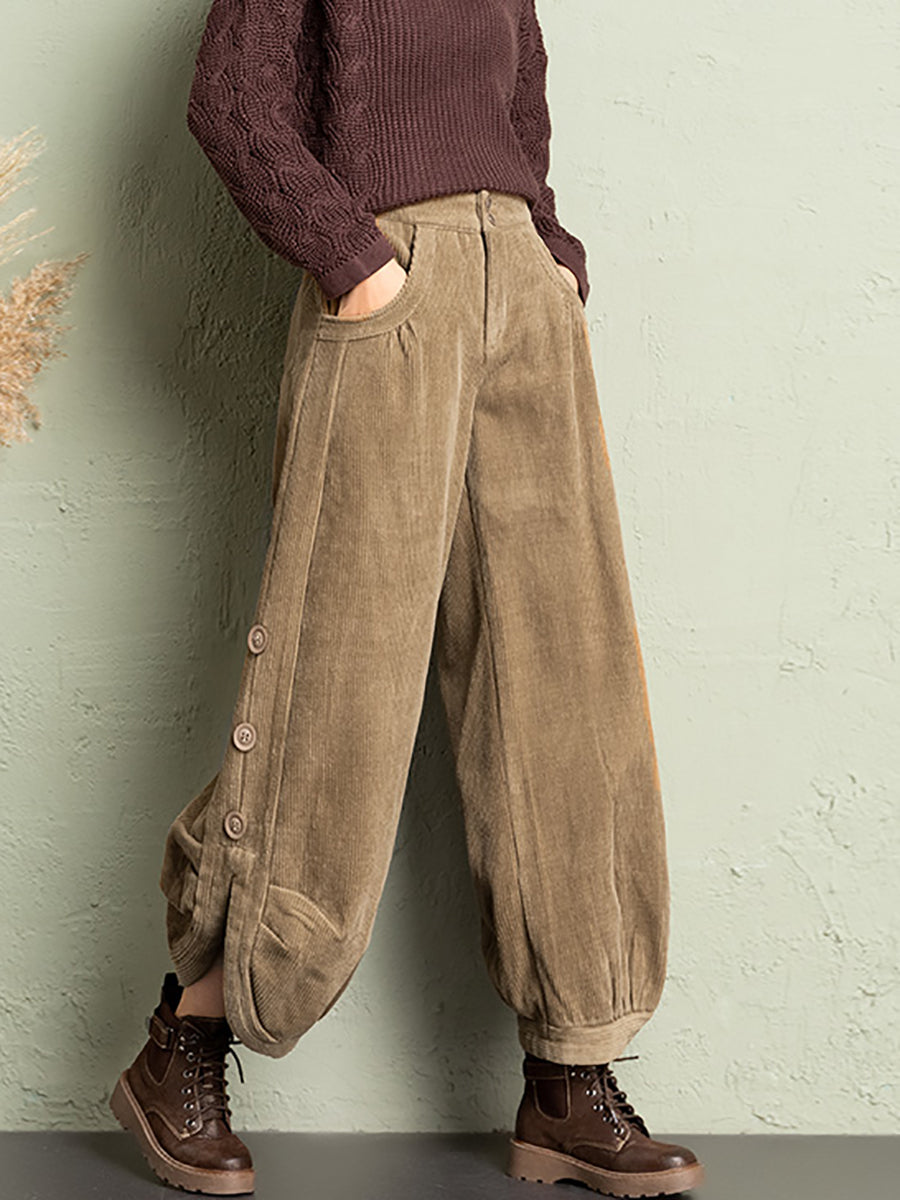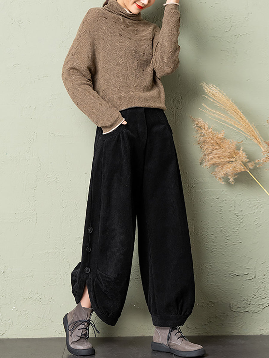 Bloomers en velours côtelé uni décontractés d'hiver pour femmes