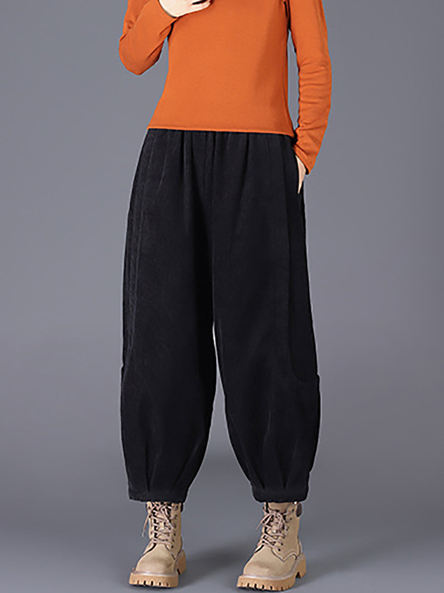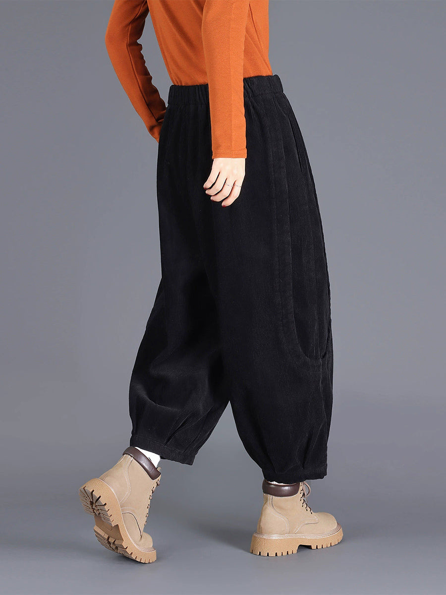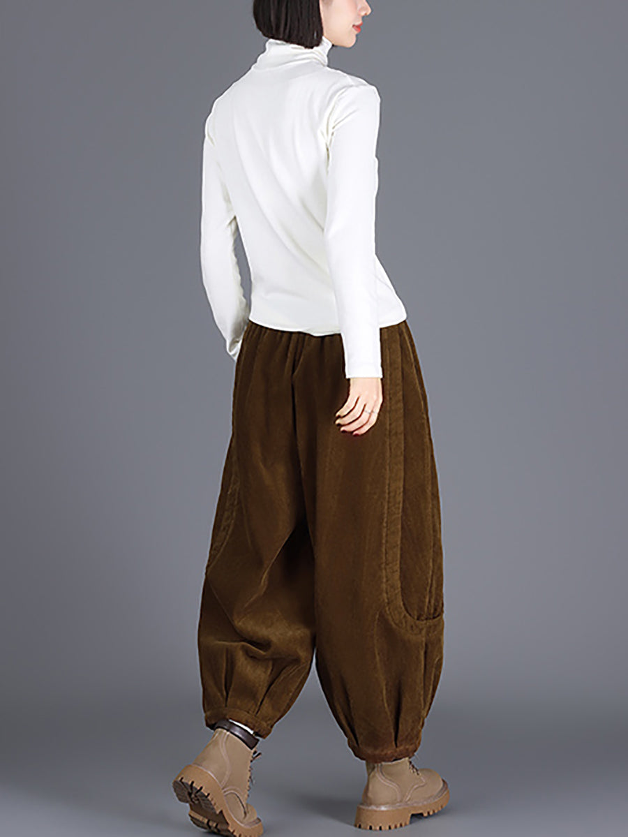 Pantalon sarouel décontracté d'hiver en velours côtelé de couleur pure pour femme