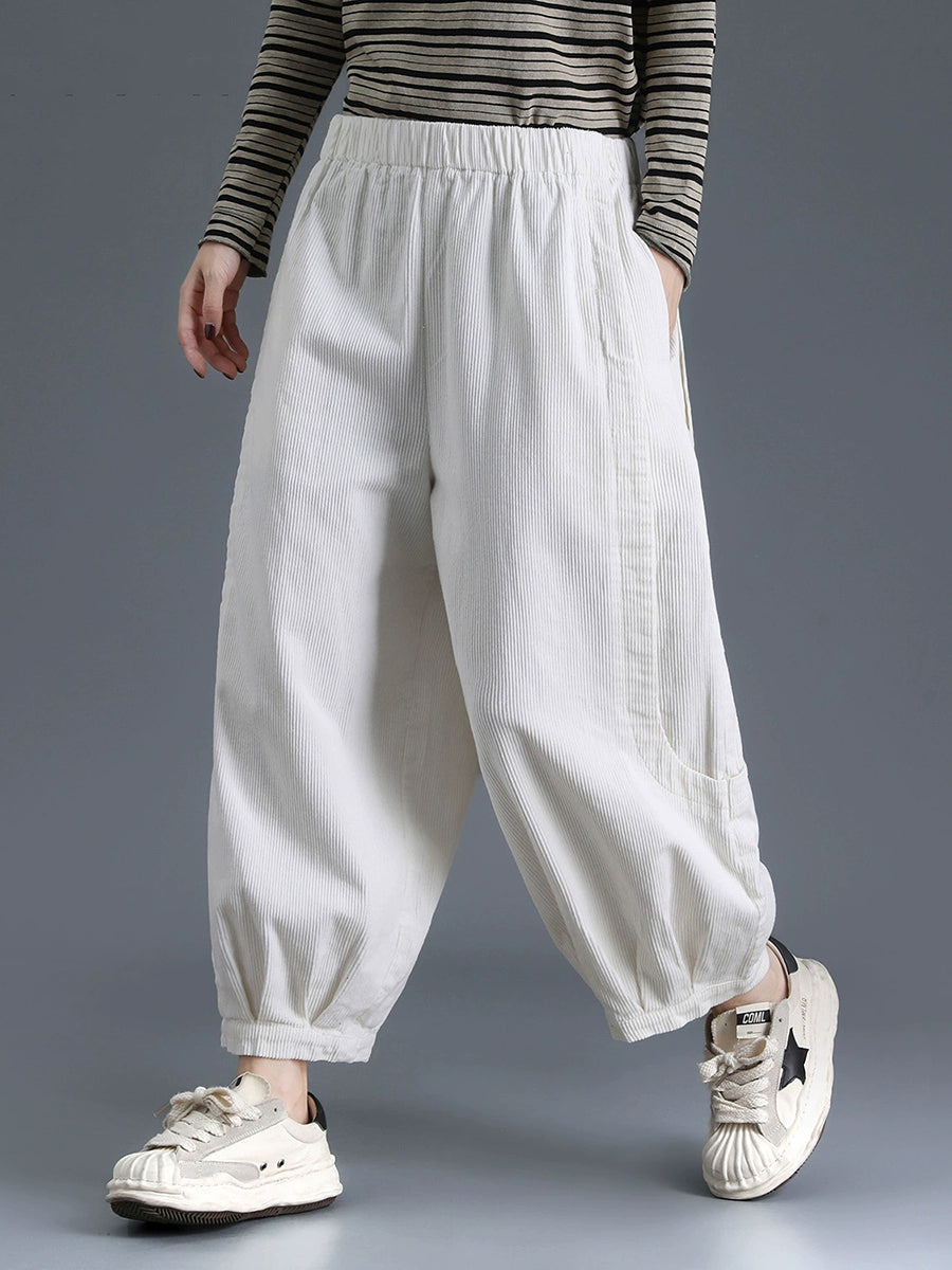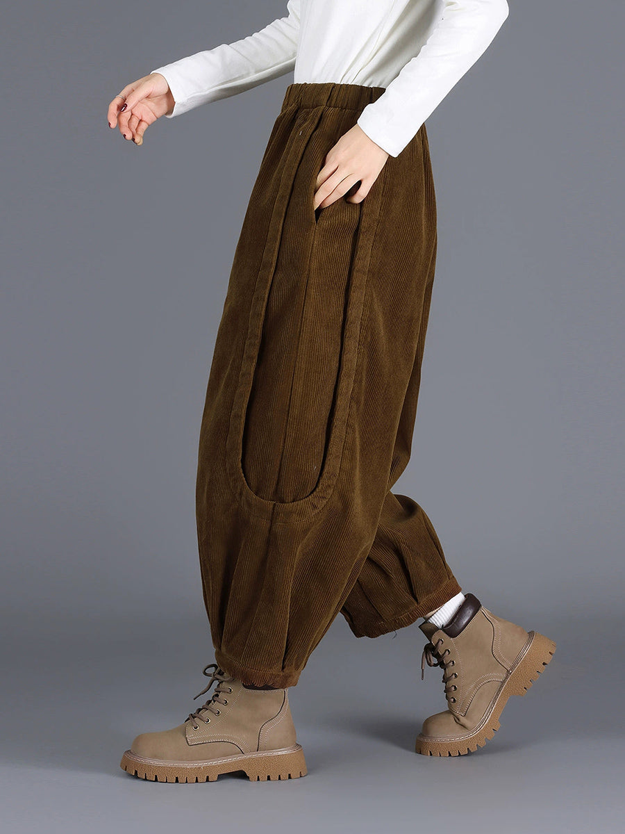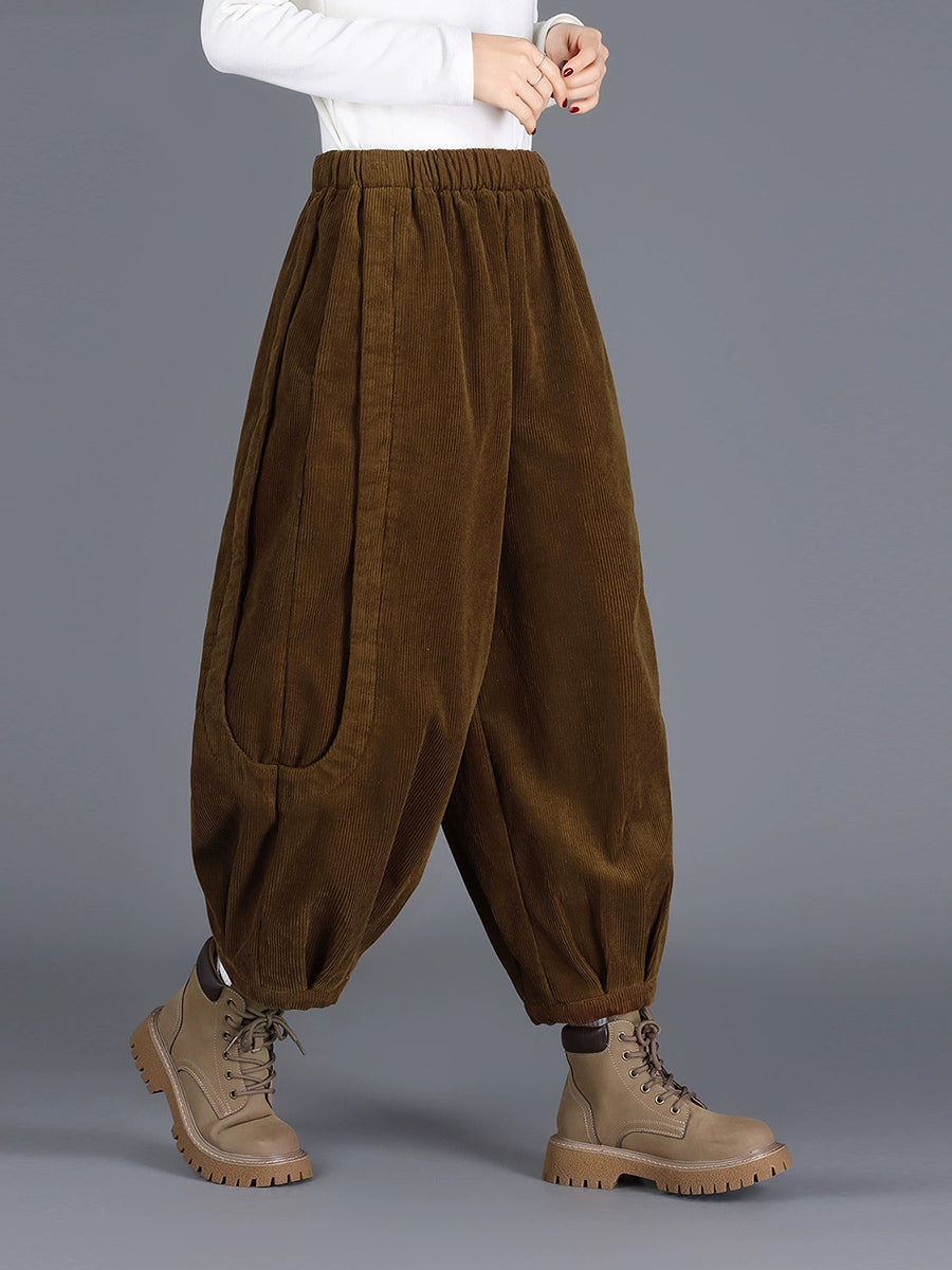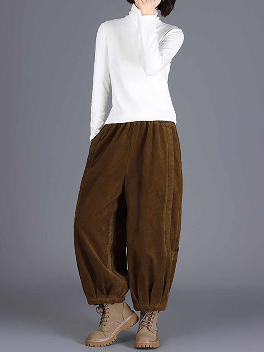 Pantalon sarouel décontracté d'hiver en velours côtelé de couleur pure pour femme