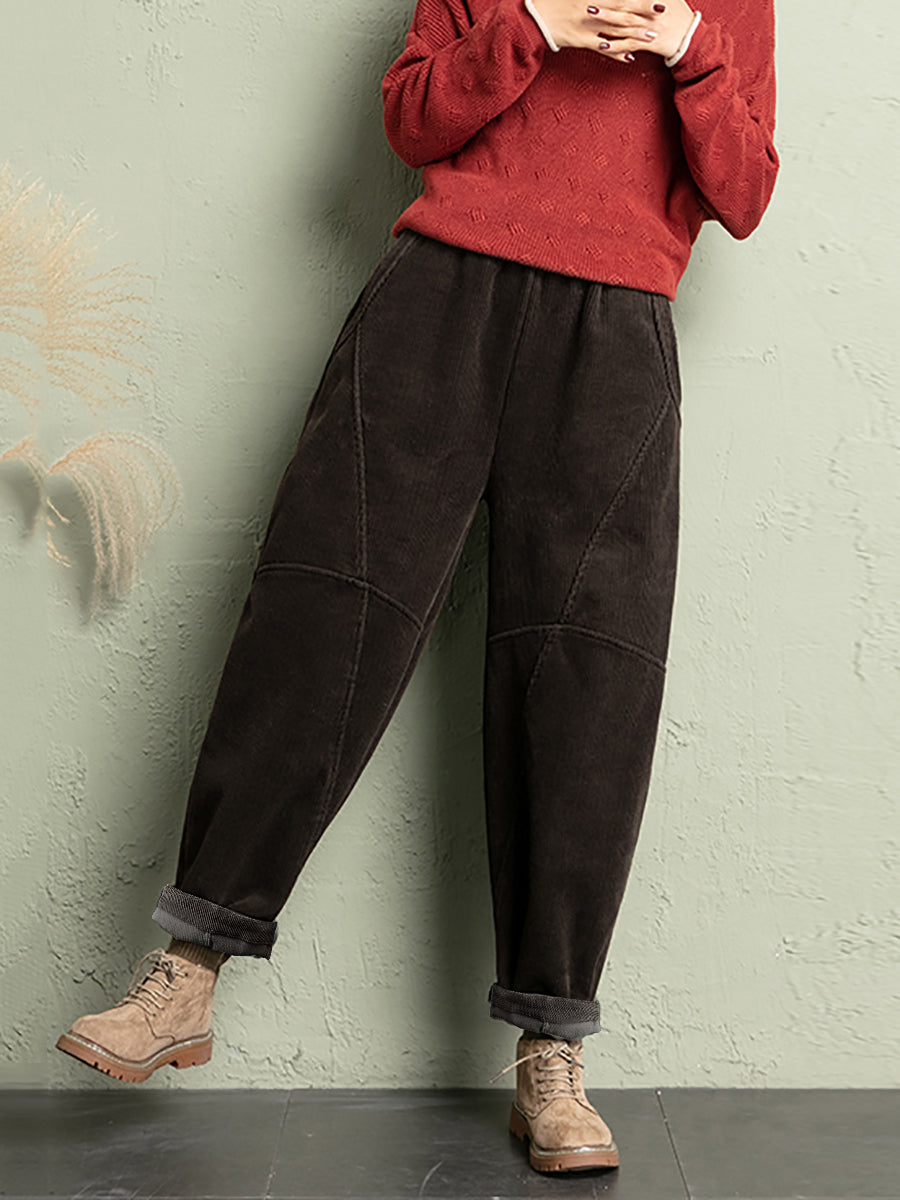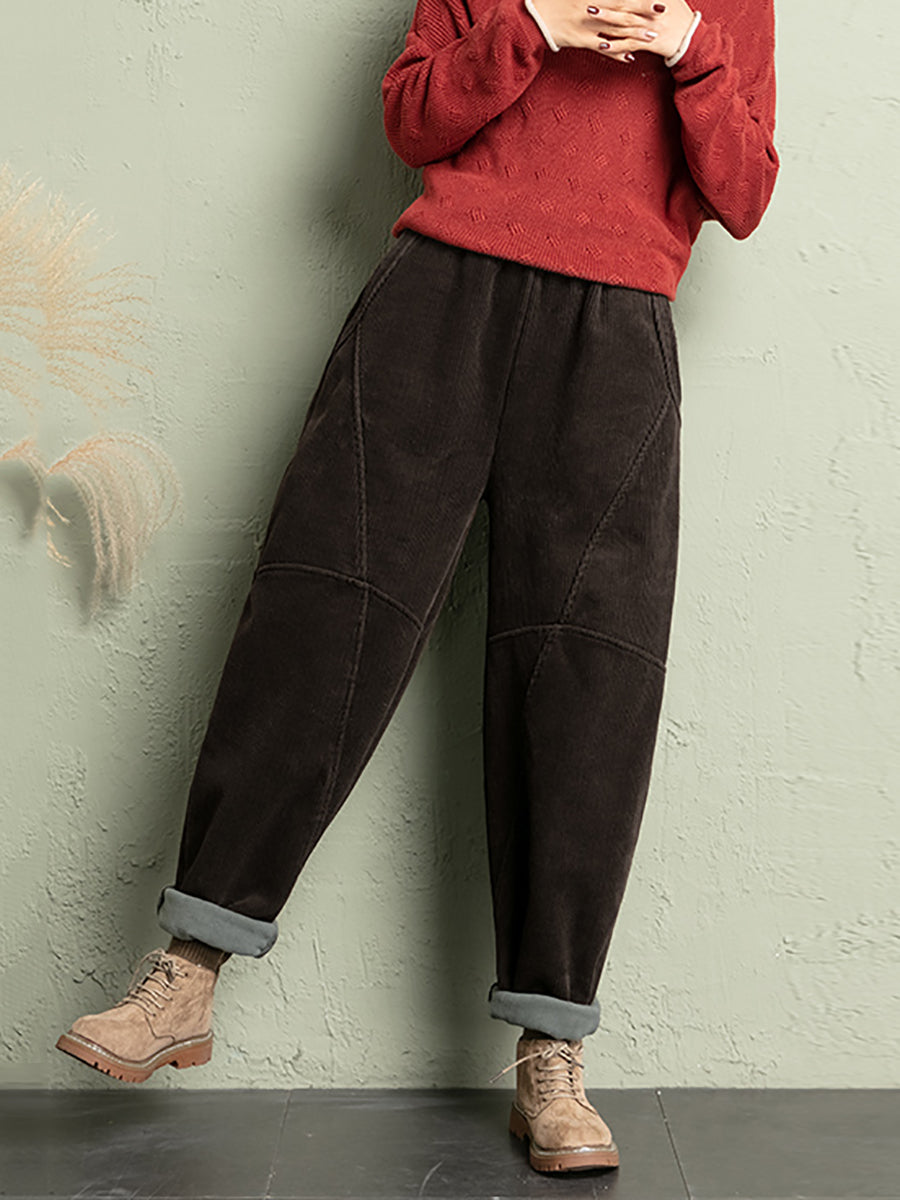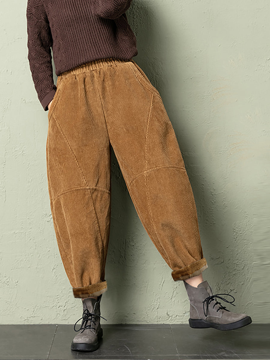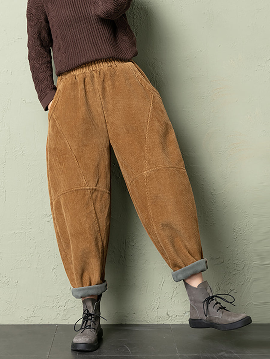Pantalon sarouel décontracté d'hiver en velours côtelé de couleur pure pour femme