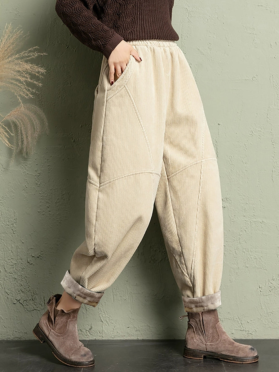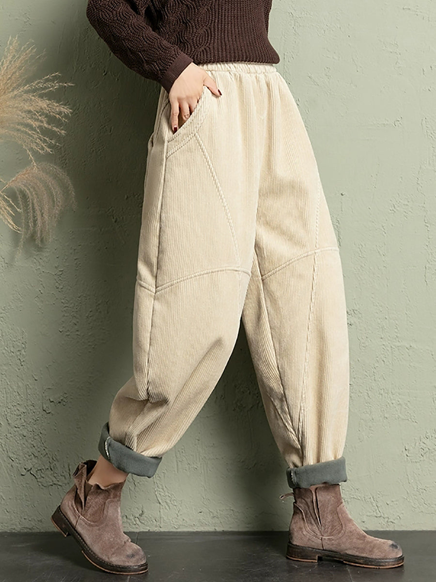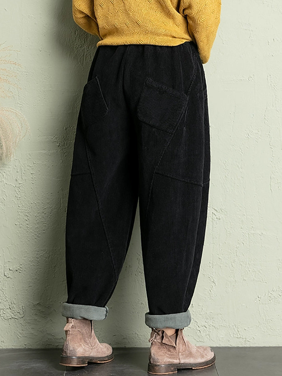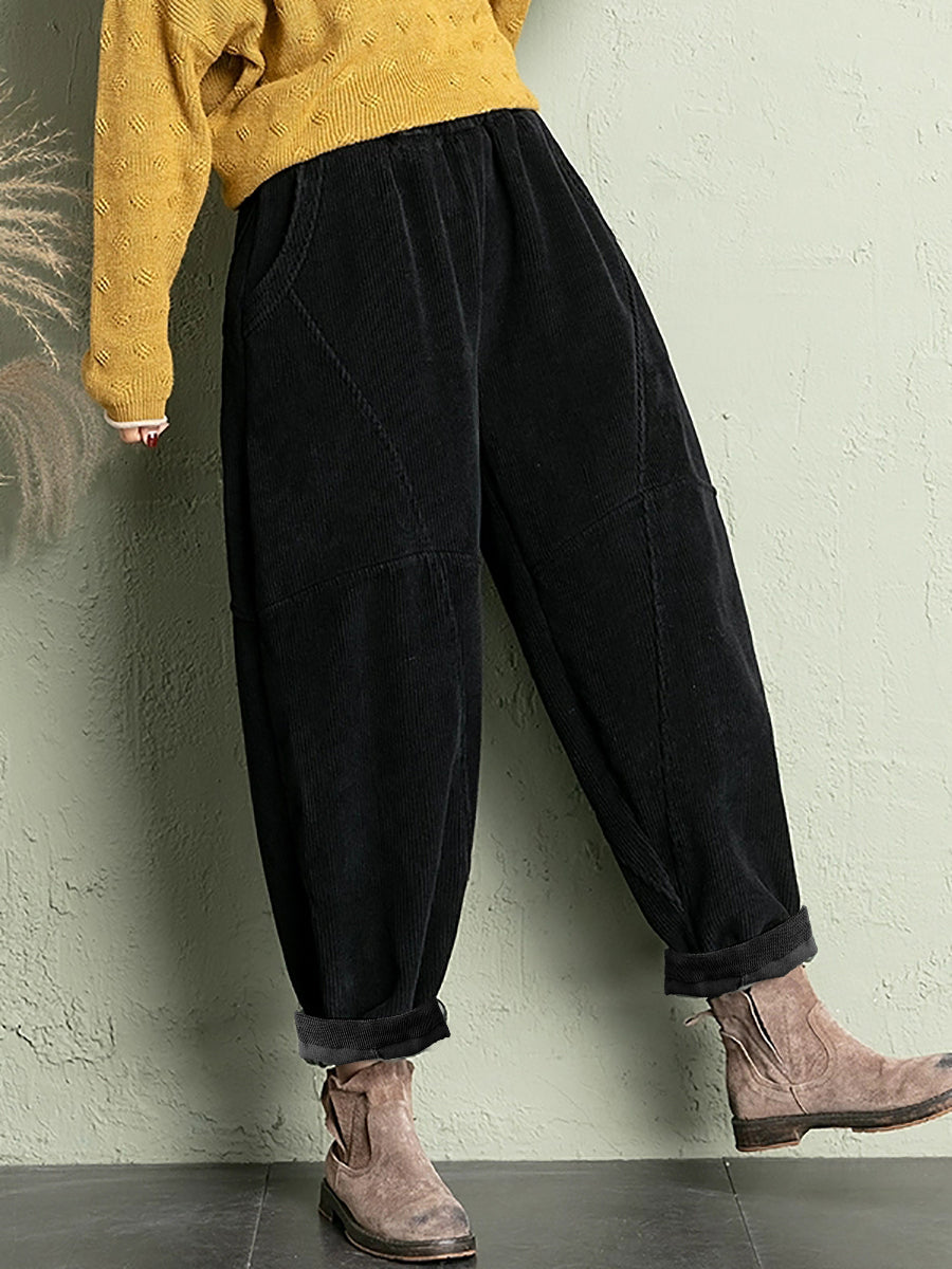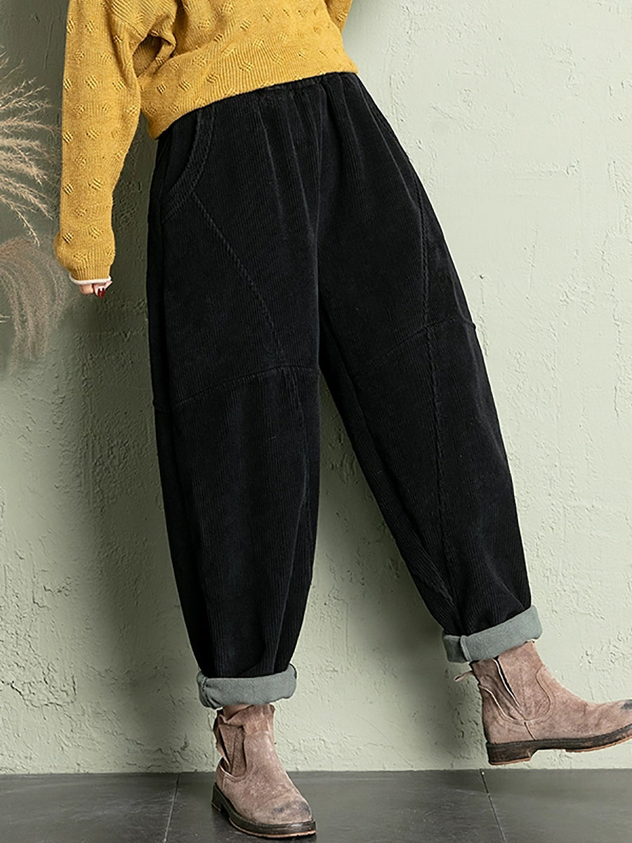 Pantalon sarouel décontracté d'hiver en velours côtelé de couleur pure pour femme