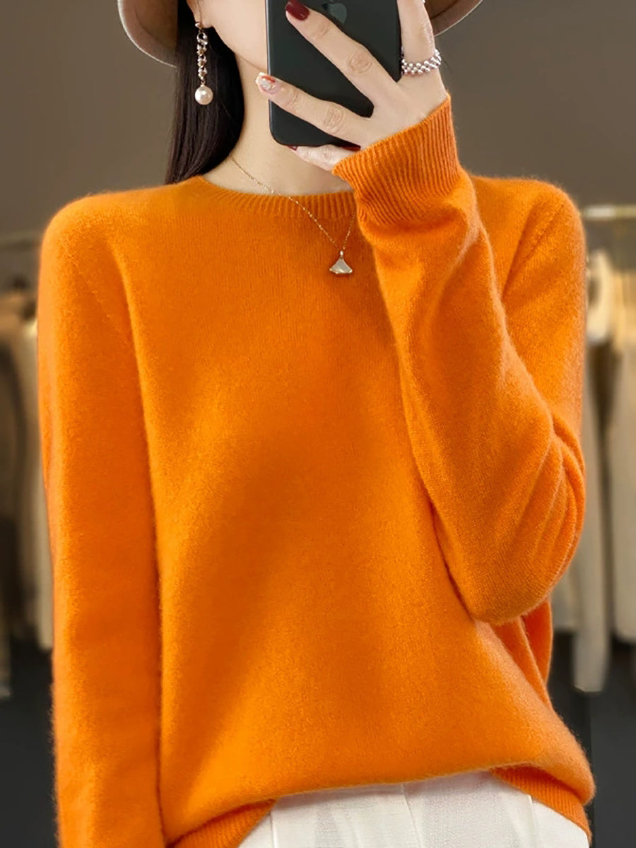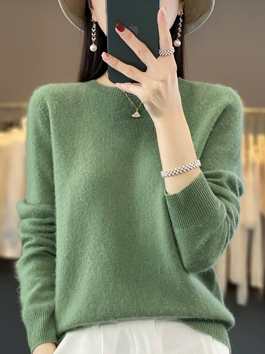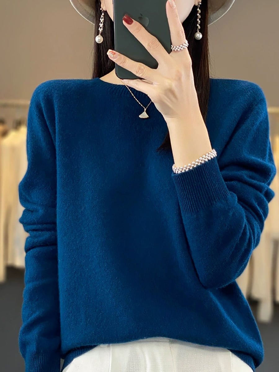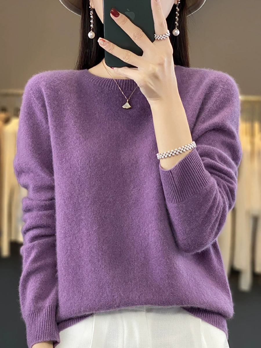 Pull en maille uni à col rond pour femme, style décontracté d'hiver