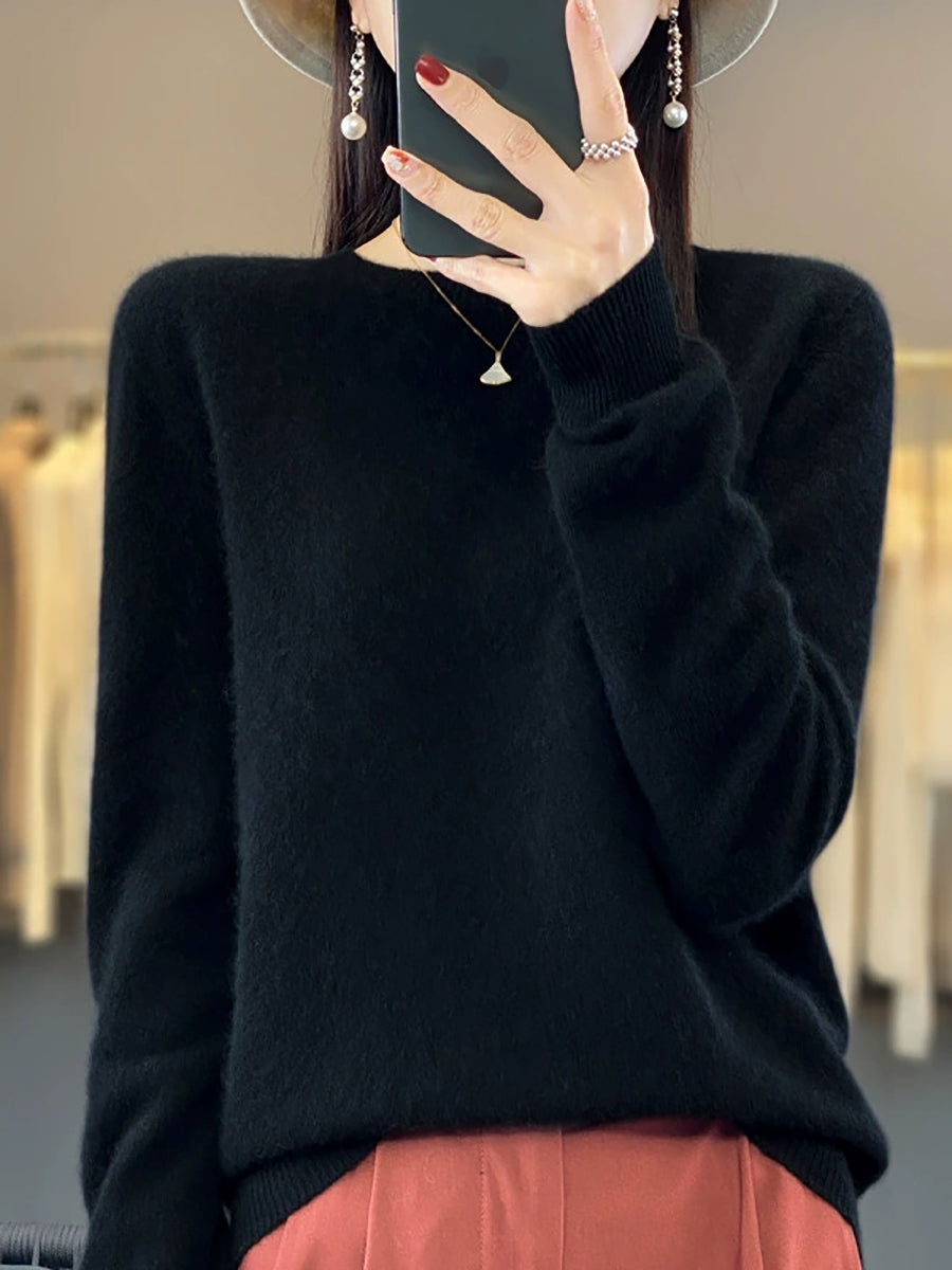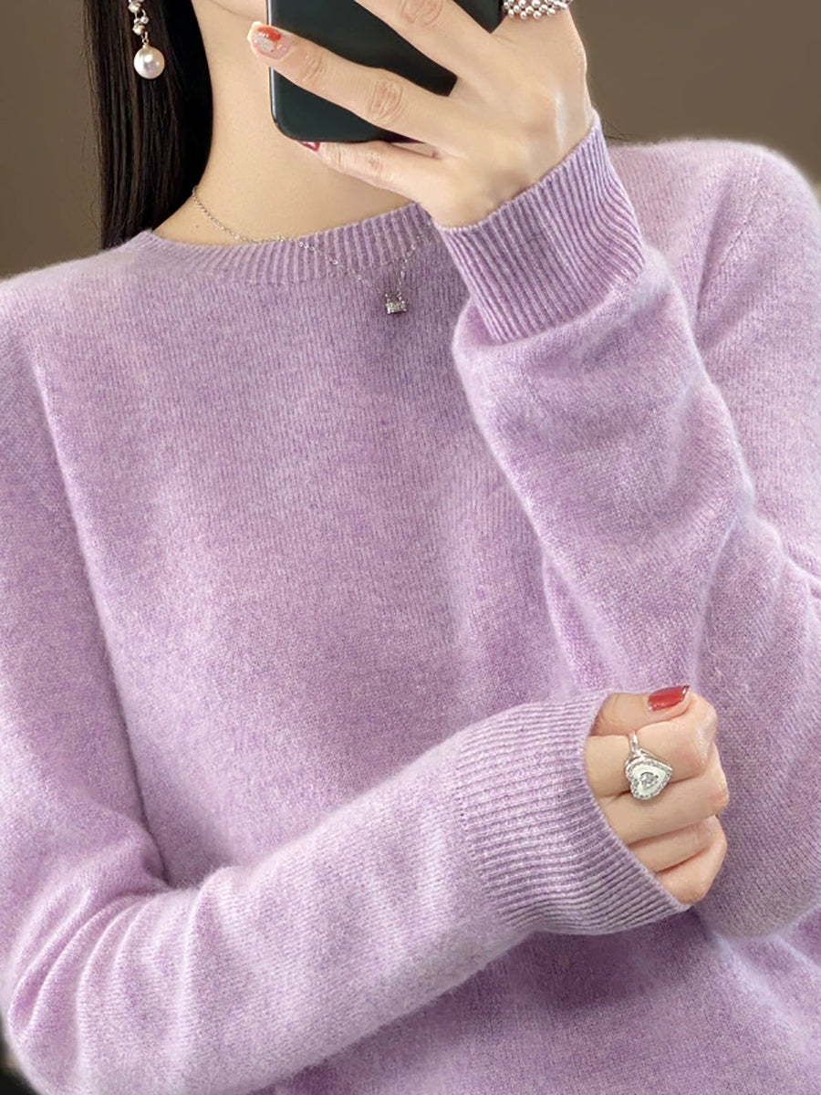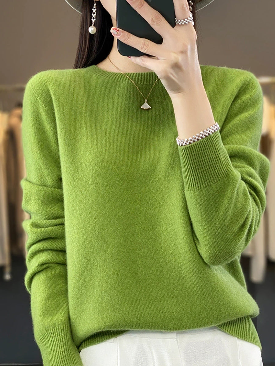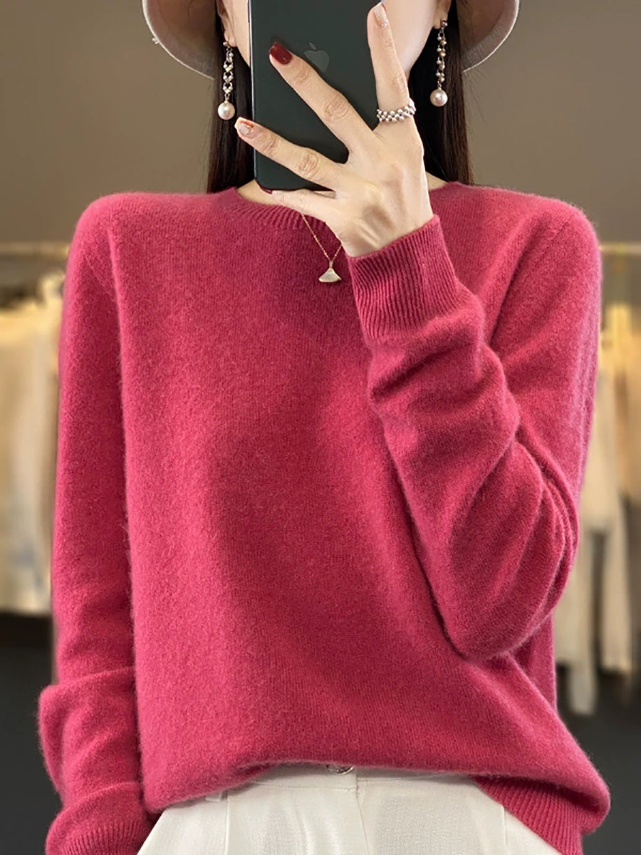 Pull en maille uni à col rond pour femme, style décontracté d'hiver