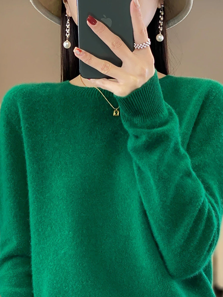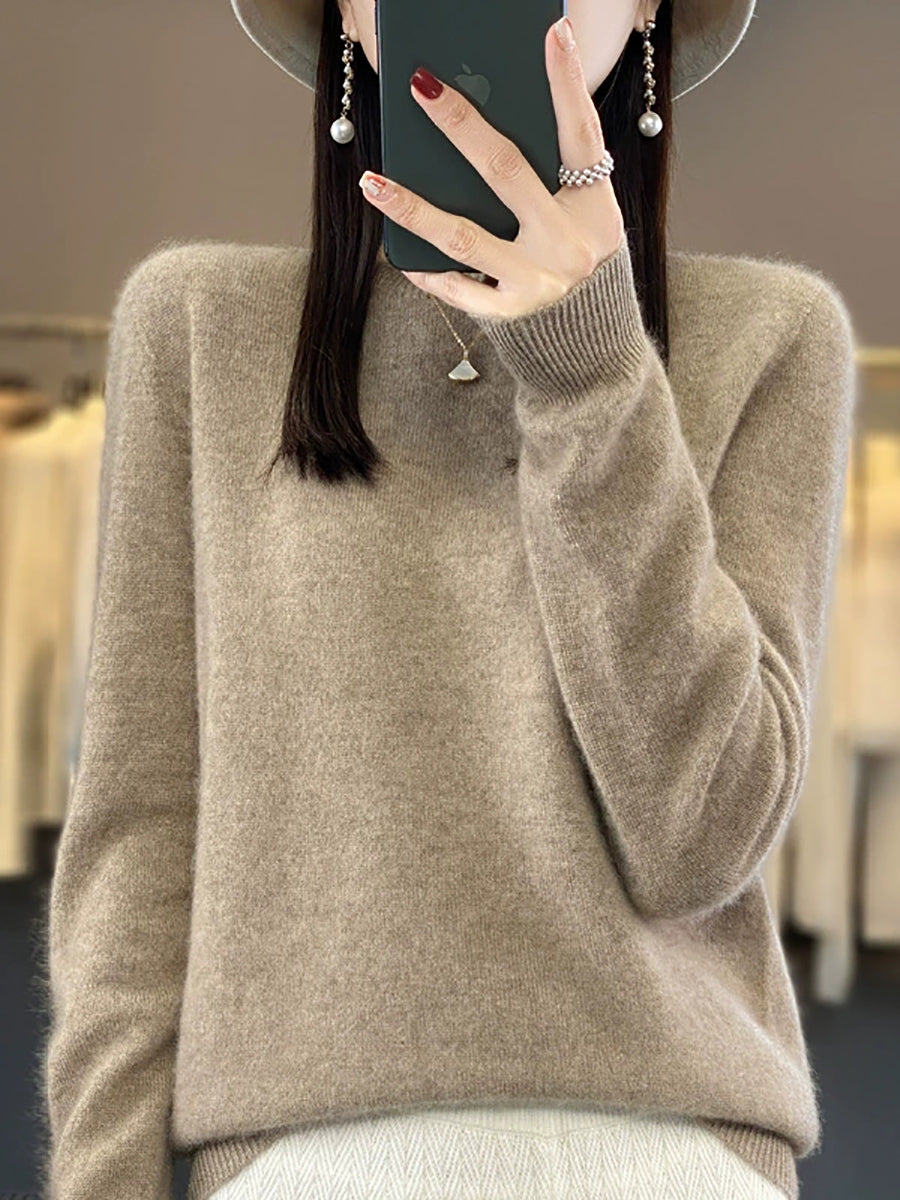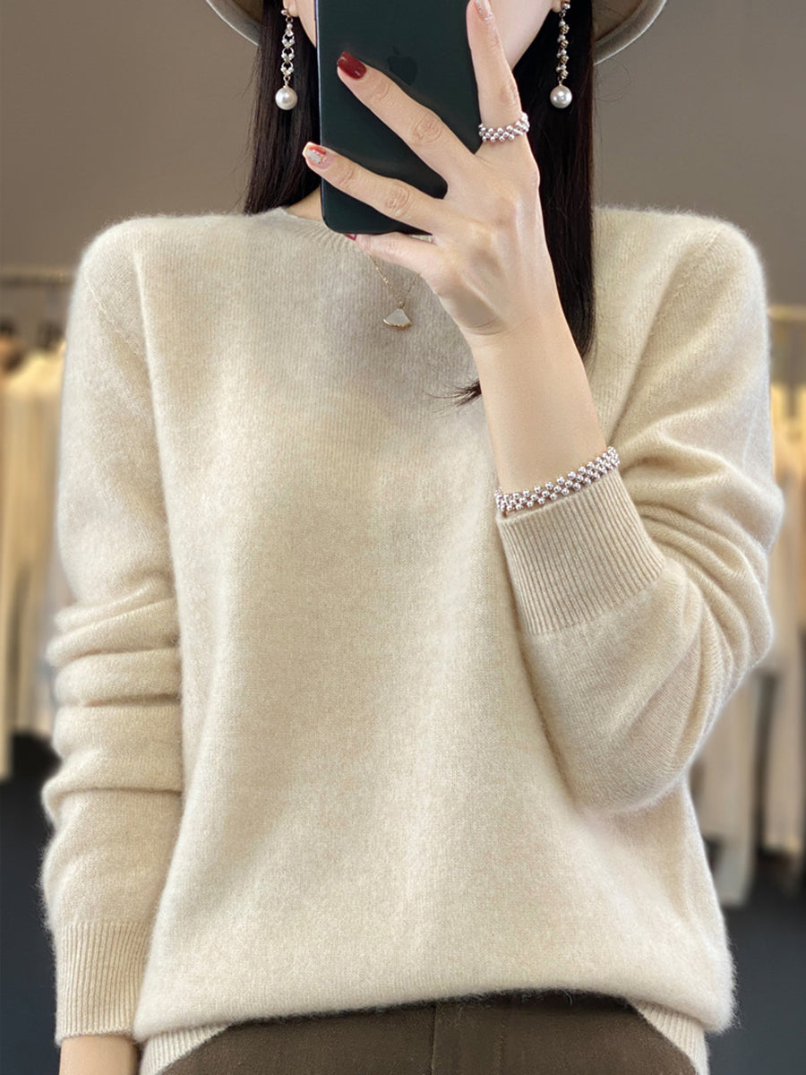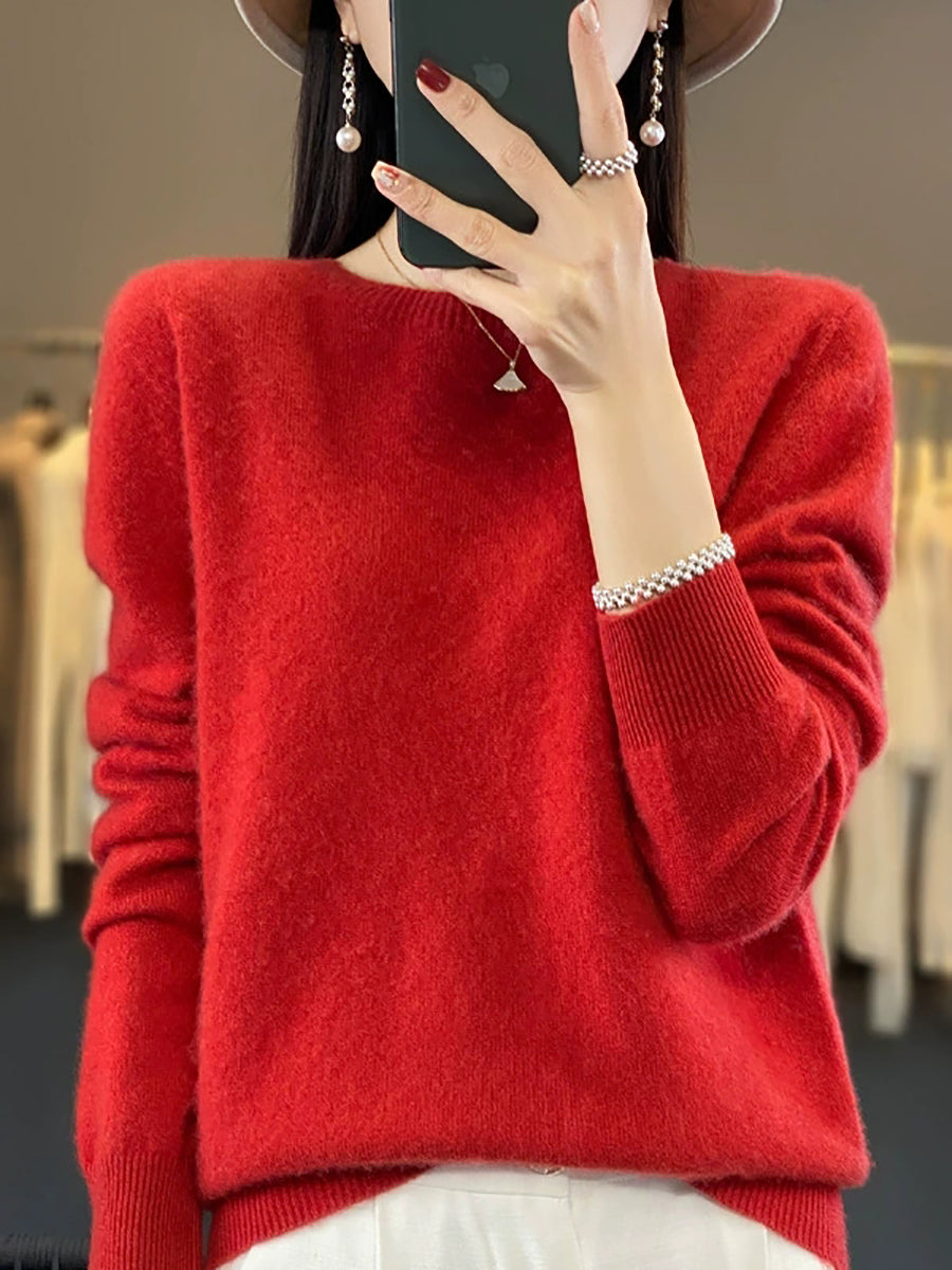 Pull en maille uni à col rond pour femme, style décontracté d'hiver