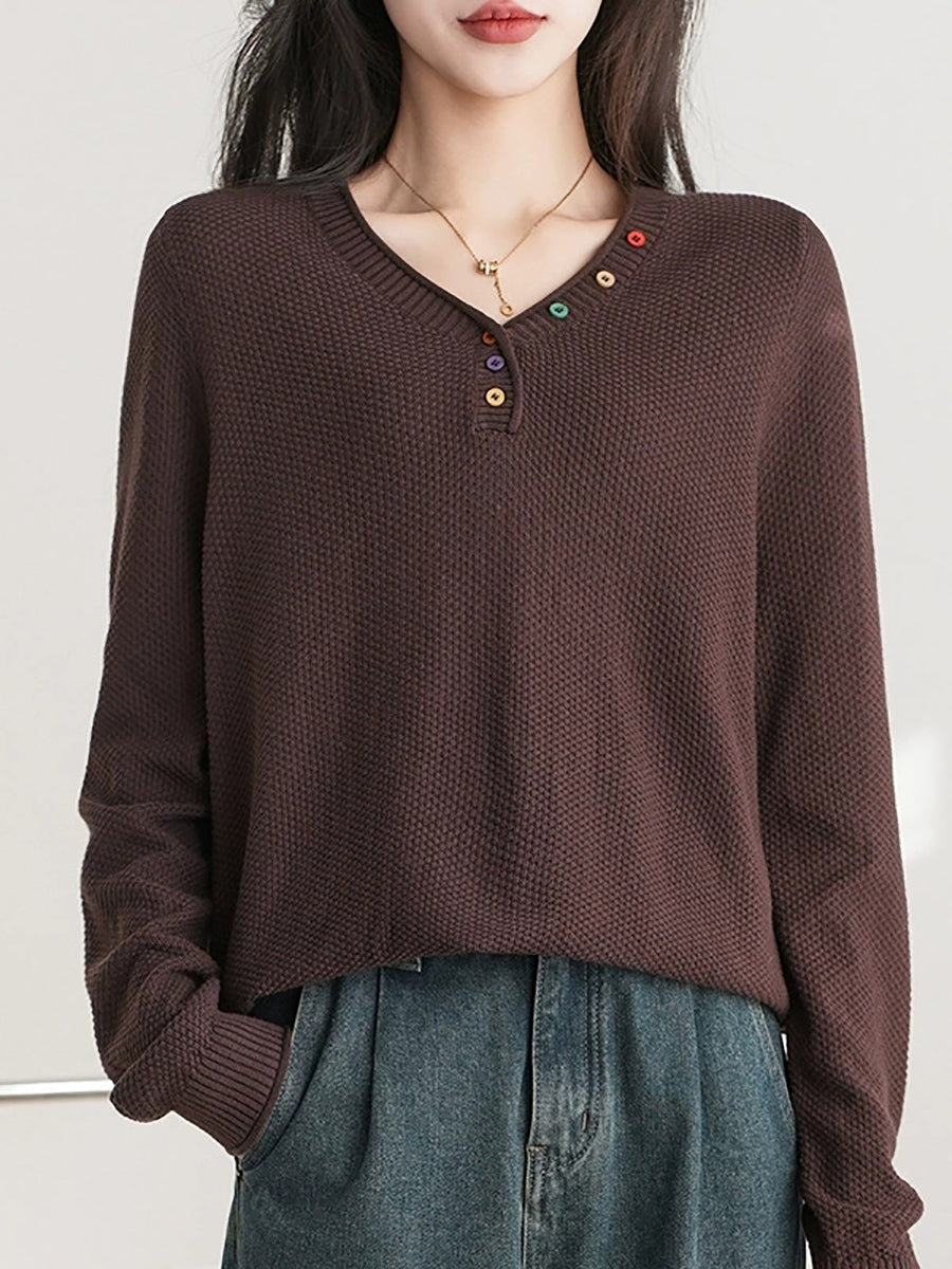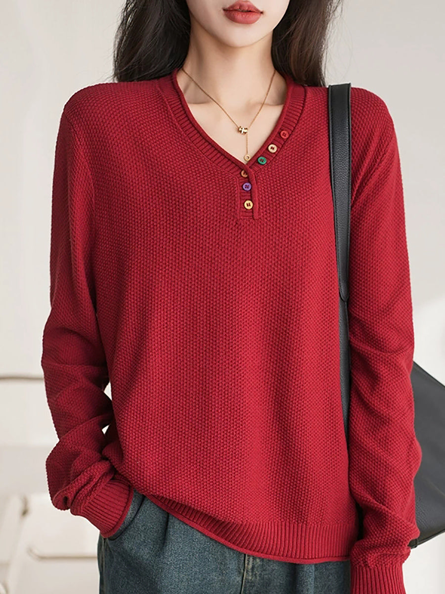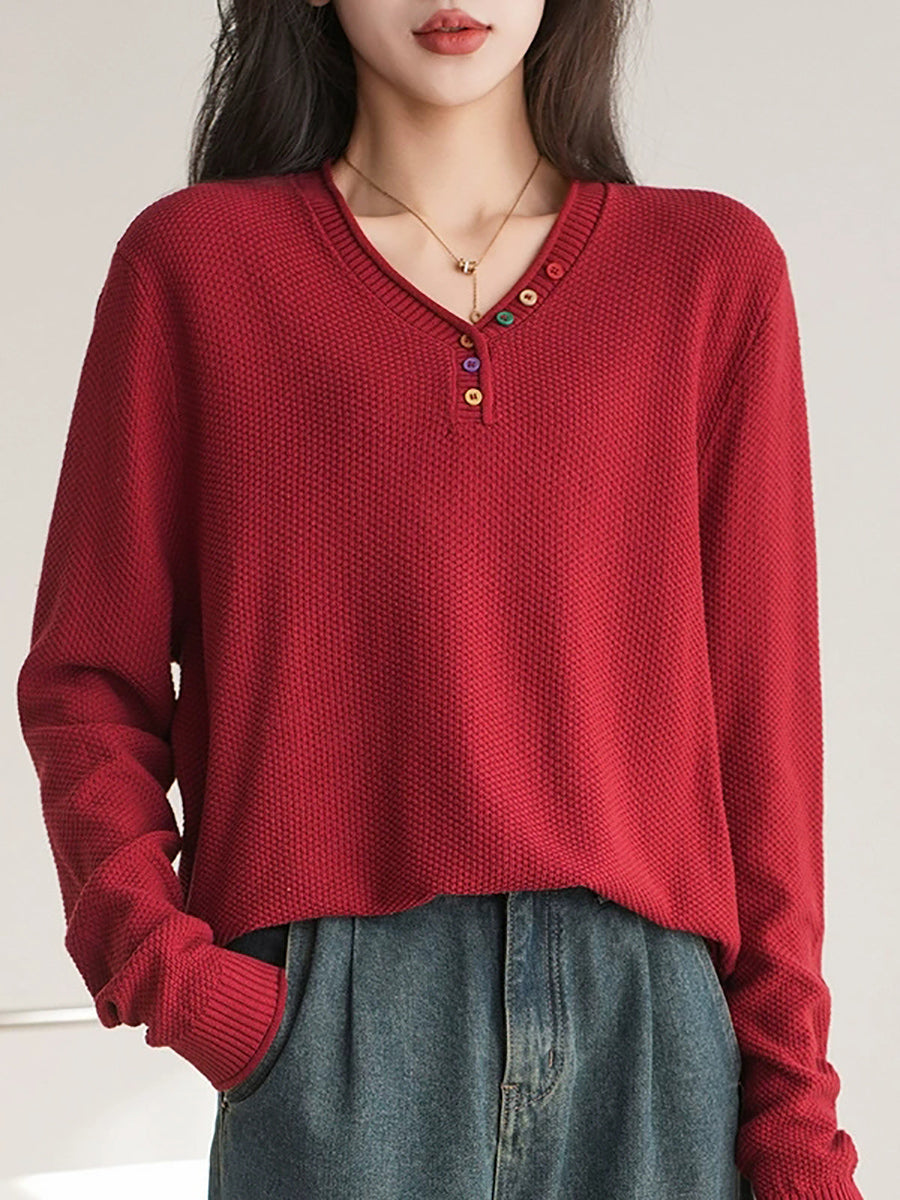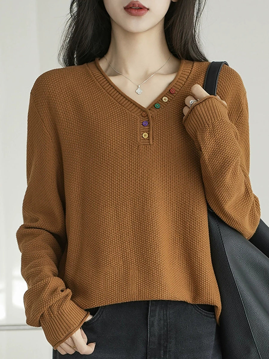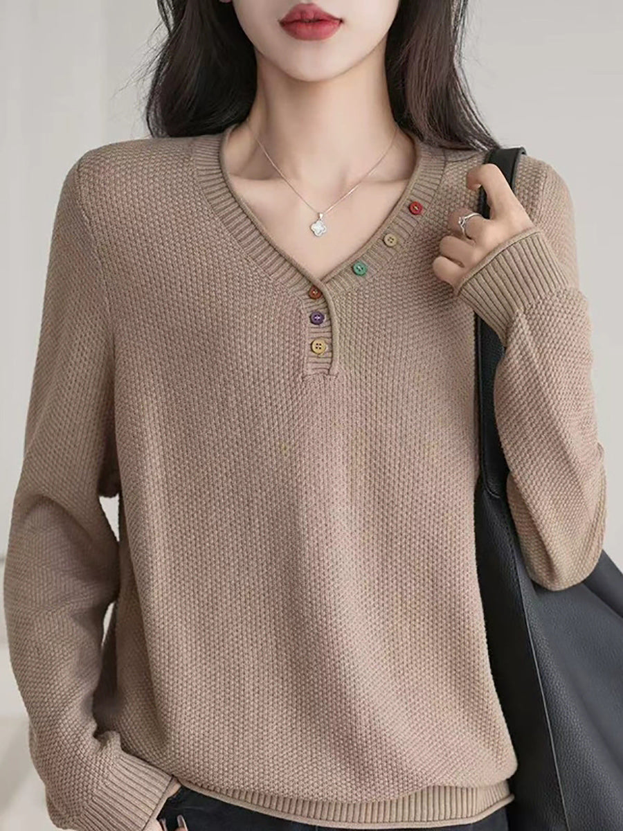 Pull en maille à col V décontracté pour femme, idéal pour l'hiver