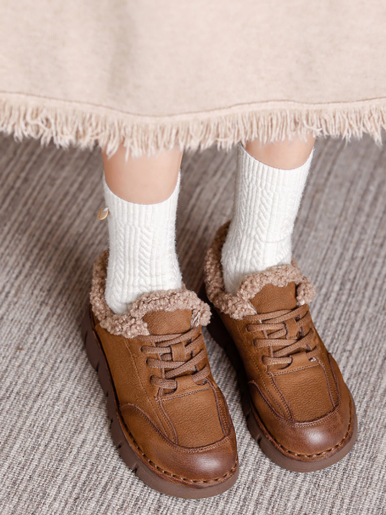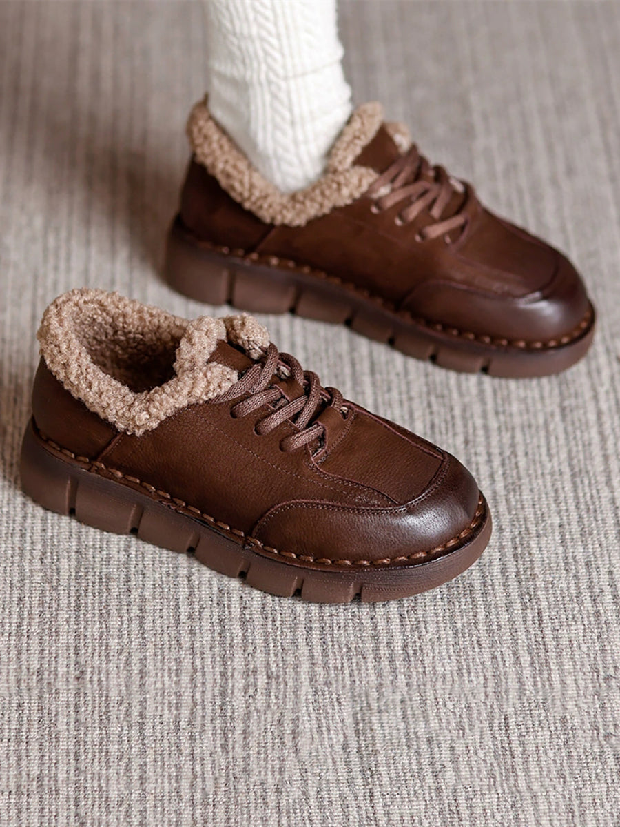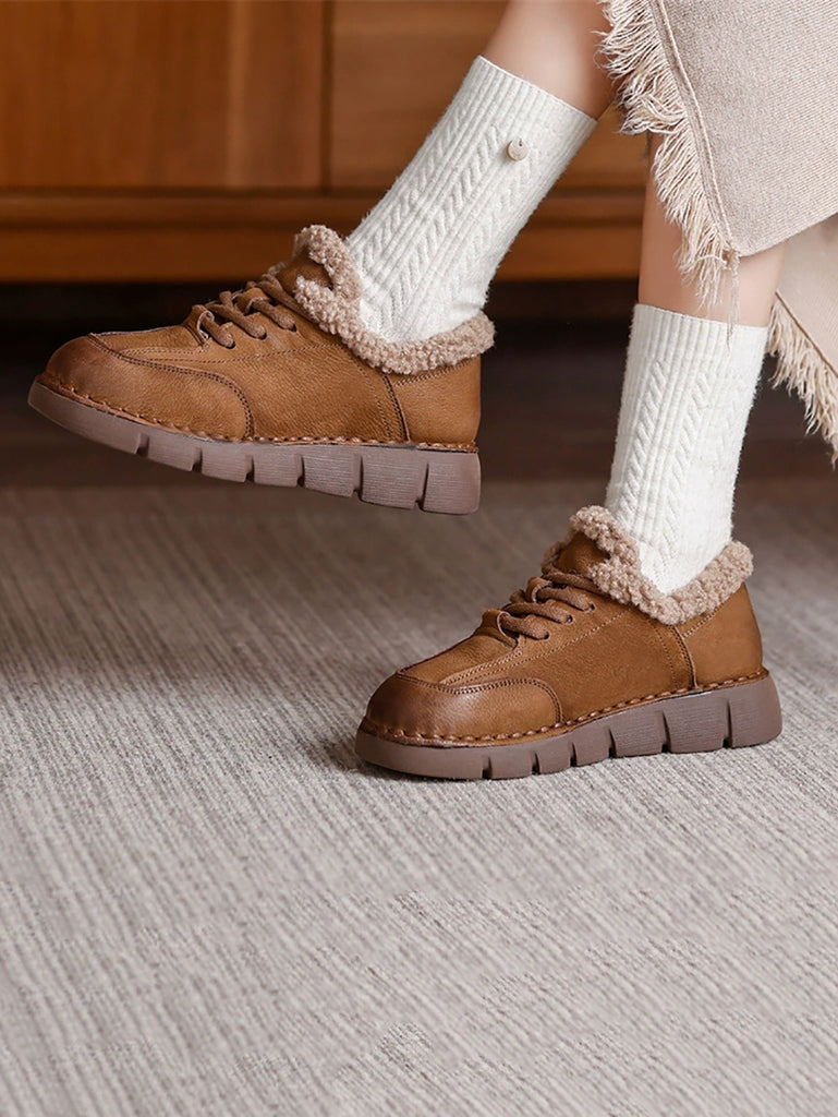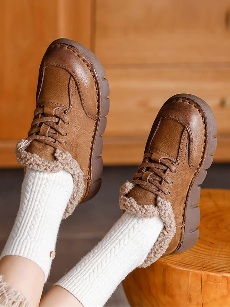 Chaussures à plateforme doublées en polaire et cuir véritable pour femmes, idéales pour l'hiver