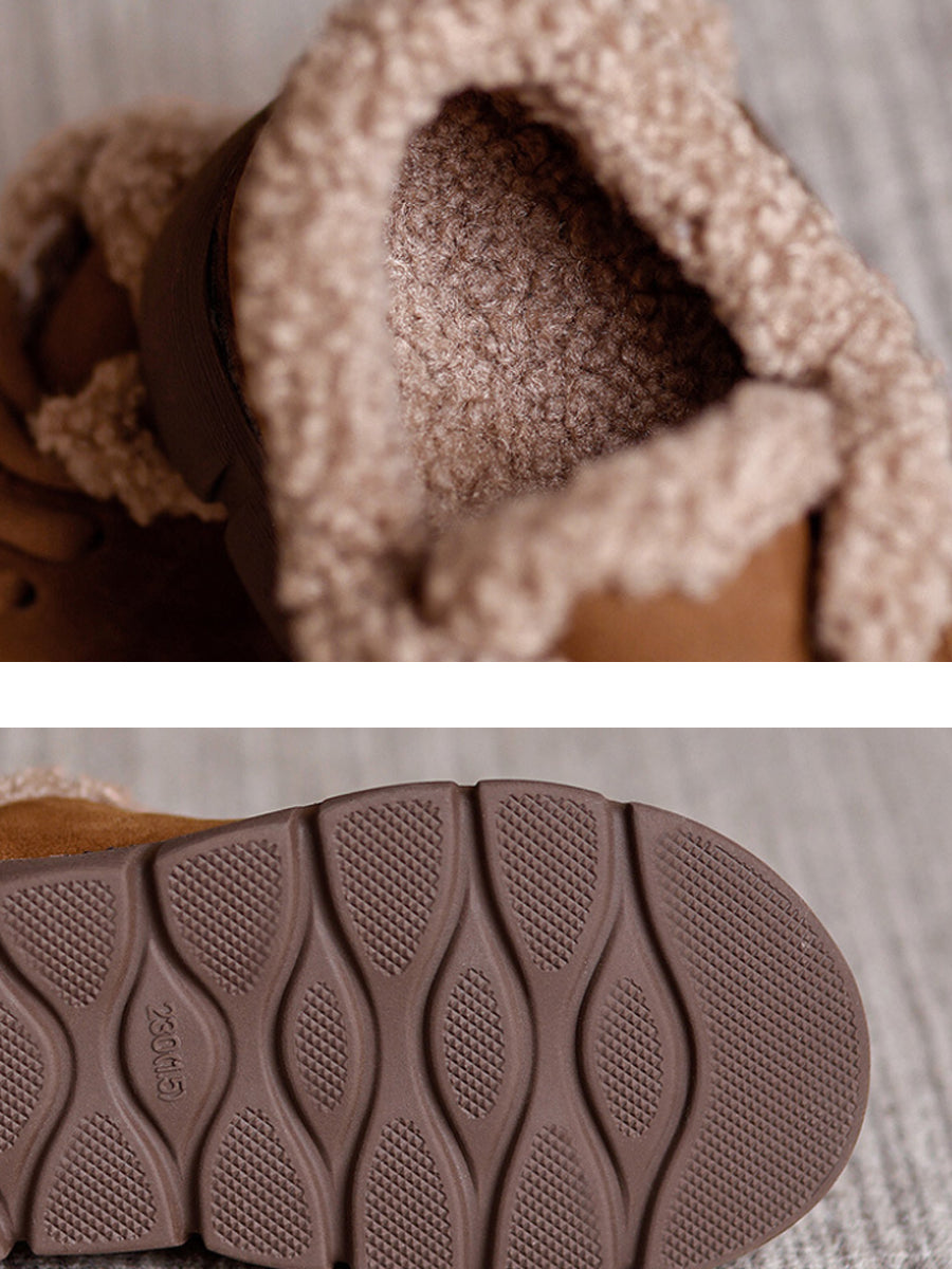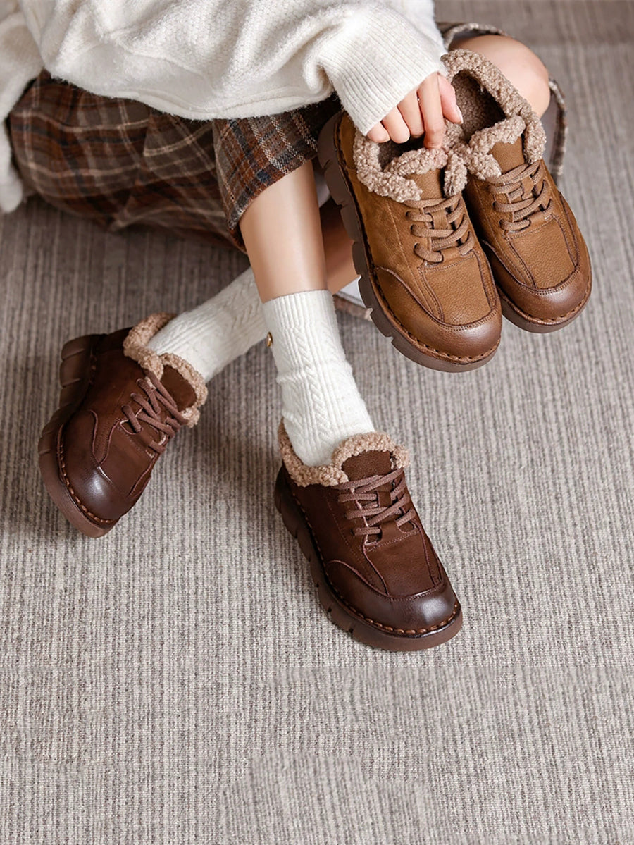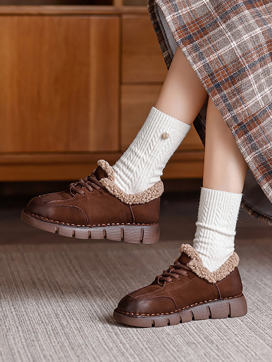 Chaussures à plateforme doublées en polaire et cuir véritable pour femmes, idéales pour l'hiver