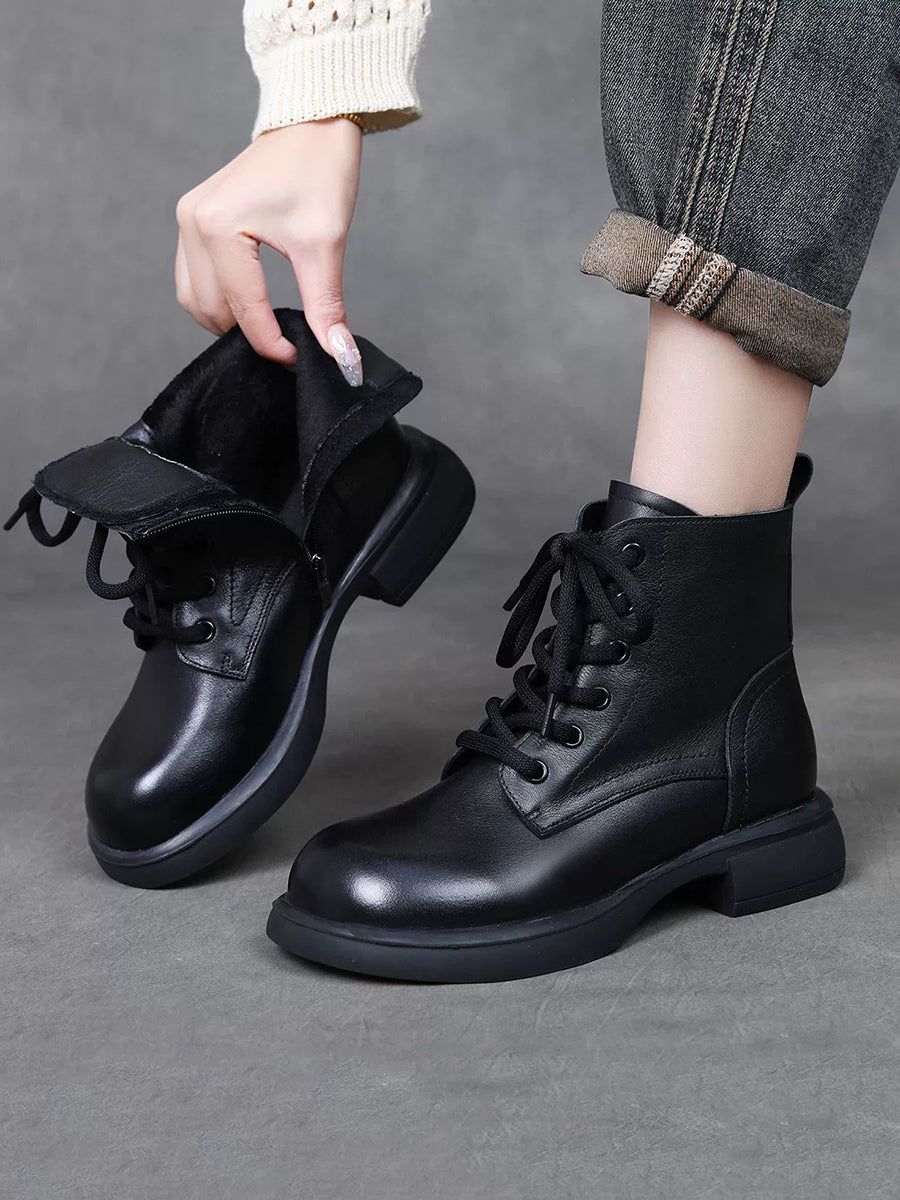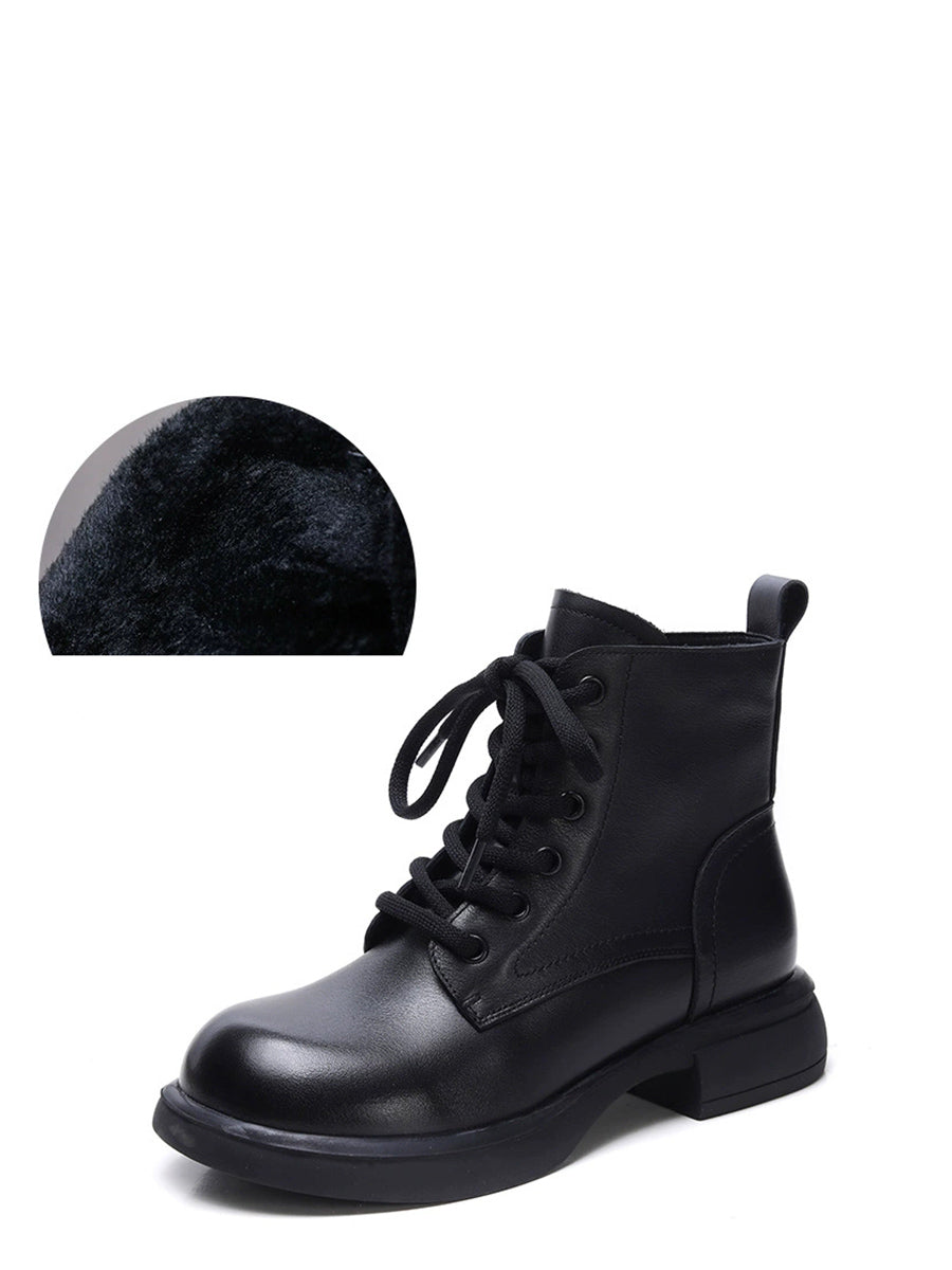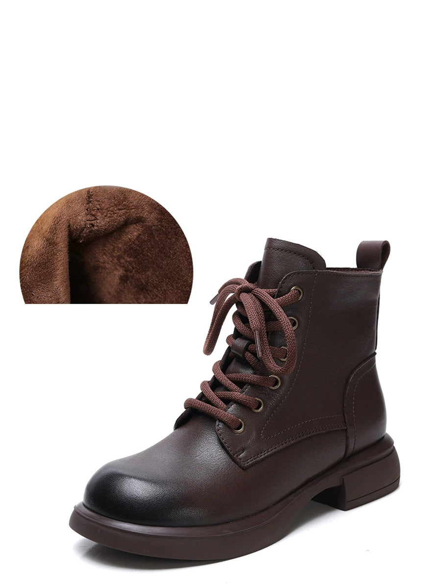 Bottes Martin d'hiver pour femmes en cuir véritable à petit talon