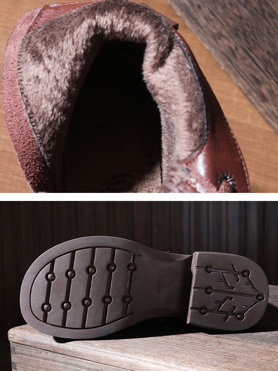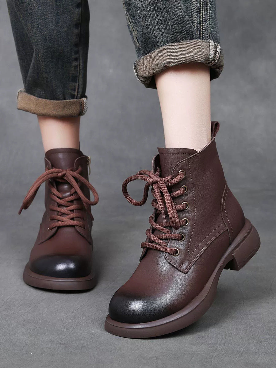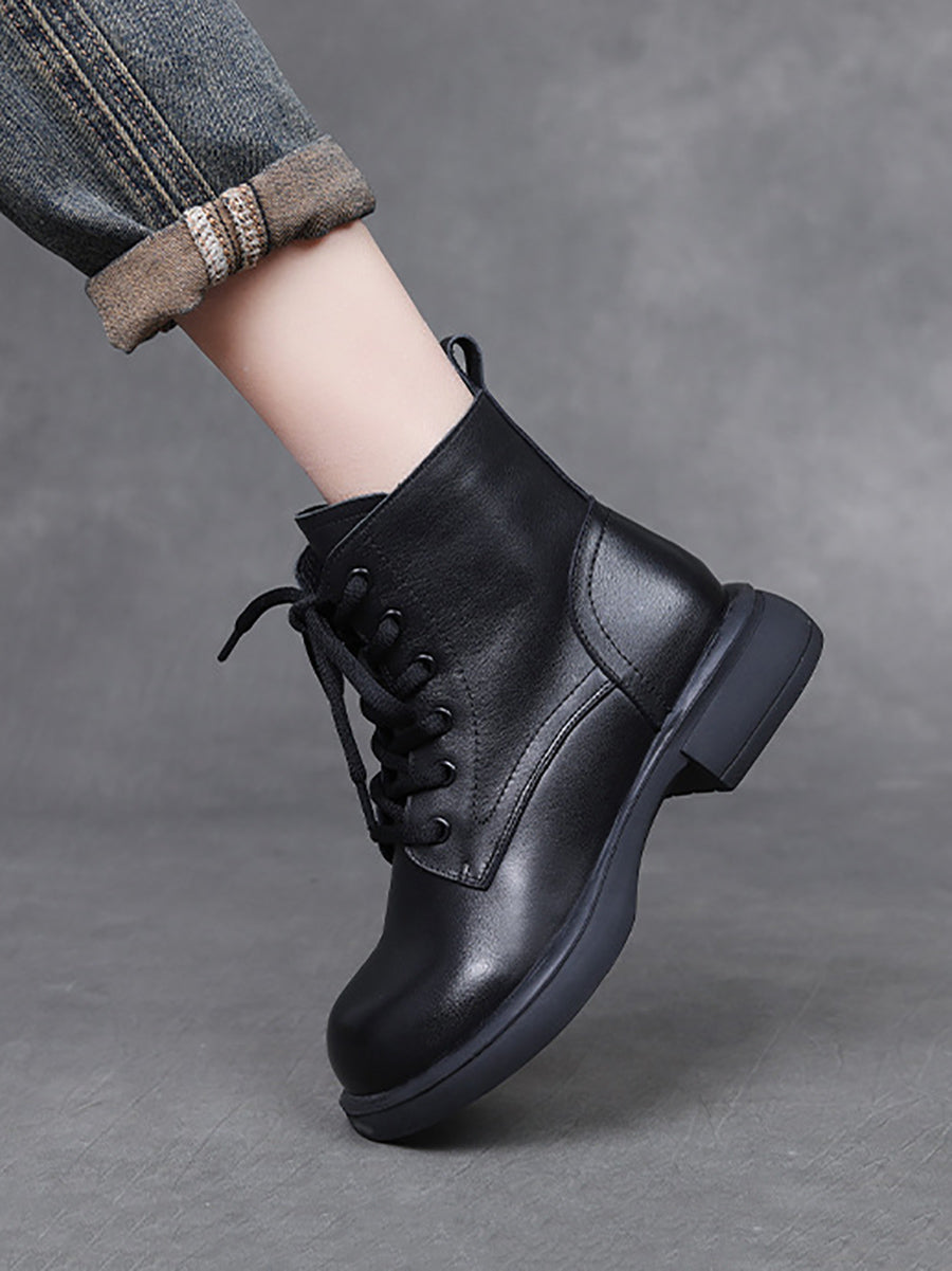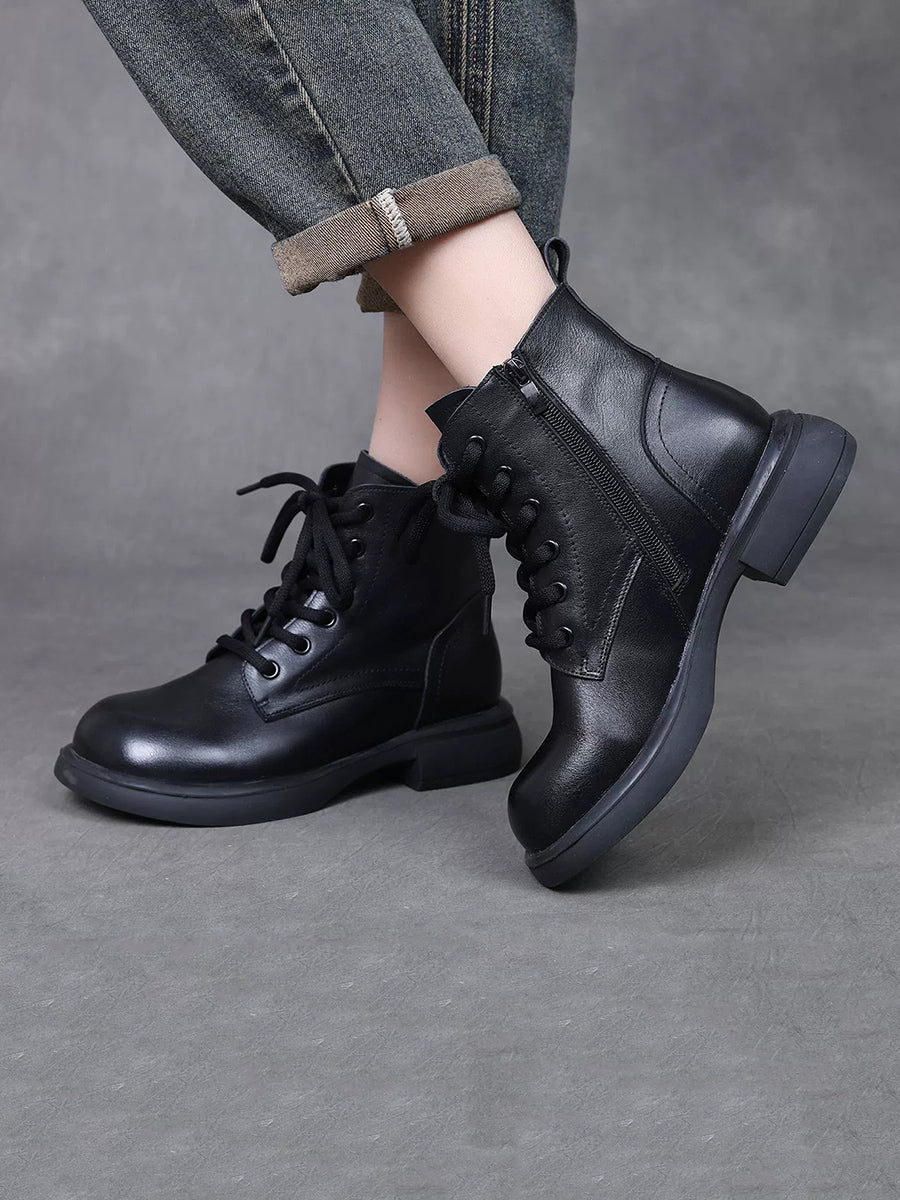 Bottes Martin d'hiver pour femmes en cuir véritable à petit talon