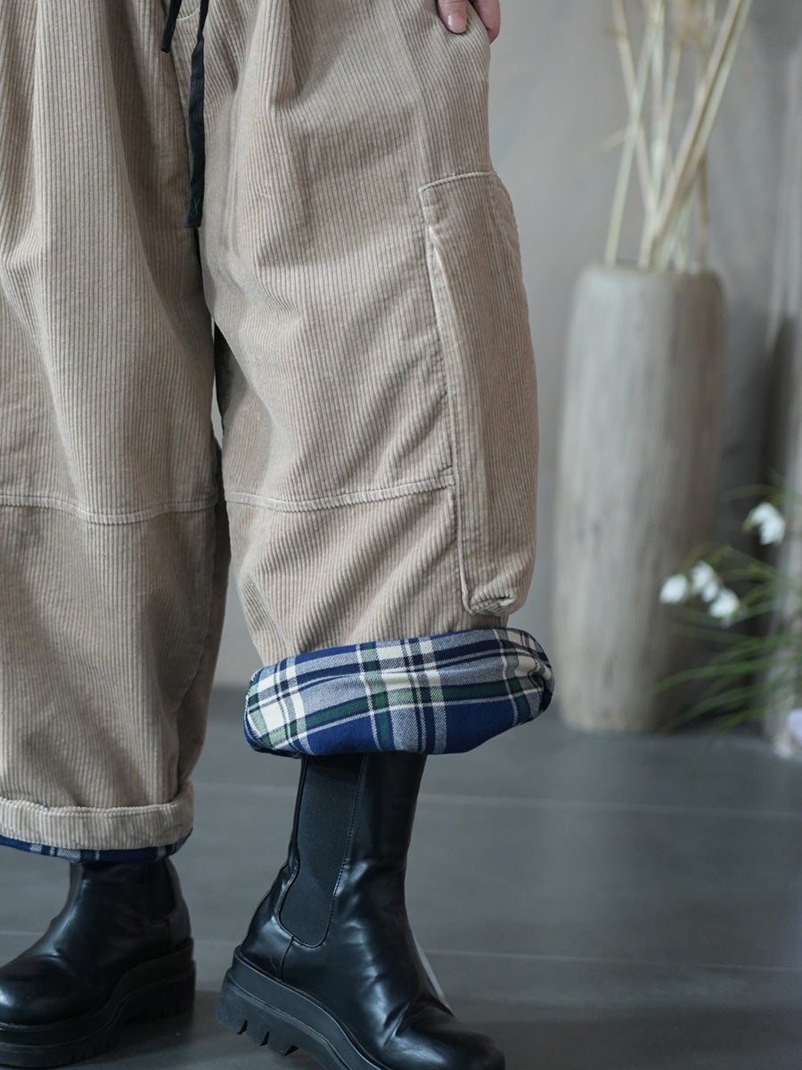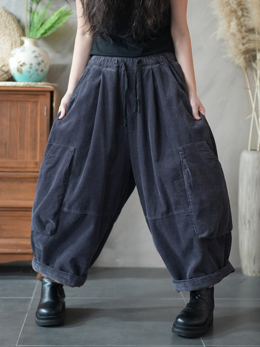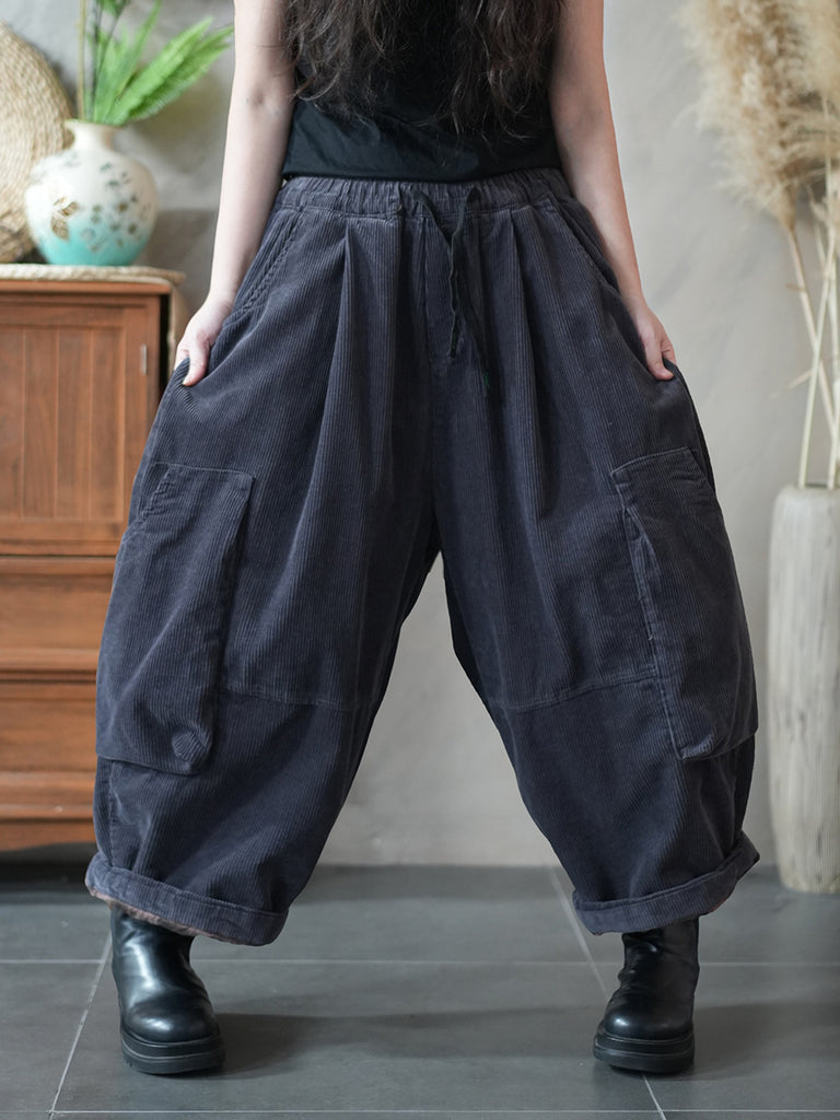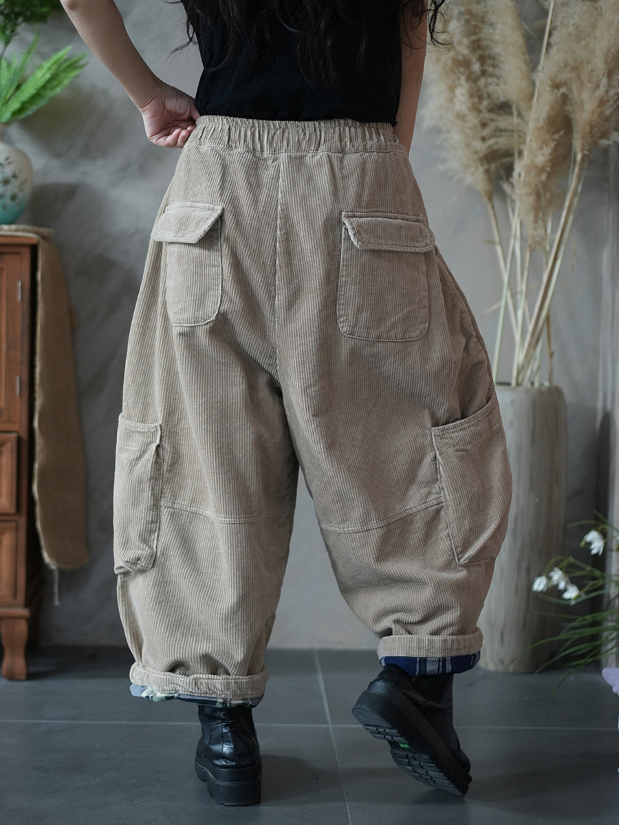 Pantalon harem rembourré en velours côtelé uni pour femme, hiver