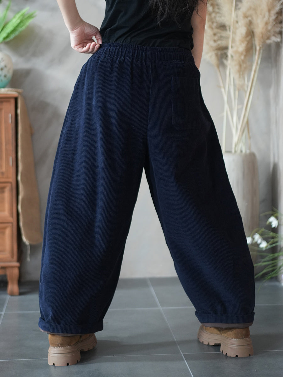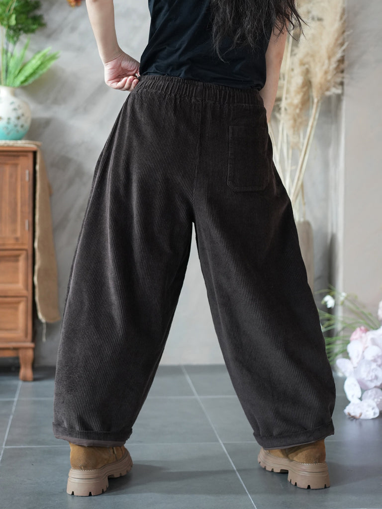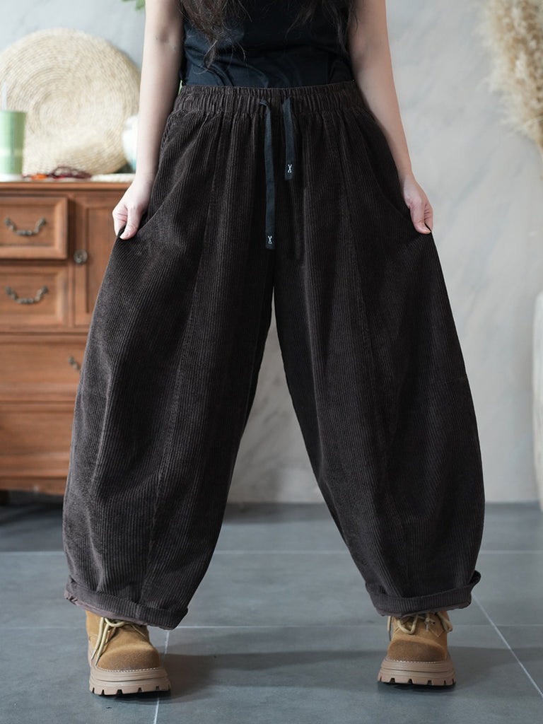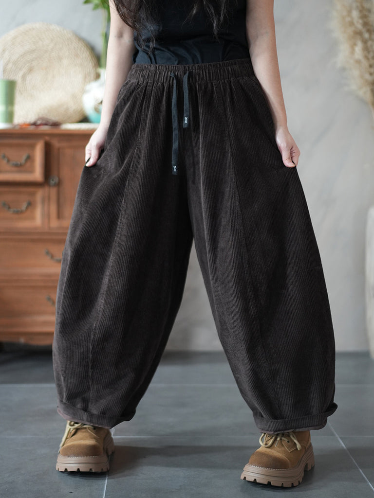 Pantalon harem rétro hiver pour femme en velours côtelé uni