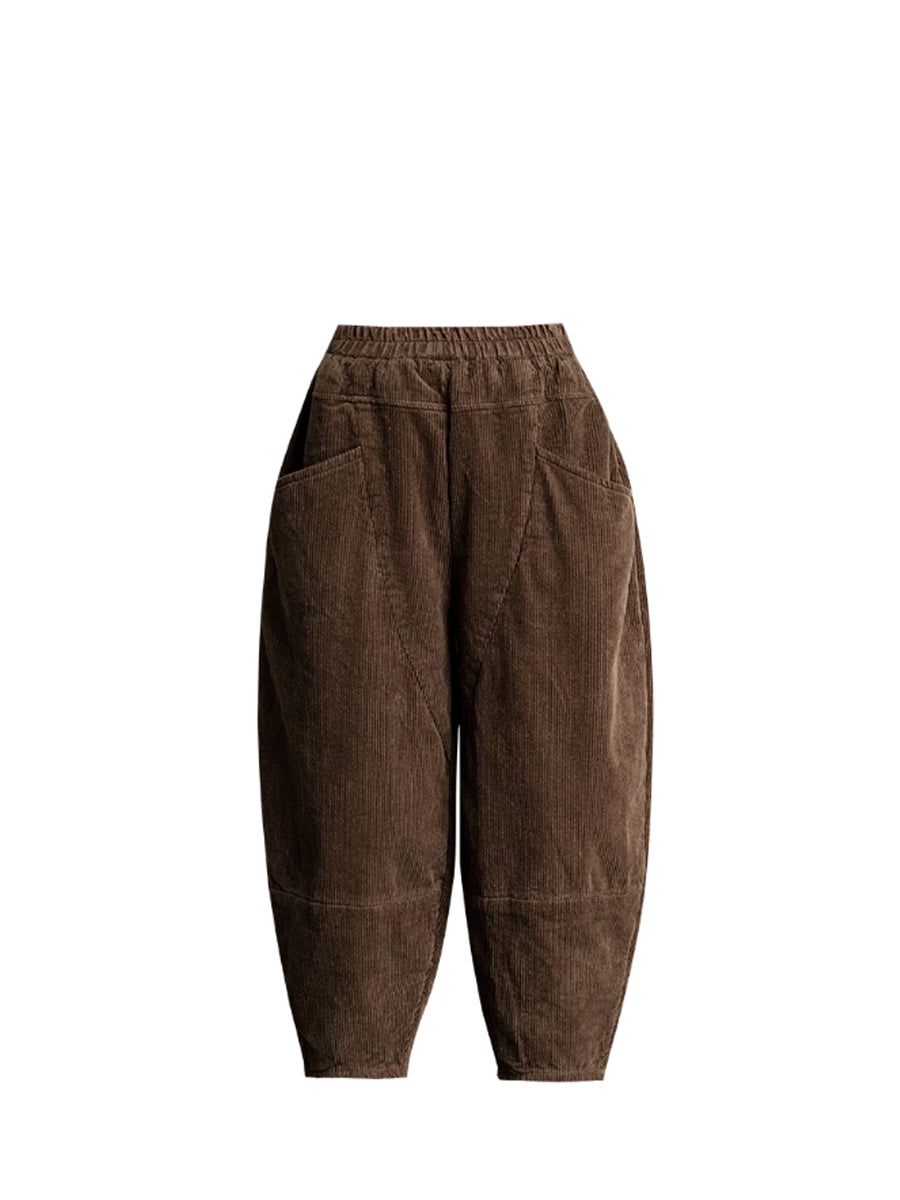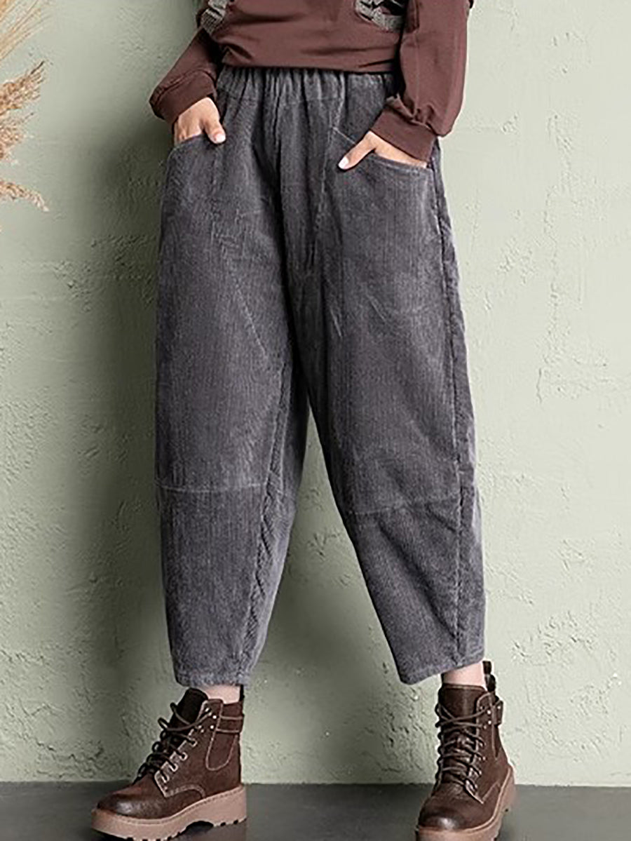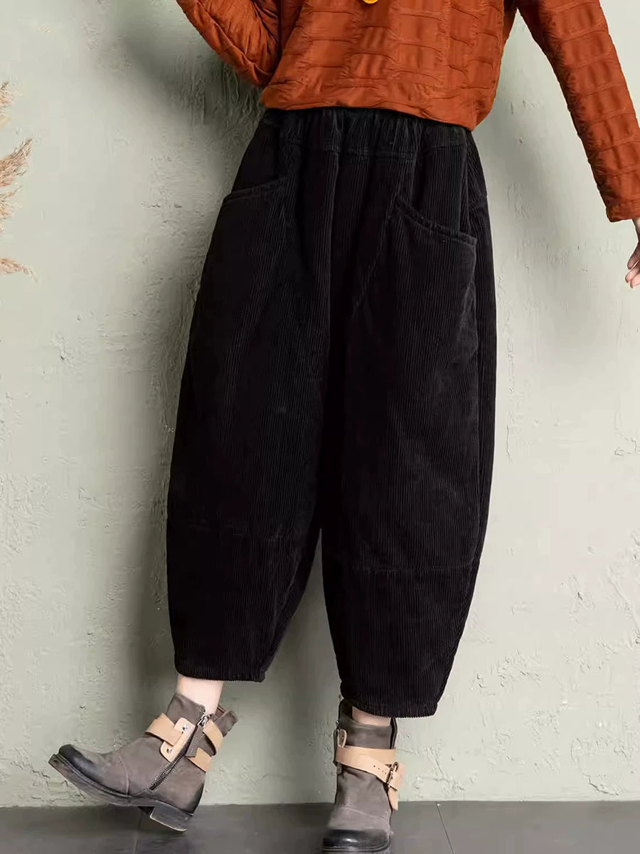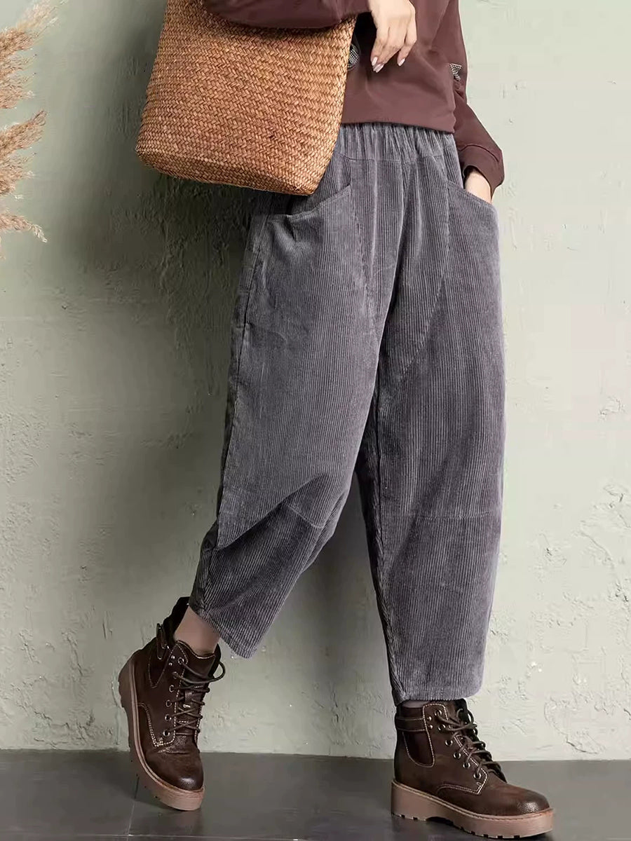 Pantalon harem rétro hiver pour femme en velours côtelé uni