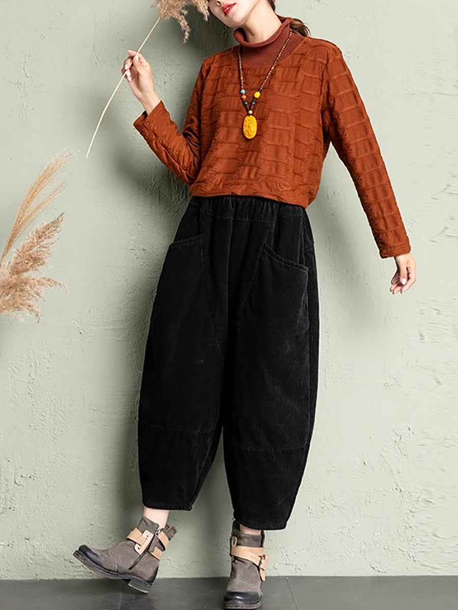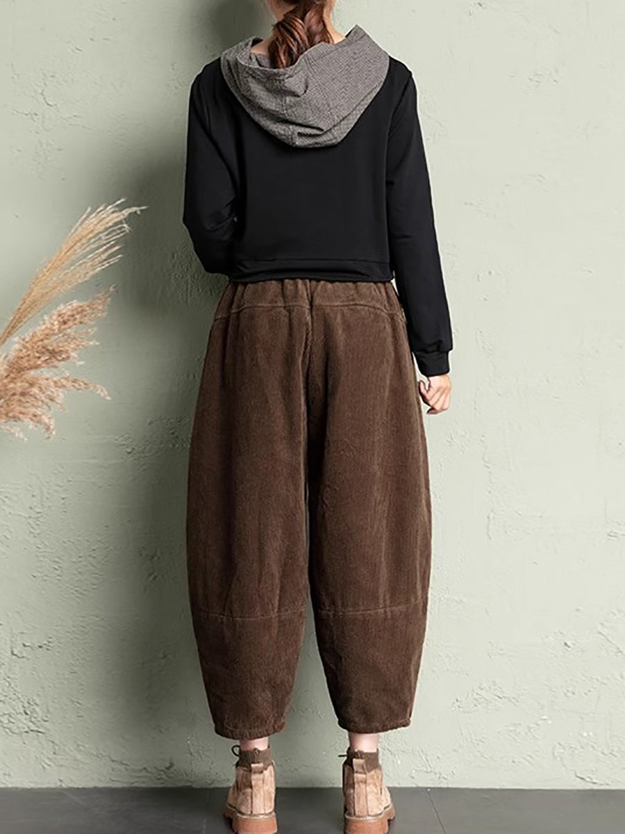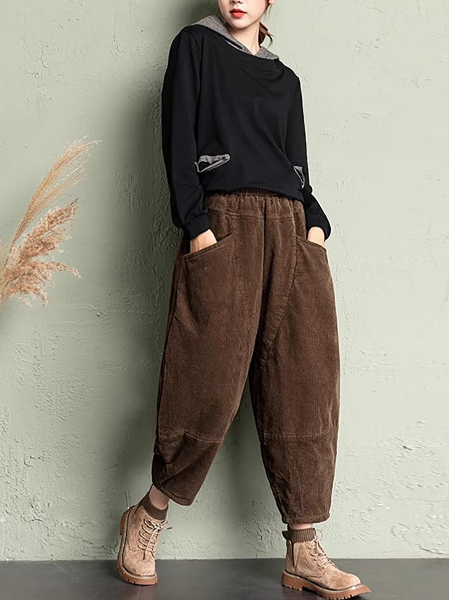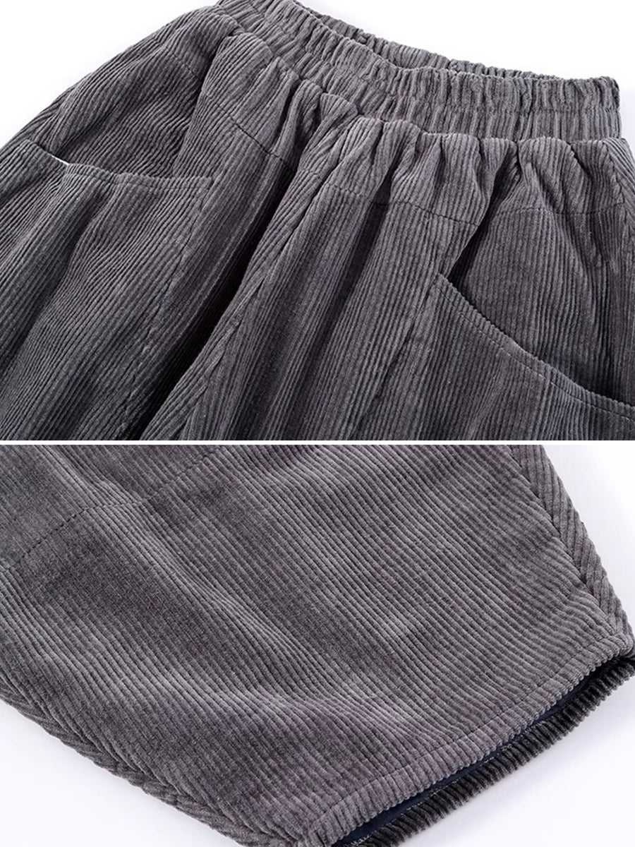 Pantalon harem rétro hiver pour femme en velours côtelé uni