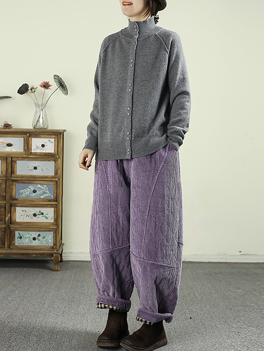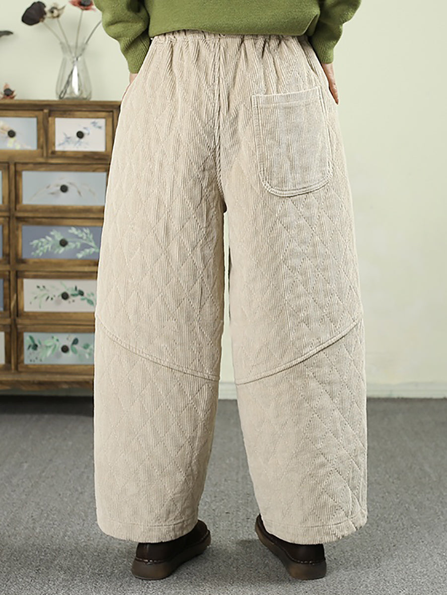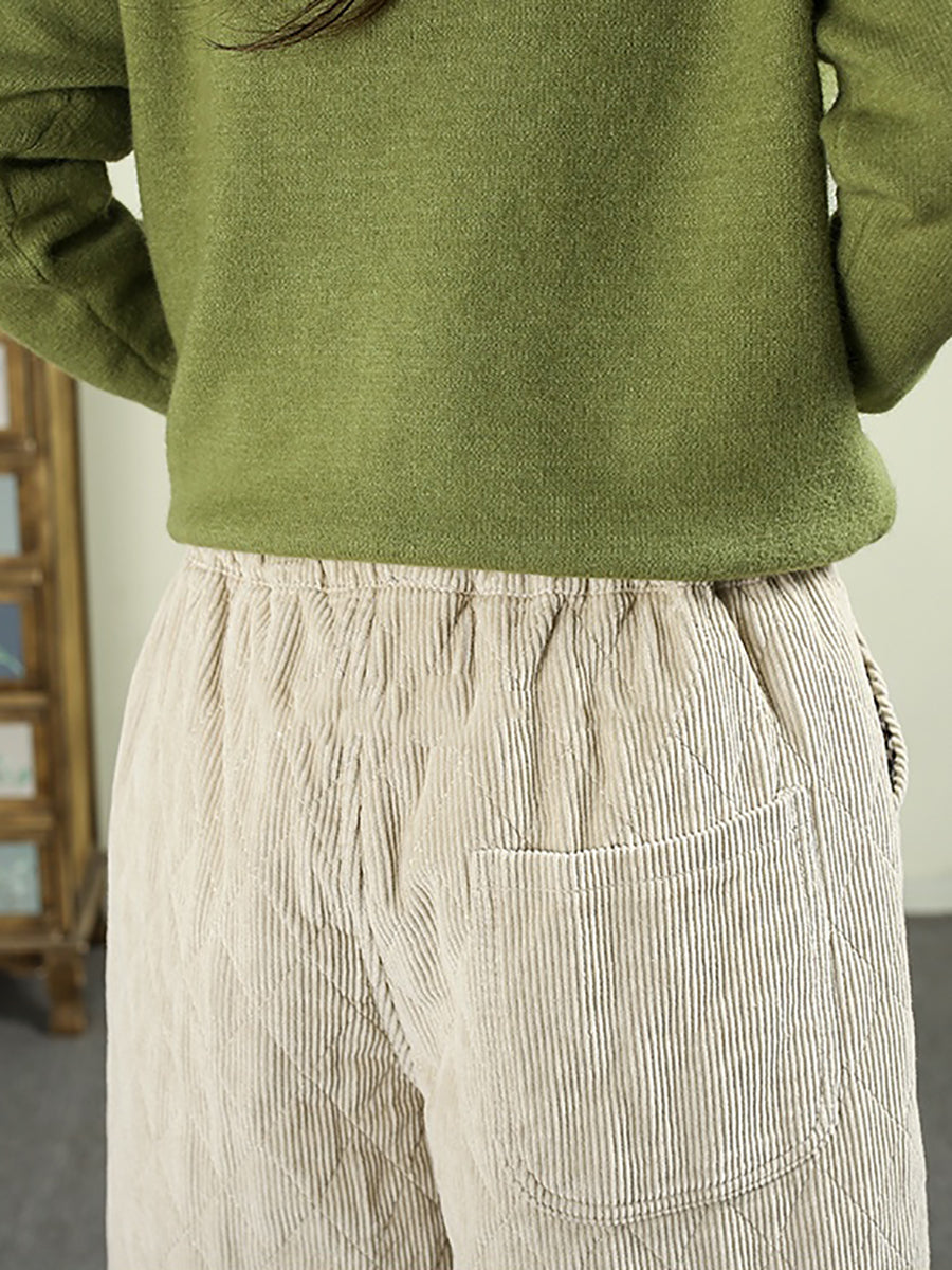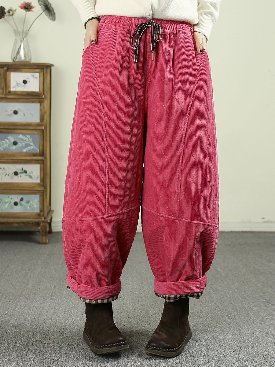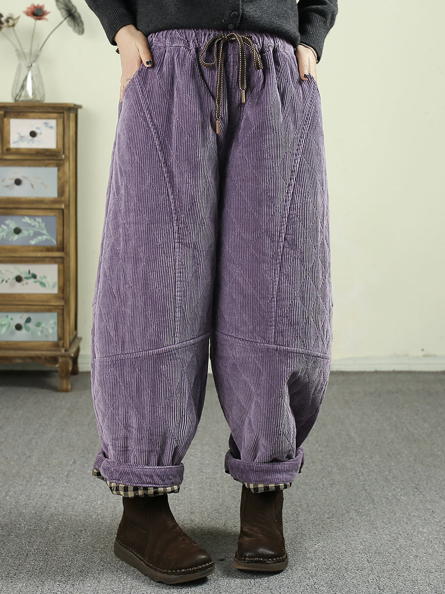 Pantalon harem rembourré en velours côtelé uni rétro hiver pour femme
