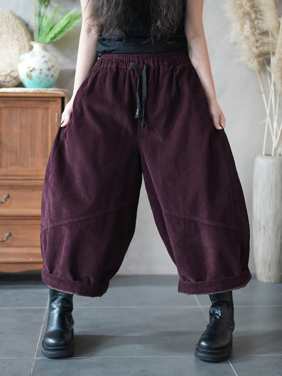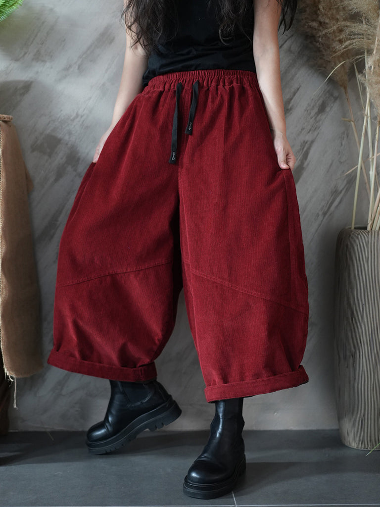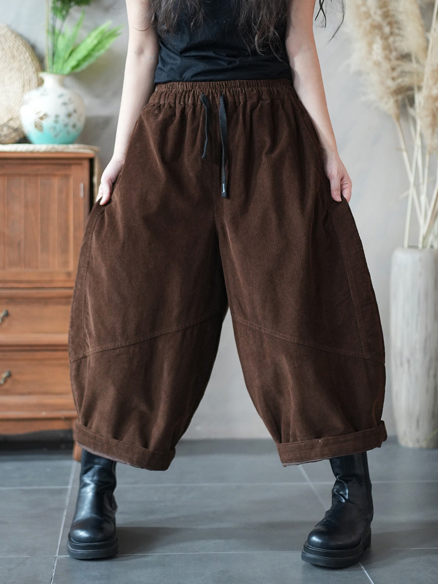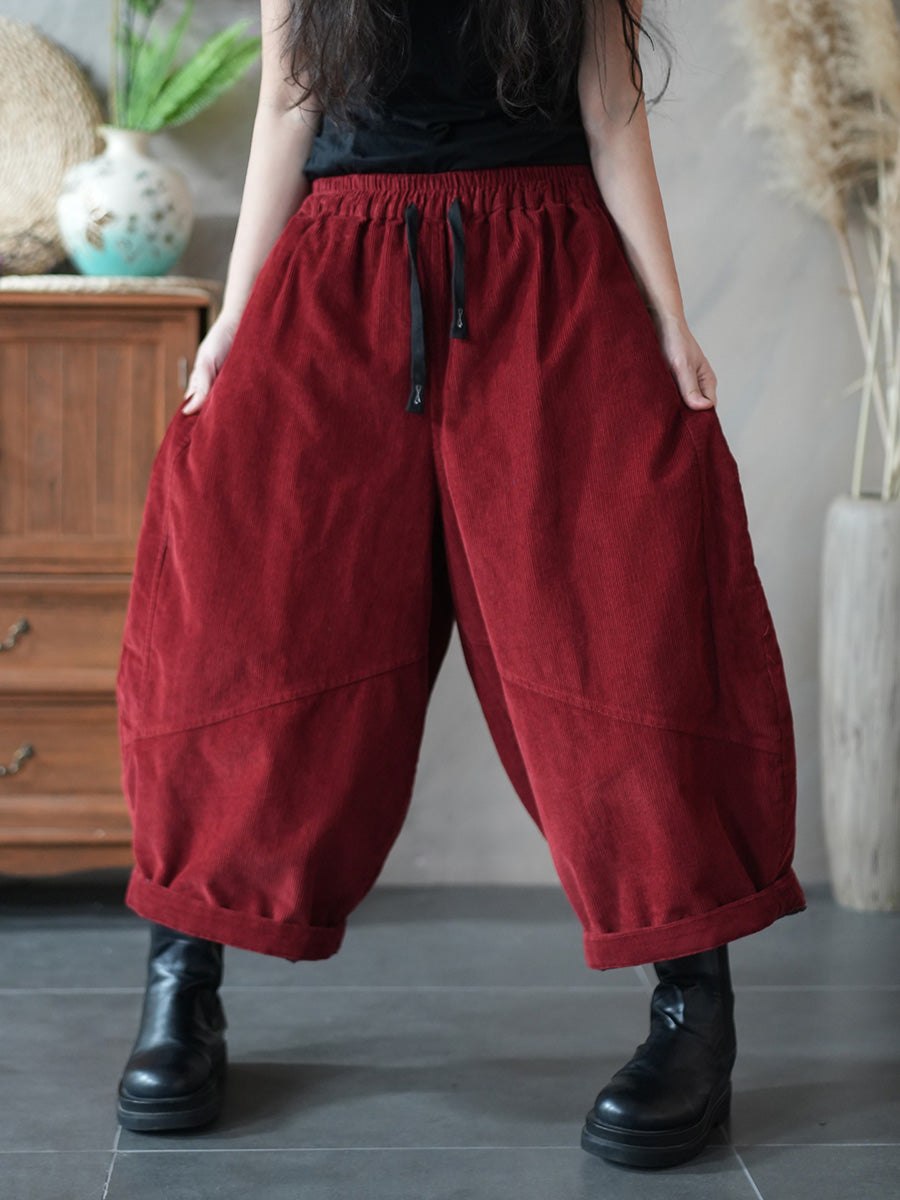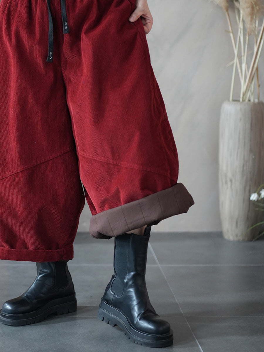 Pantalon large en velours côtelé uni rétro hiver pour femme