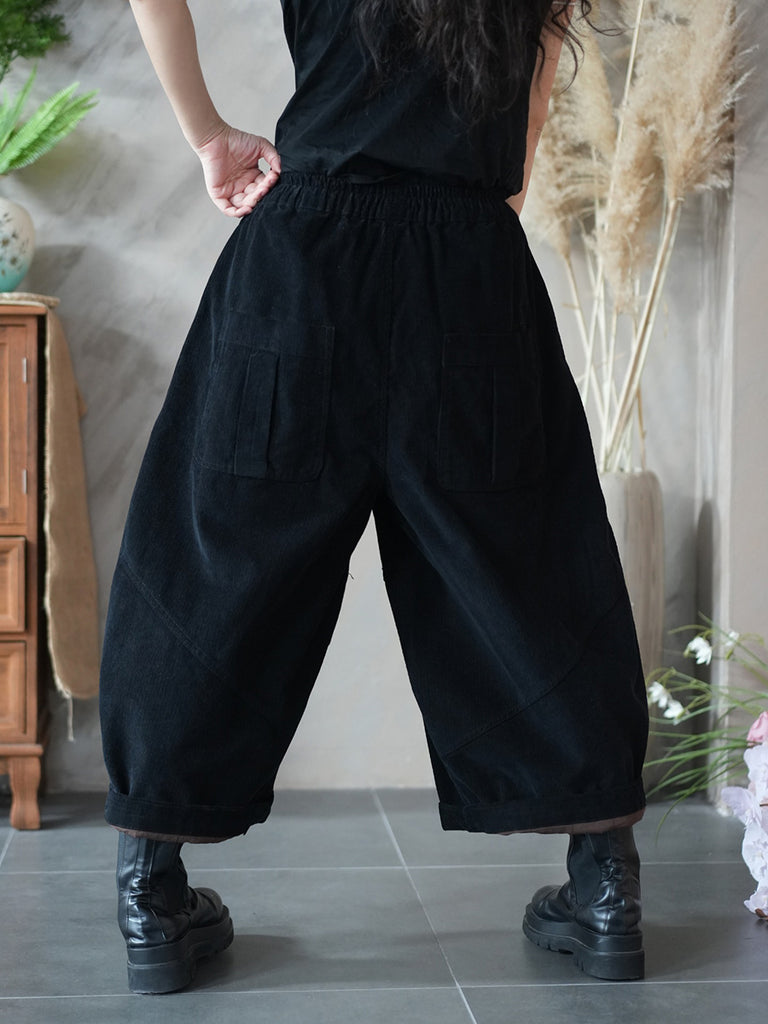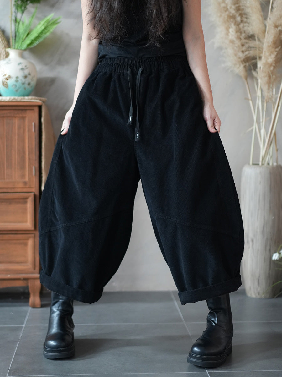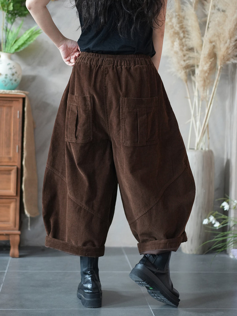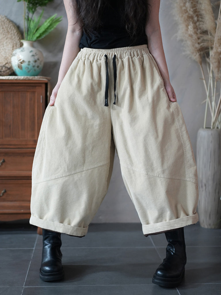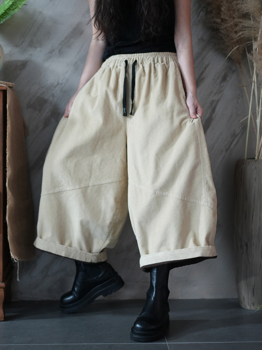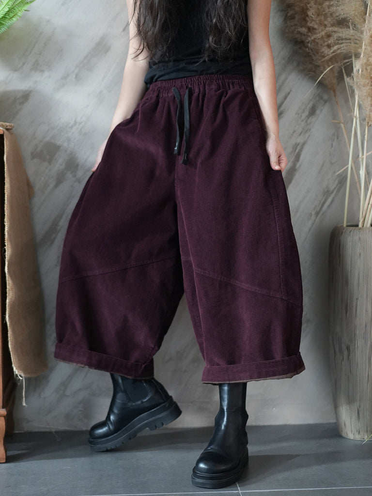 Pantalon large en velours côtelé uni rétro hiver pour femme