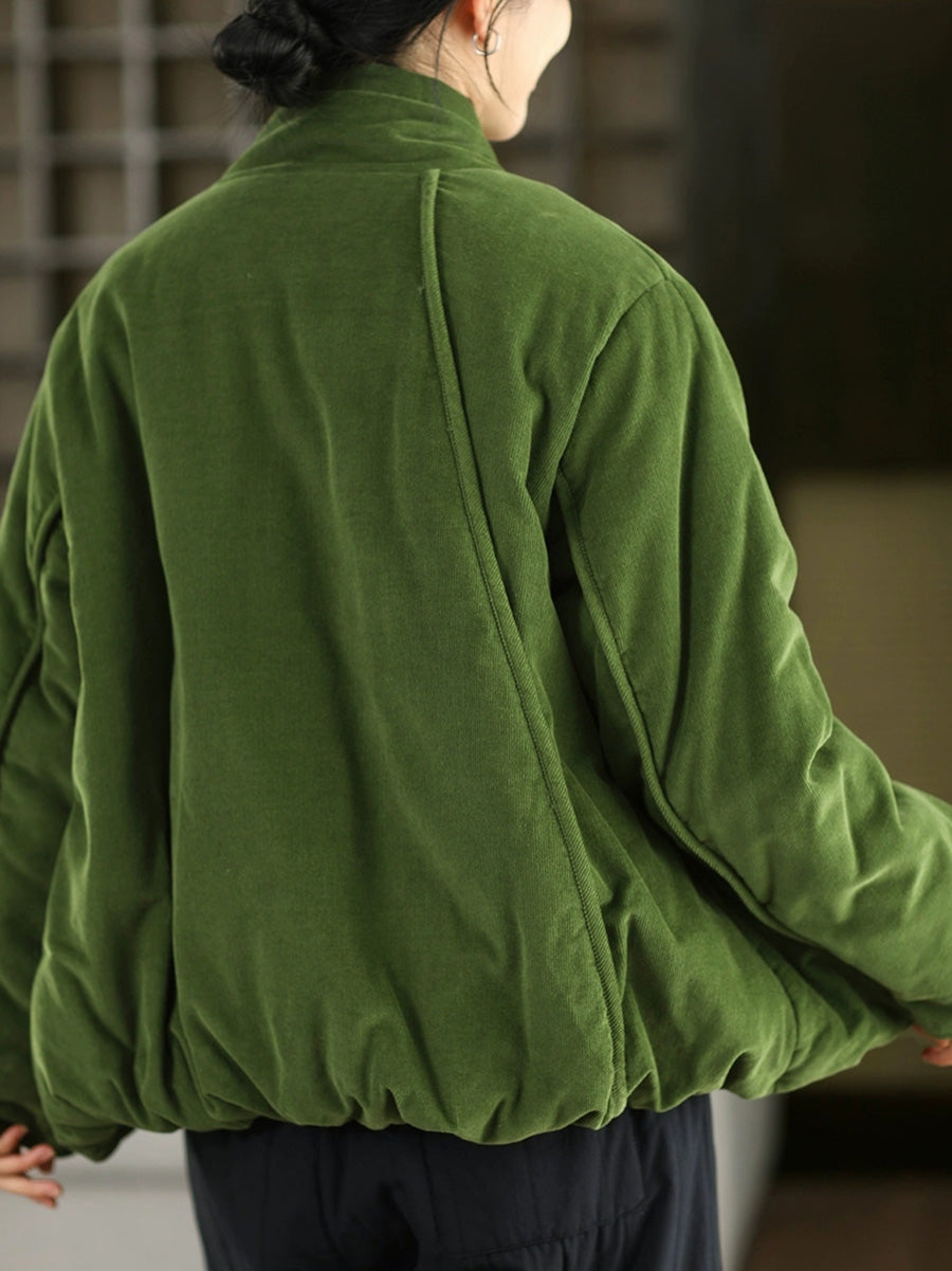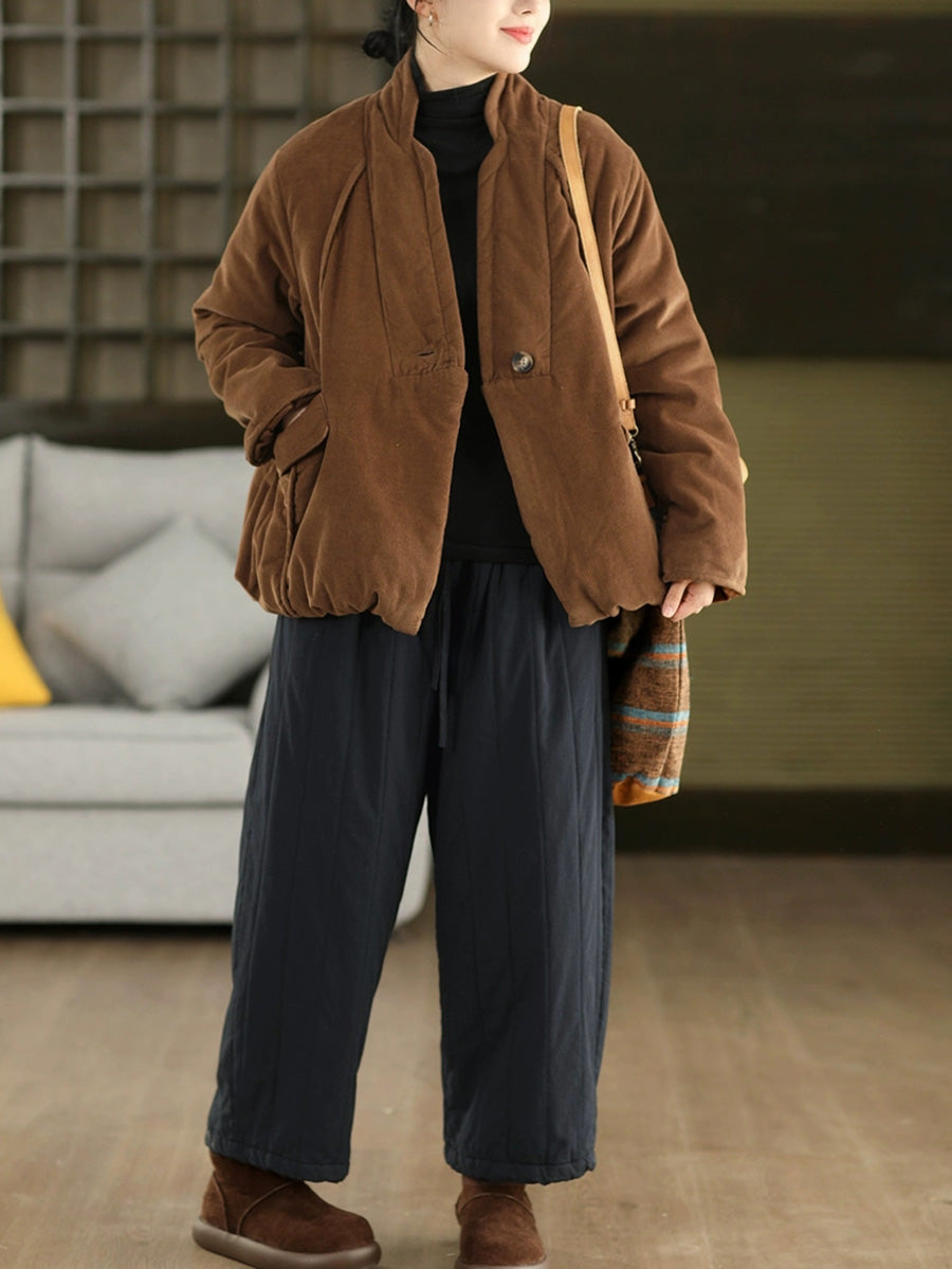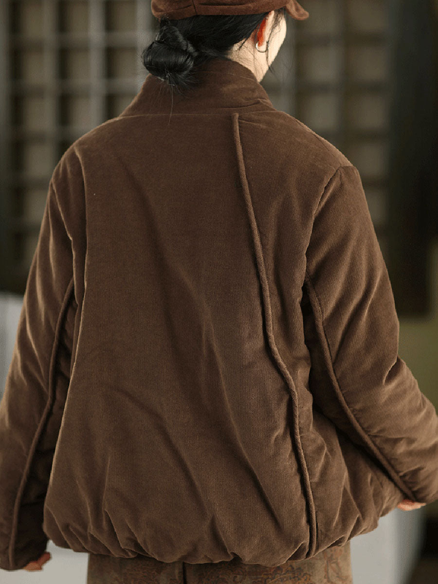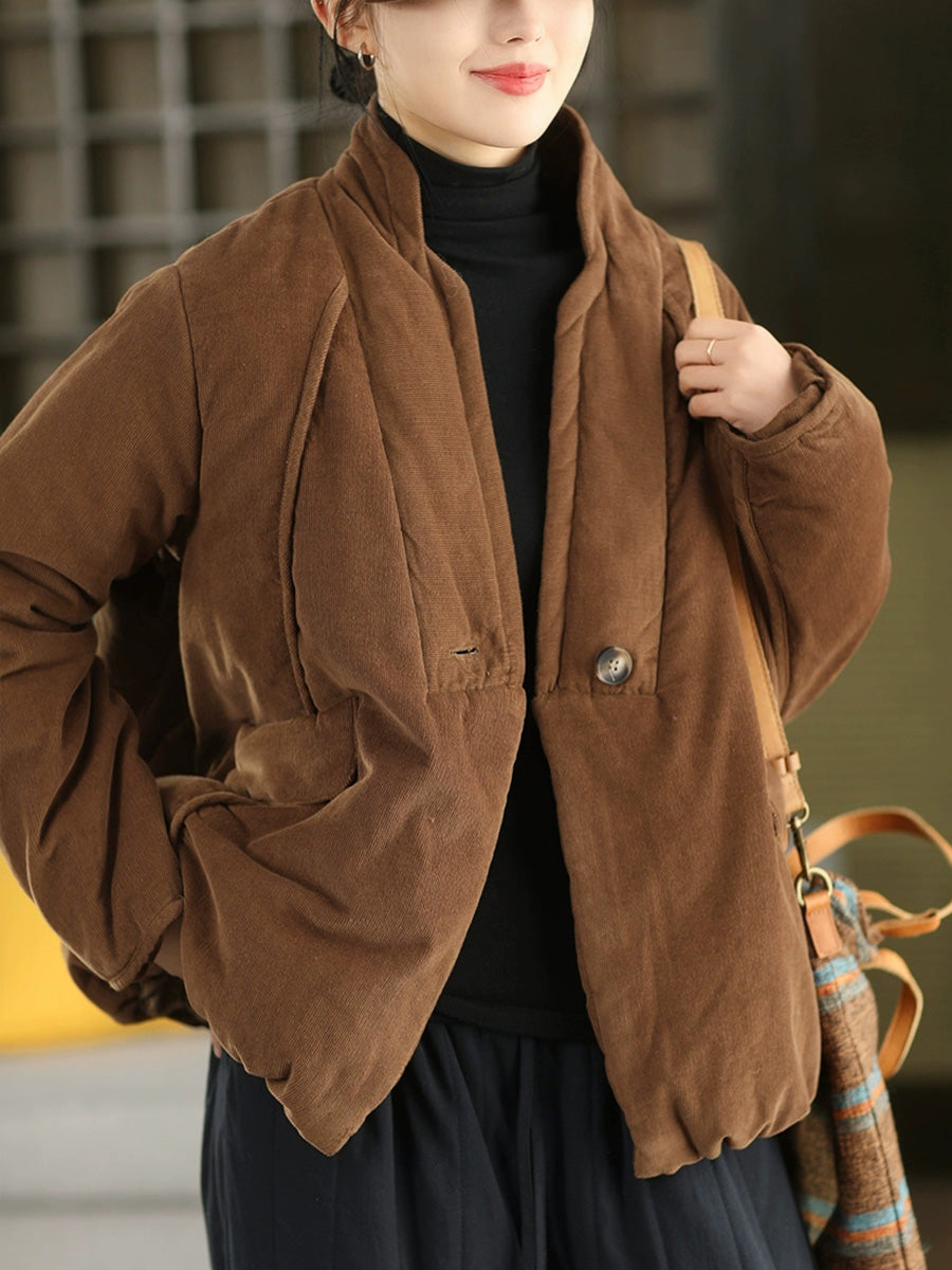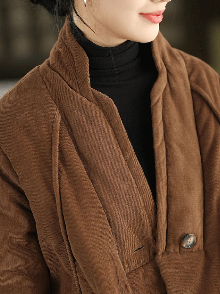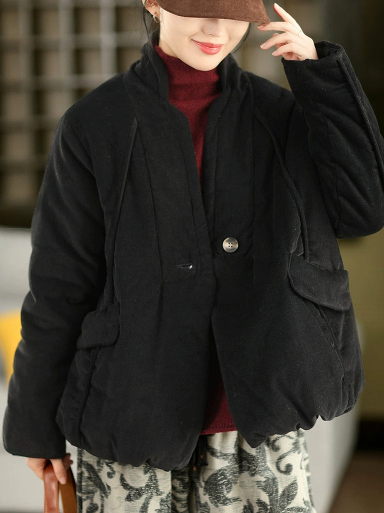 Manteau d'hiver rétro femme, couleur unie, matelassé, col montant