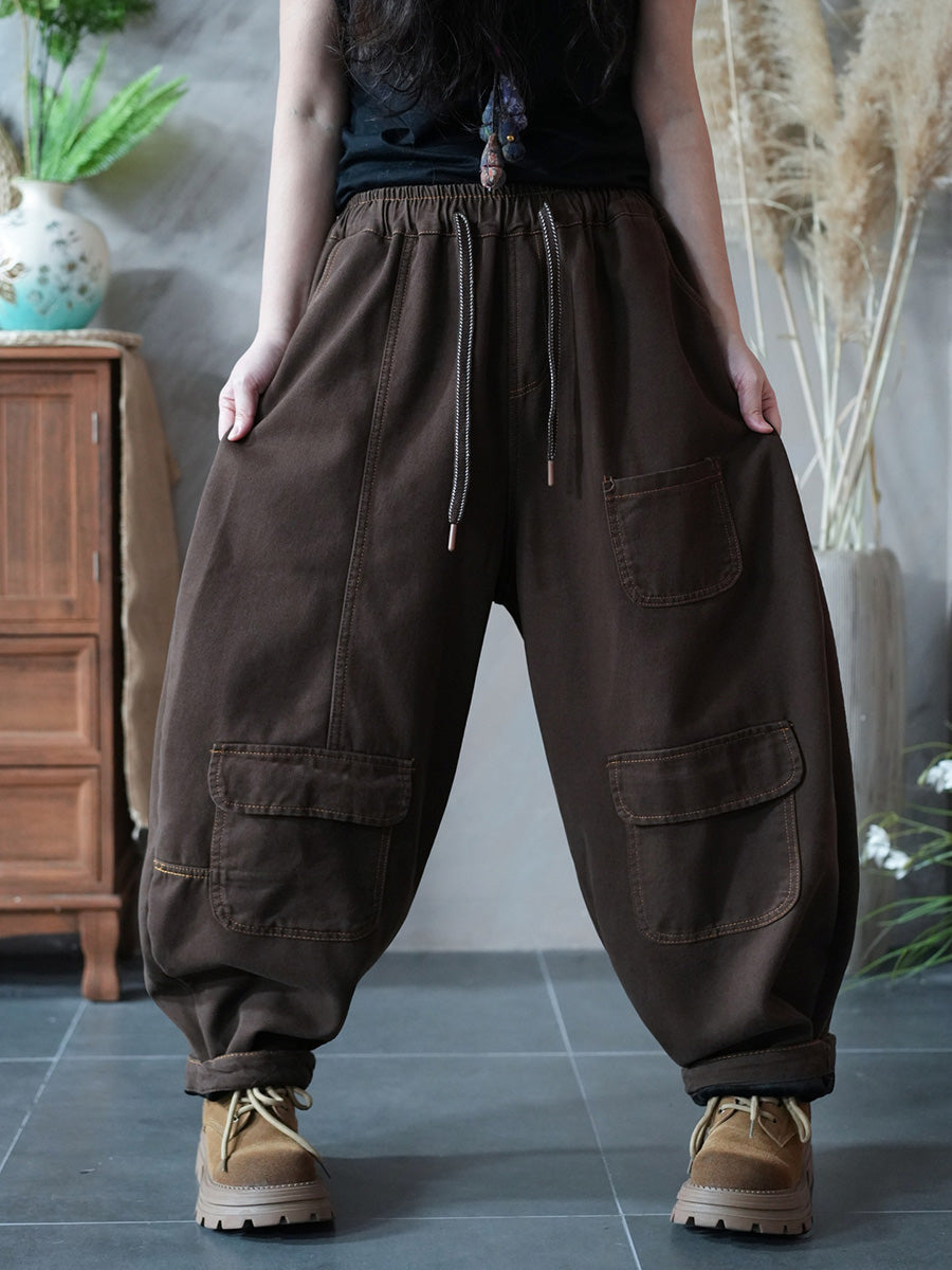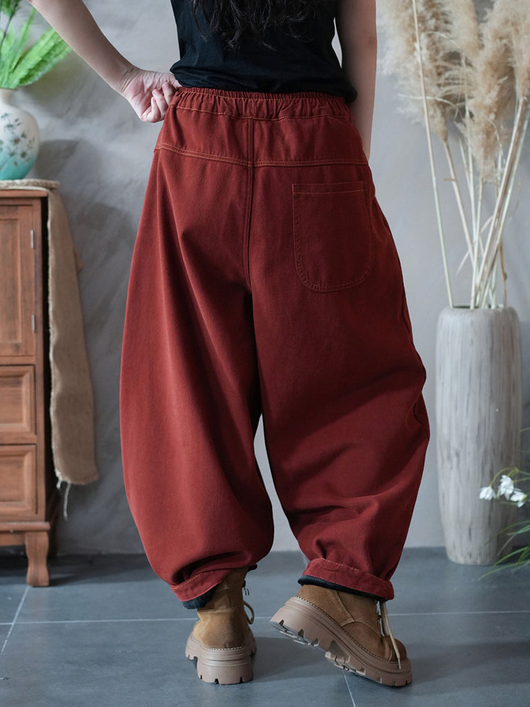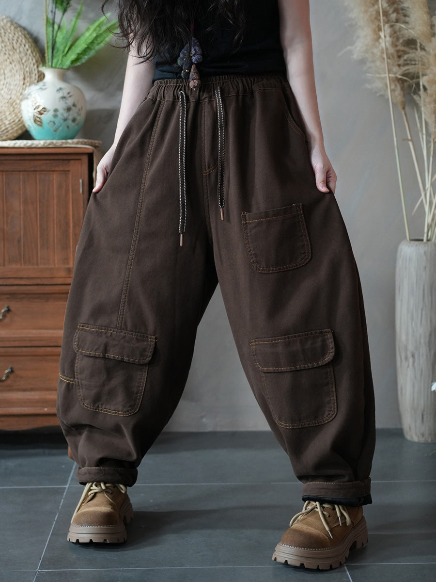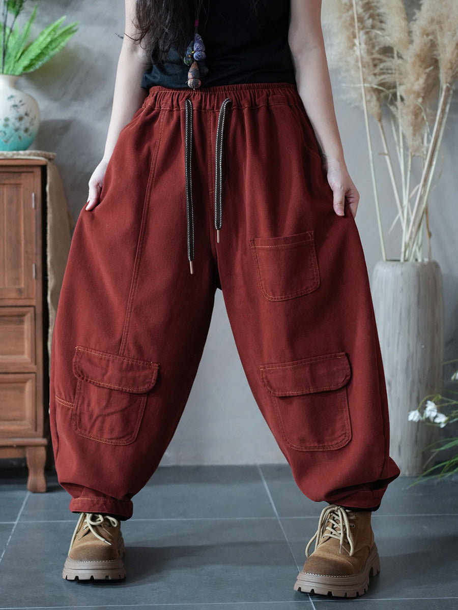 Pantalon harem rétro hiver pour femme, couleur unie, avec poches