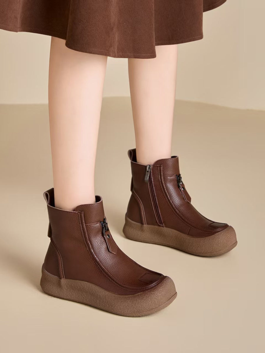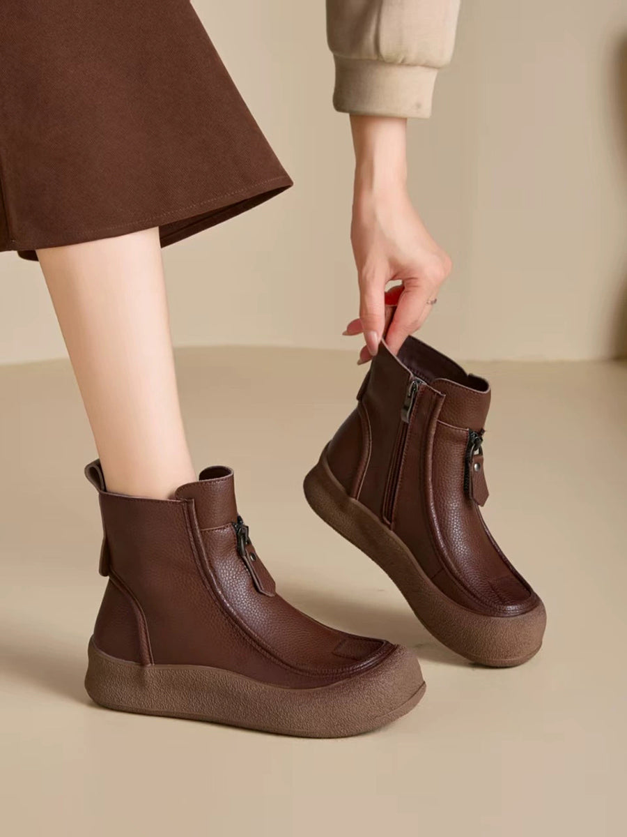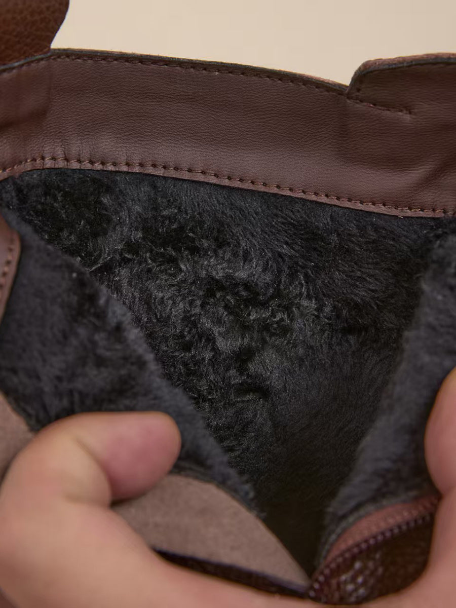 Bottes plates vintage d'hiver pour femmes en cuir véritable