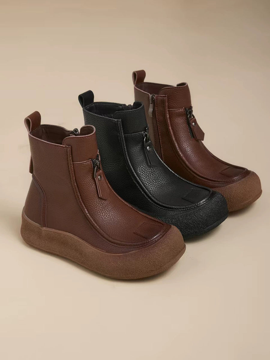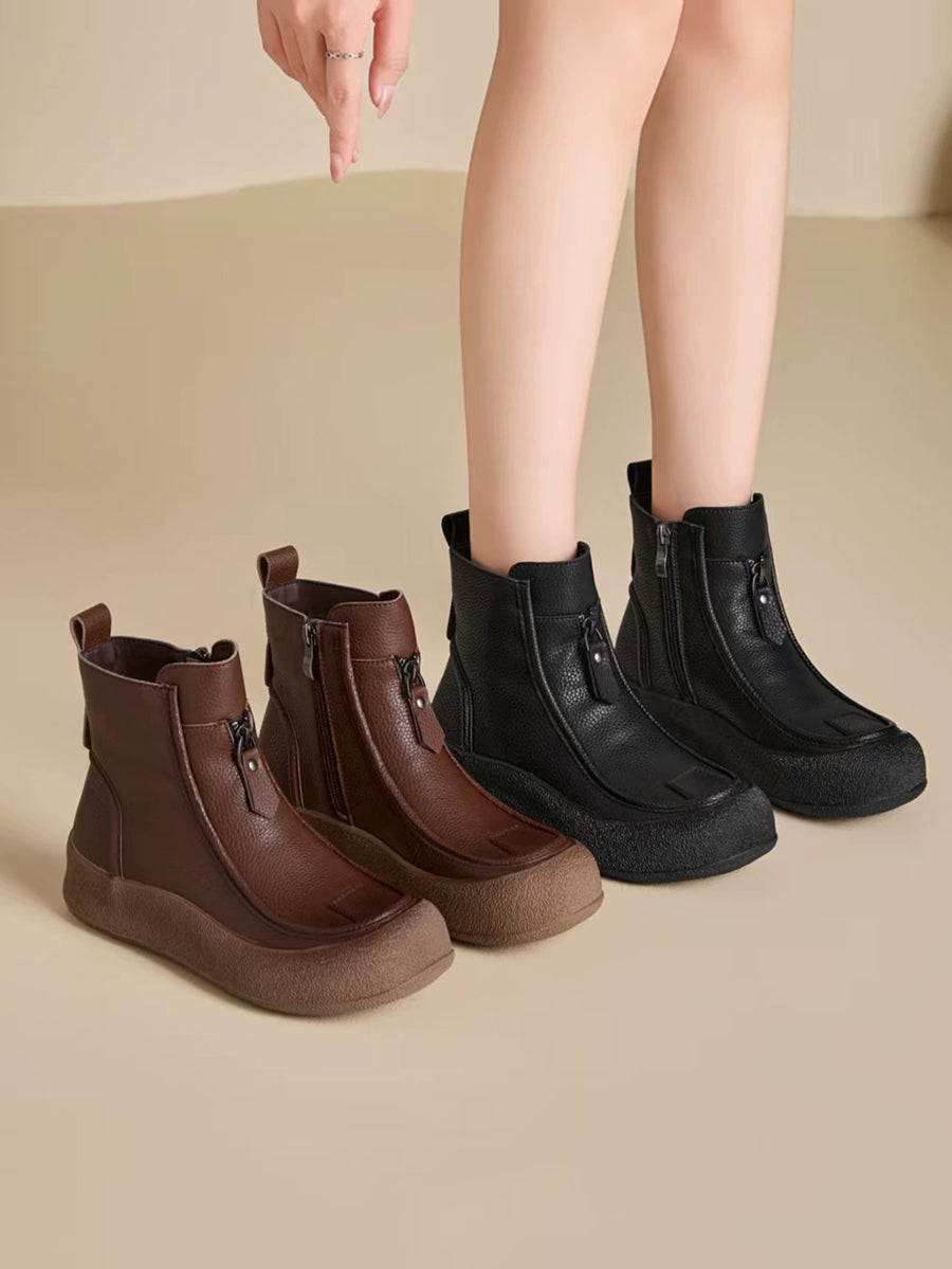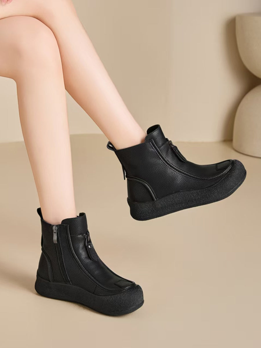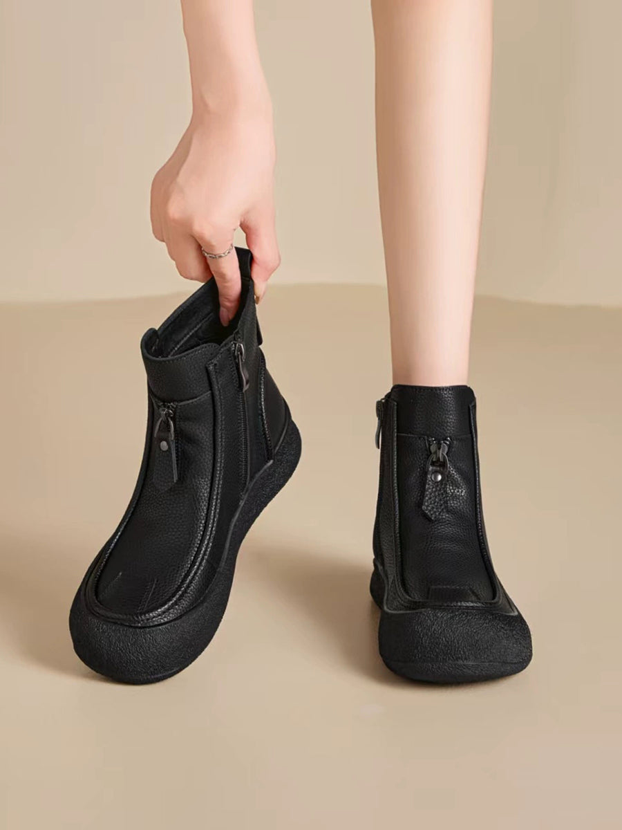 Bottes plates vintage d'hiver pour femmes en cuir véritable